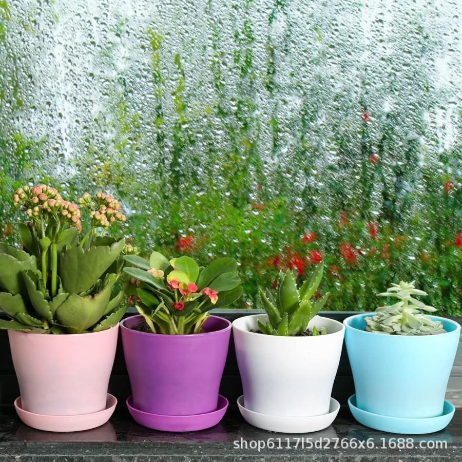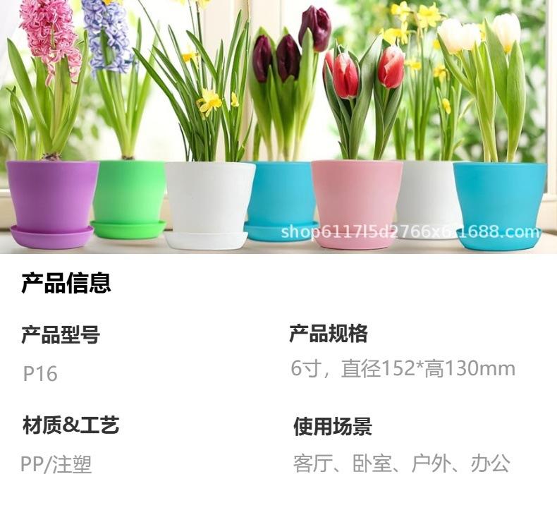 Maceta de plástico PP con bandeja, colorida, de 6 pulgadas, duradera, ligera, para plantar en interiores y exteriores, con flores carnosas.