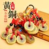 Cobre puro dinero de cinco emperadores cuerda roja llavero cordón cinco monedas de cobre reales llavero yiwu fabricantes de pequeños productos al por mayor
