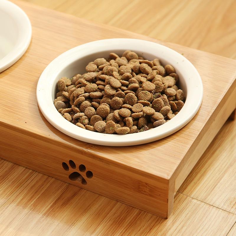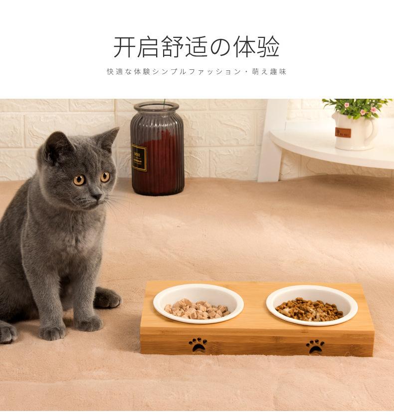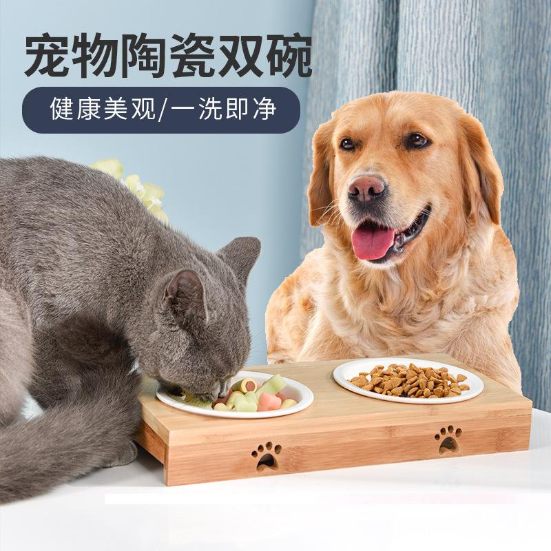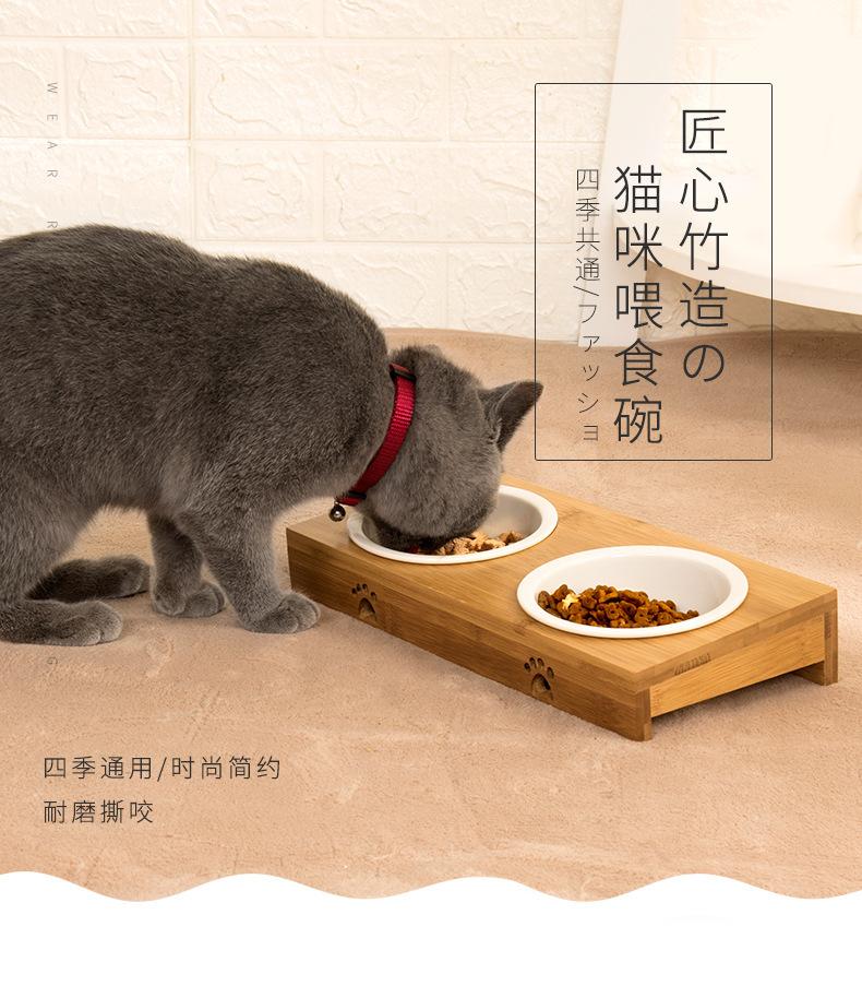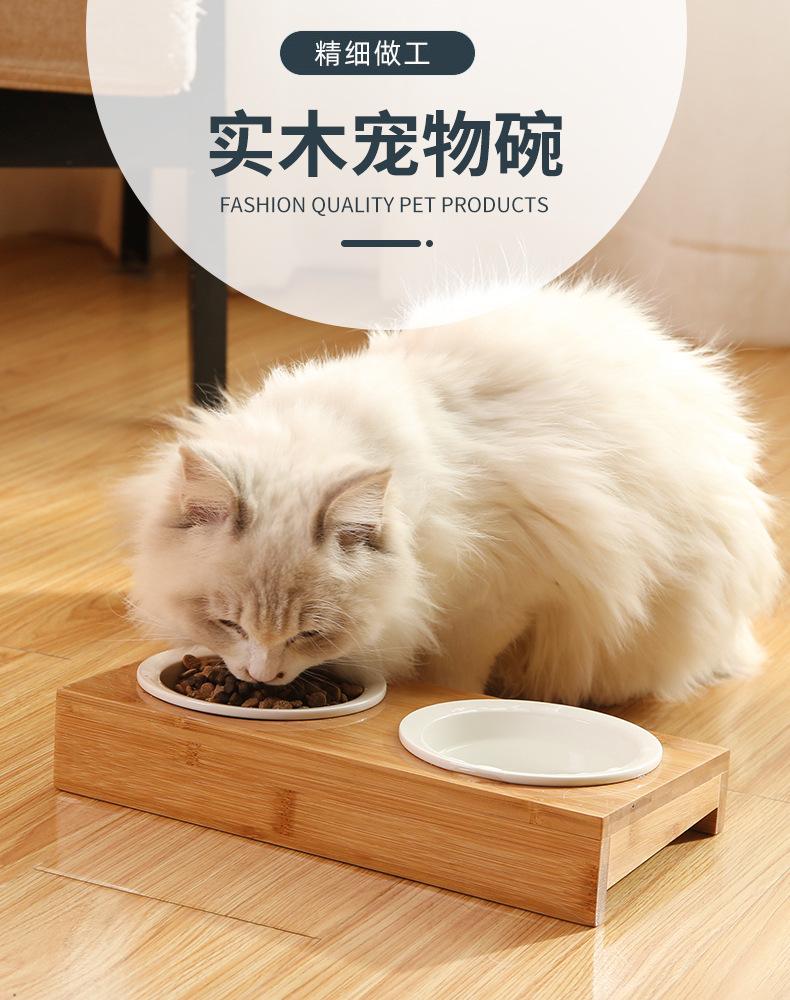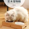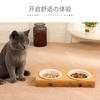 Cuenco inclinable de madera de bambú para mascotas, protege la vértebra cervical de los gatos, cuenco doble de cerámica de gran capacidad, comedero para gatos, bebedero antivuelco.