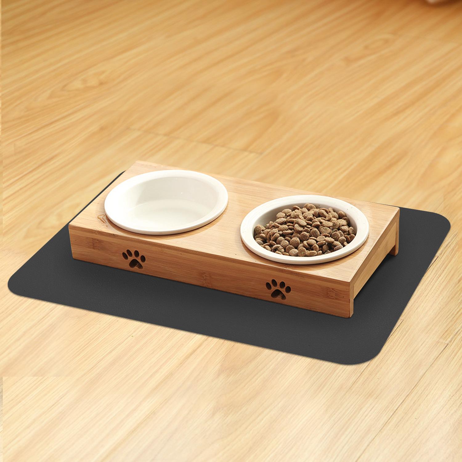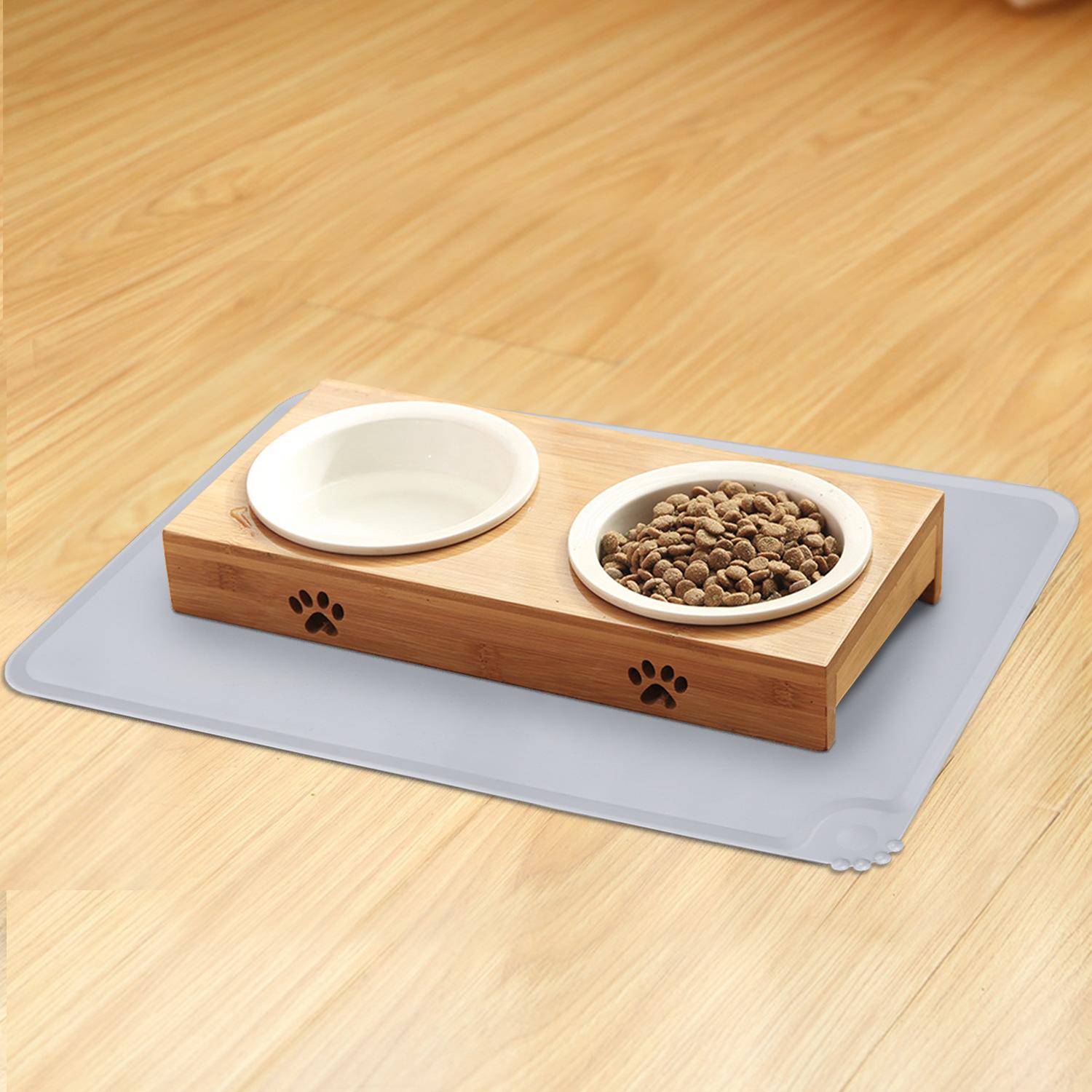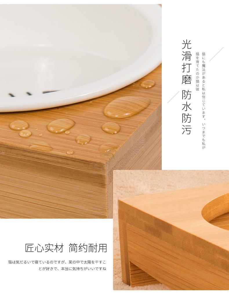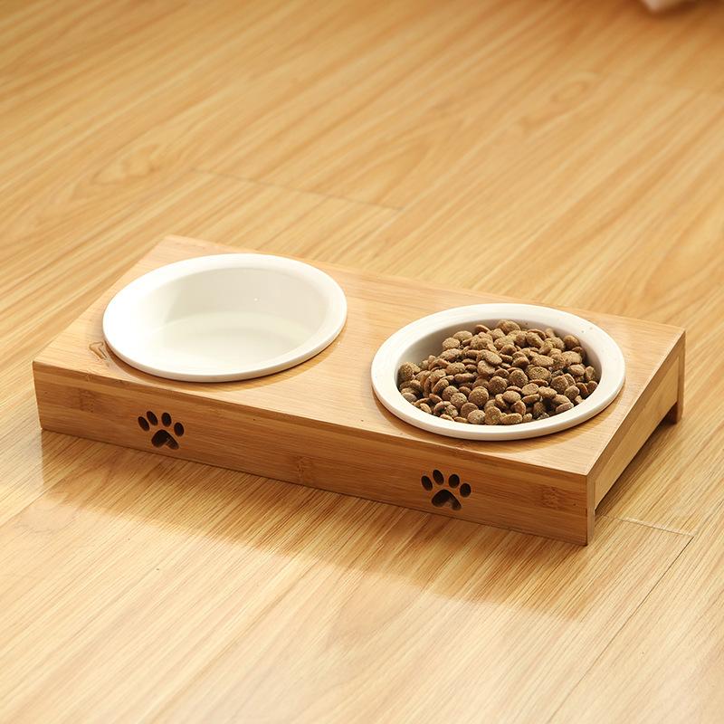 Cuenco inclinable de madera de bambú para mascotas, protege la vértebra cervical de los gatos, cuenco doble de cerámica de gran capacidad, comedero para gatos, bebedero antivuelco.