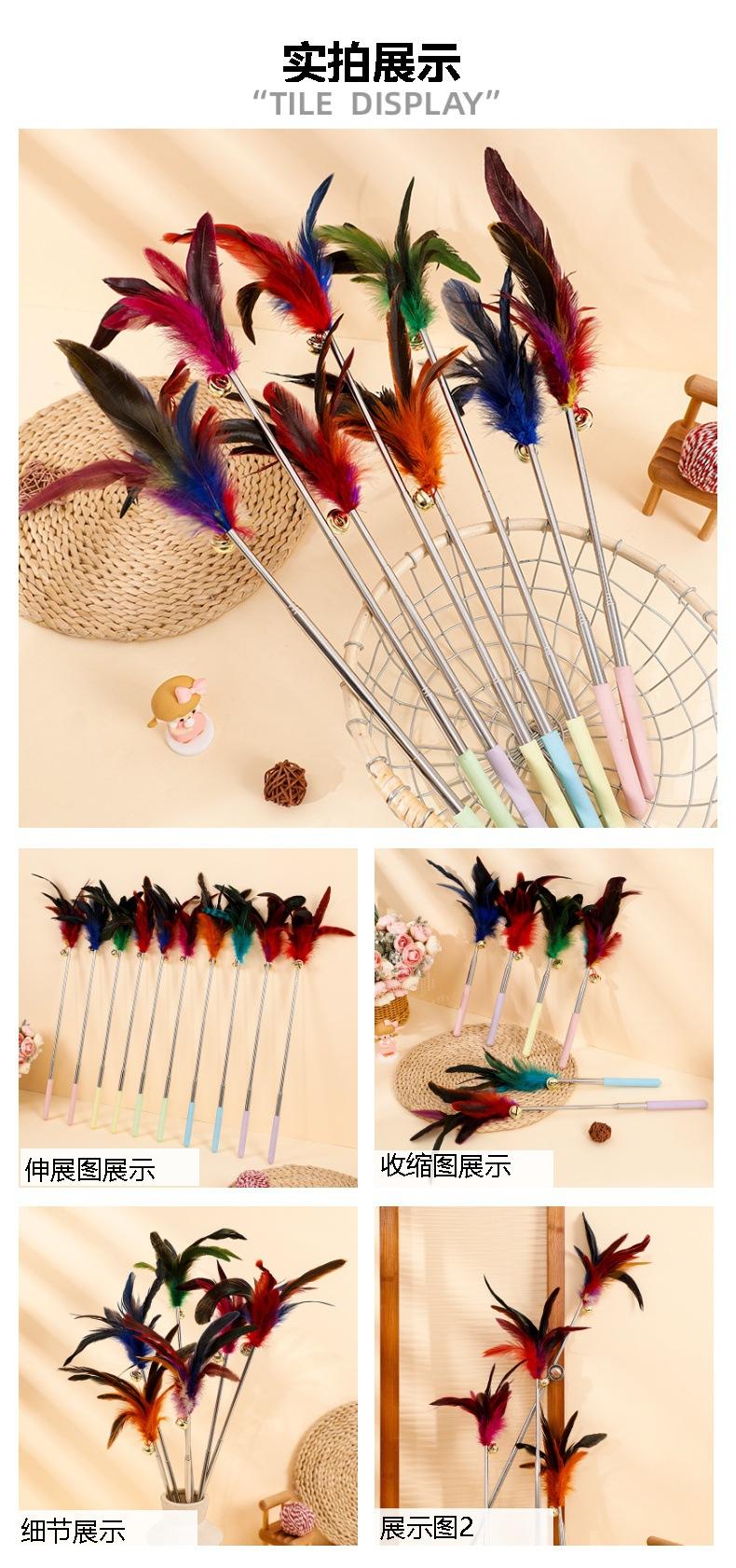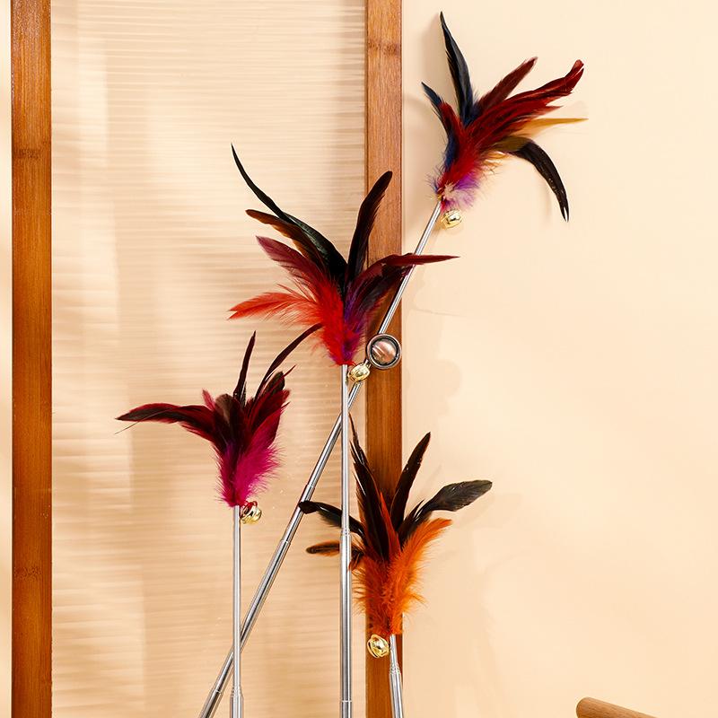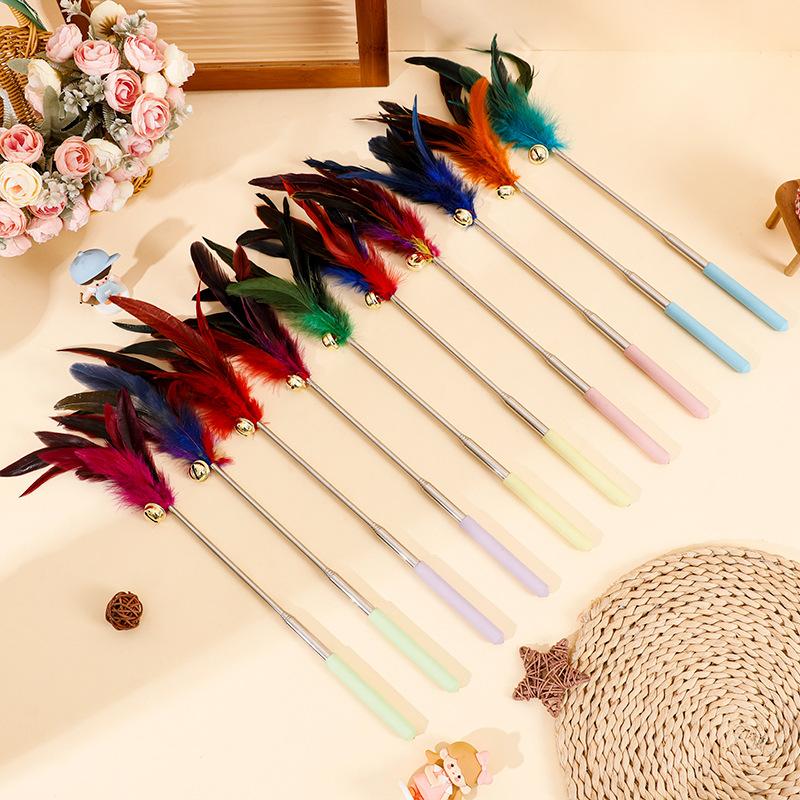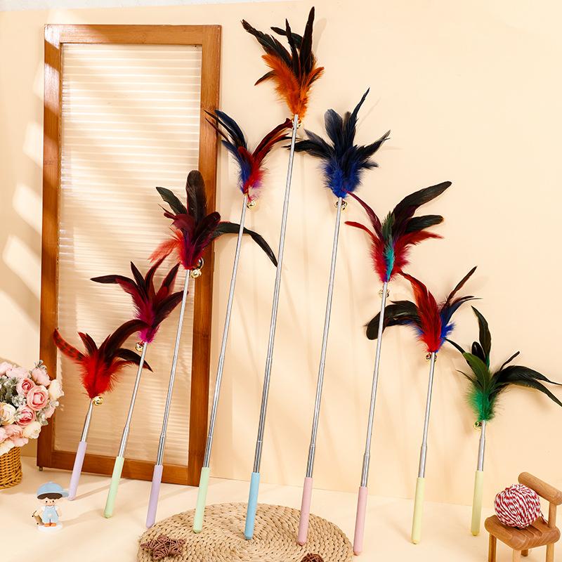 Nuevo palo retráctil para gatos con campana, juguete colorido de plumas para gatos, auto-hi, suministros para mascotas para perros