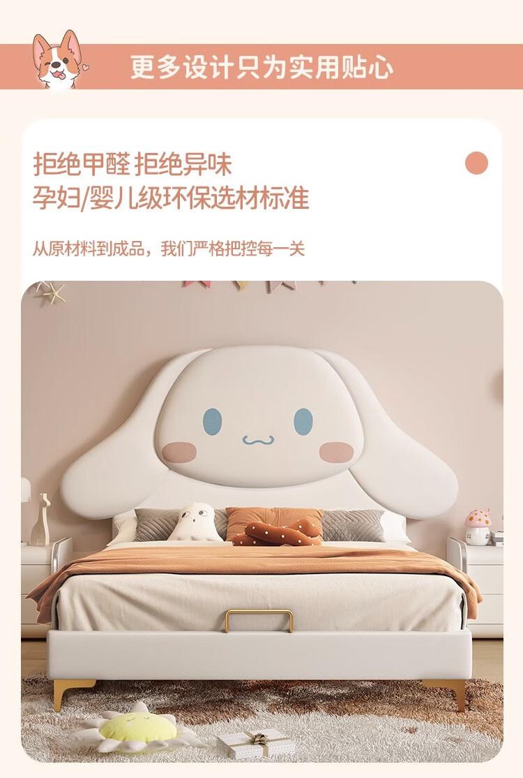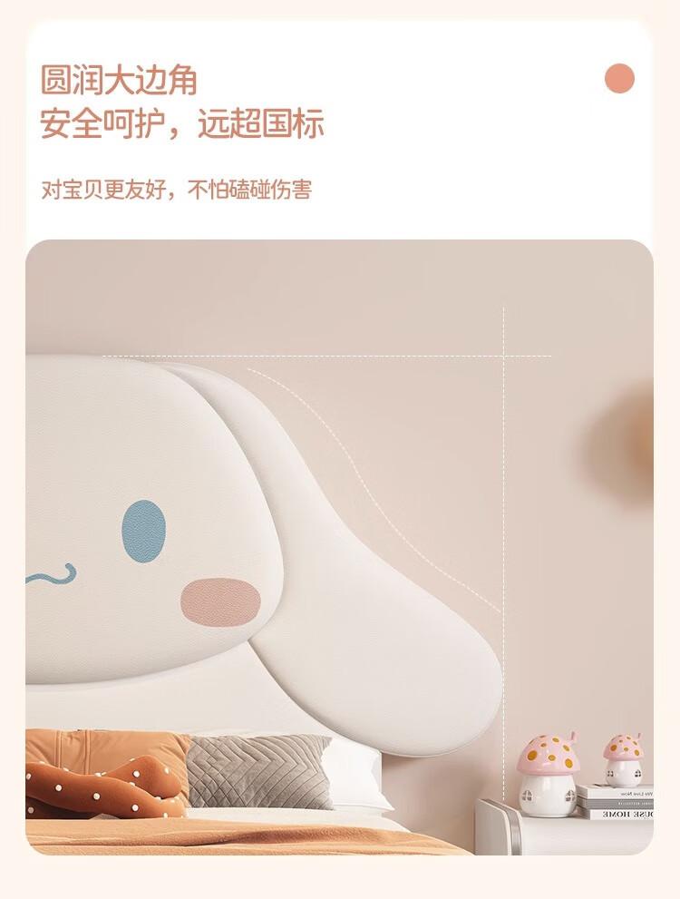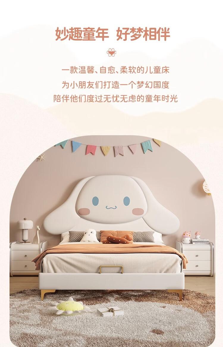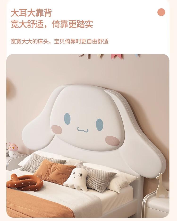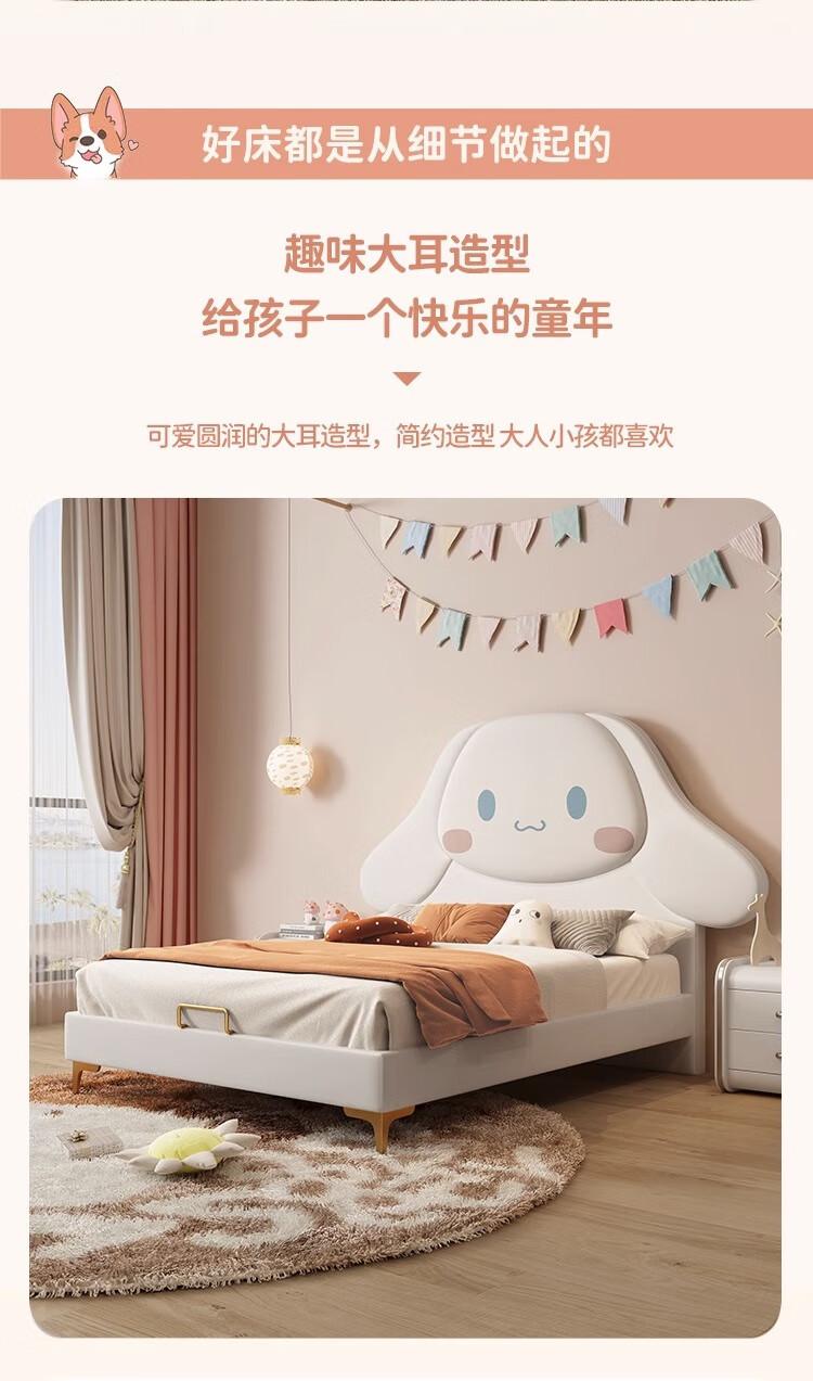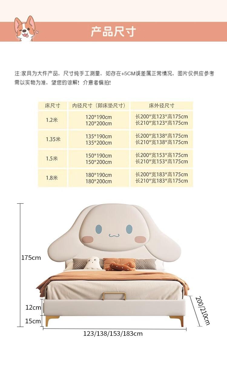 Cama Infantil Cama de Princesa para Niña Estilo de Dibujos Animados de Cinnamon Dog Cama Individual de 1.5m Apartamento Pequeño Madera Maciza Moderna