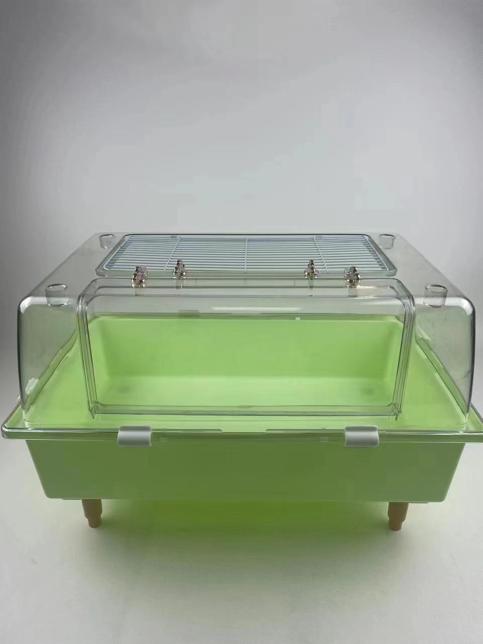 Jaula para hámster transparente de 60 cm con patas de plástico superpuestas.