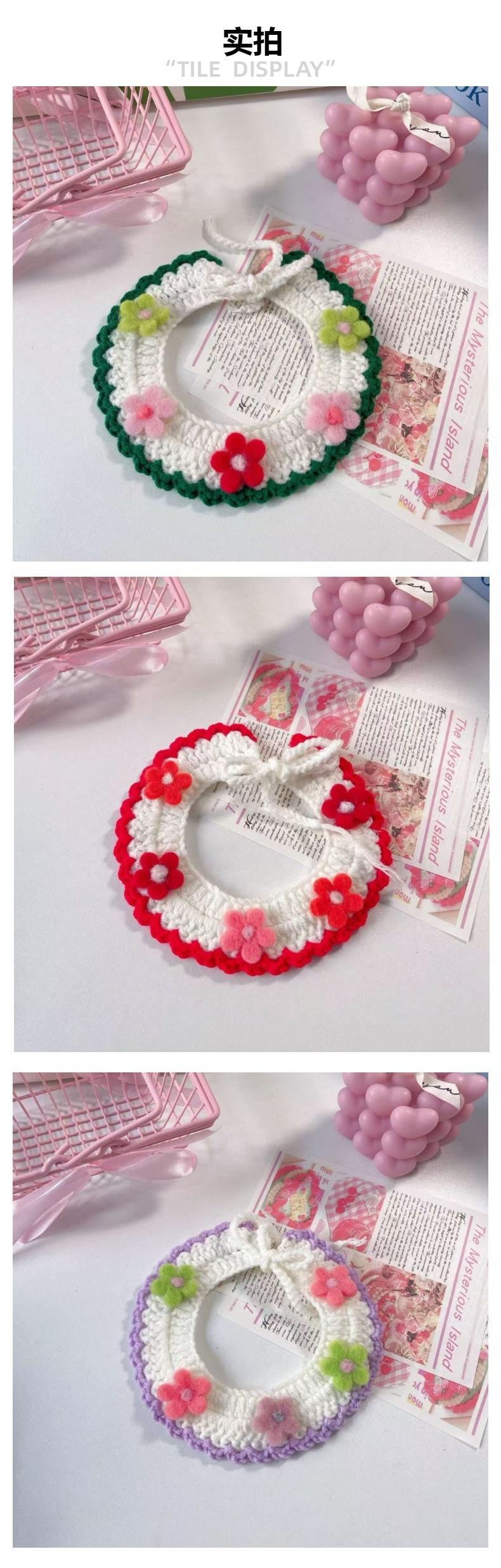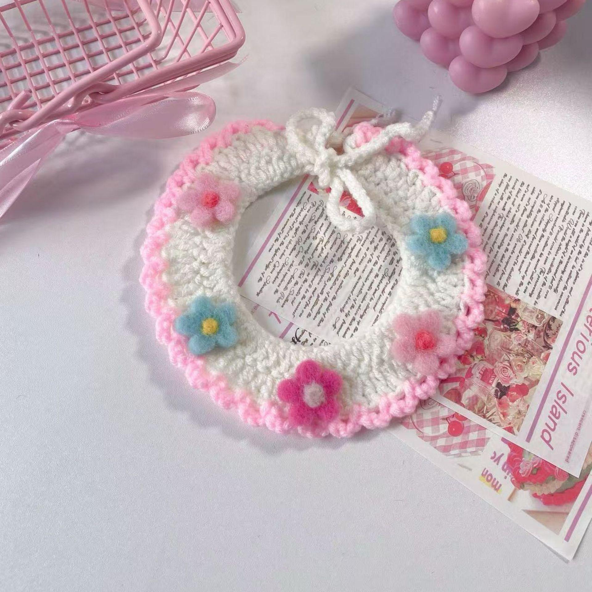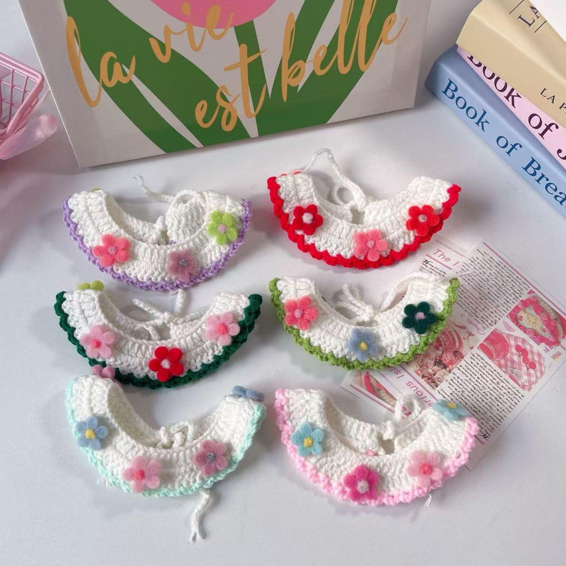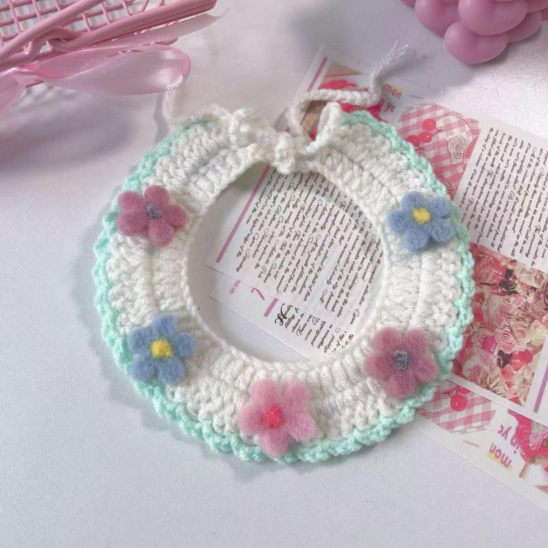 Collar Tejido a Mano para Gato Perro Flor de Verano Lana Mascota Cuello Encaje Bufanda Collar Oso de Peluche