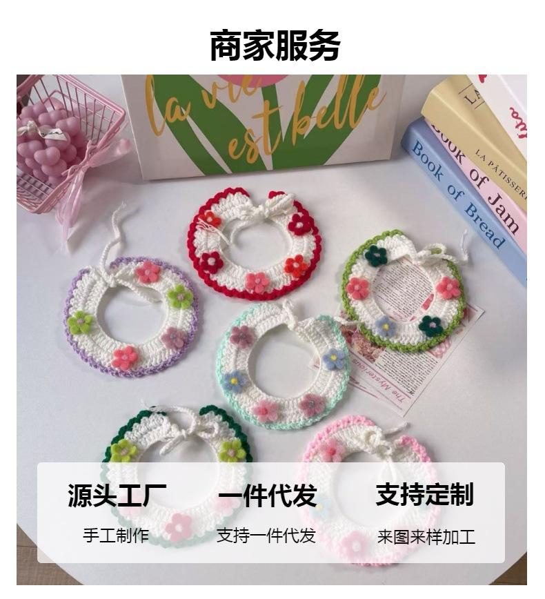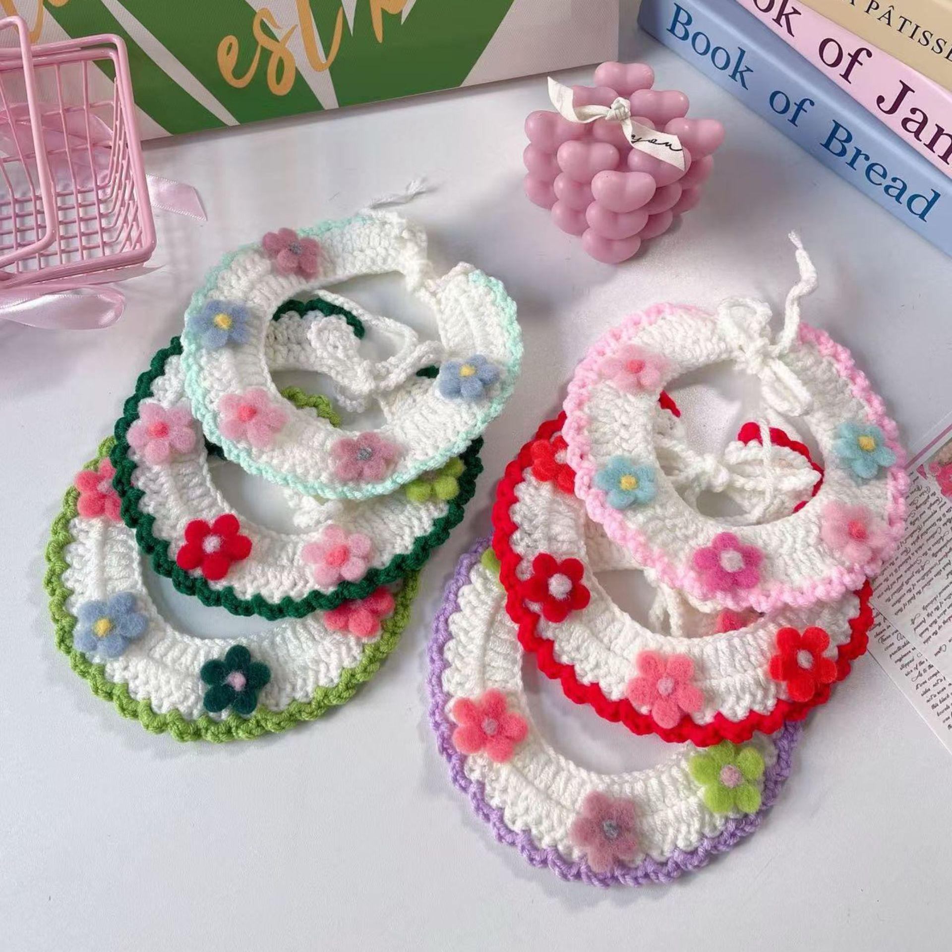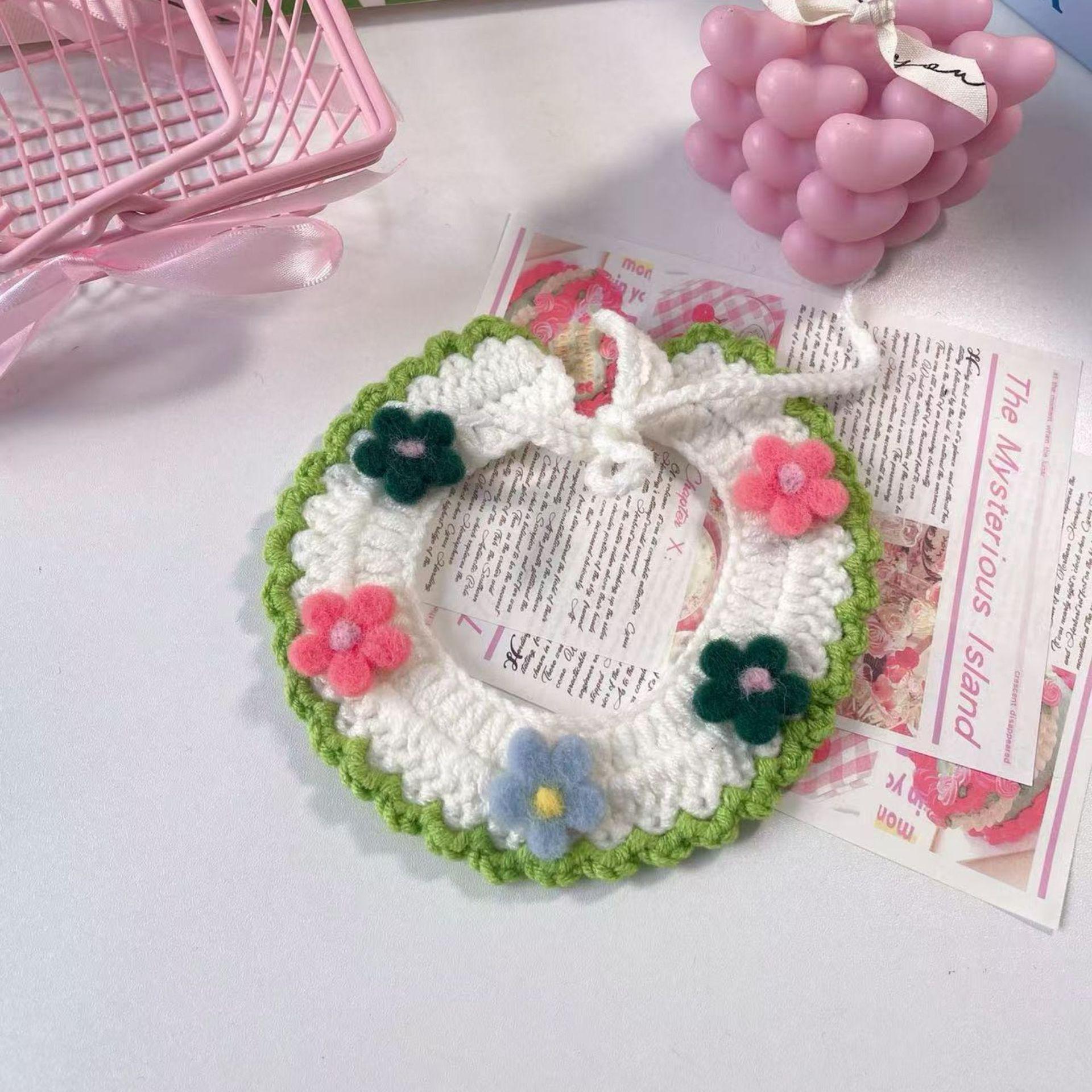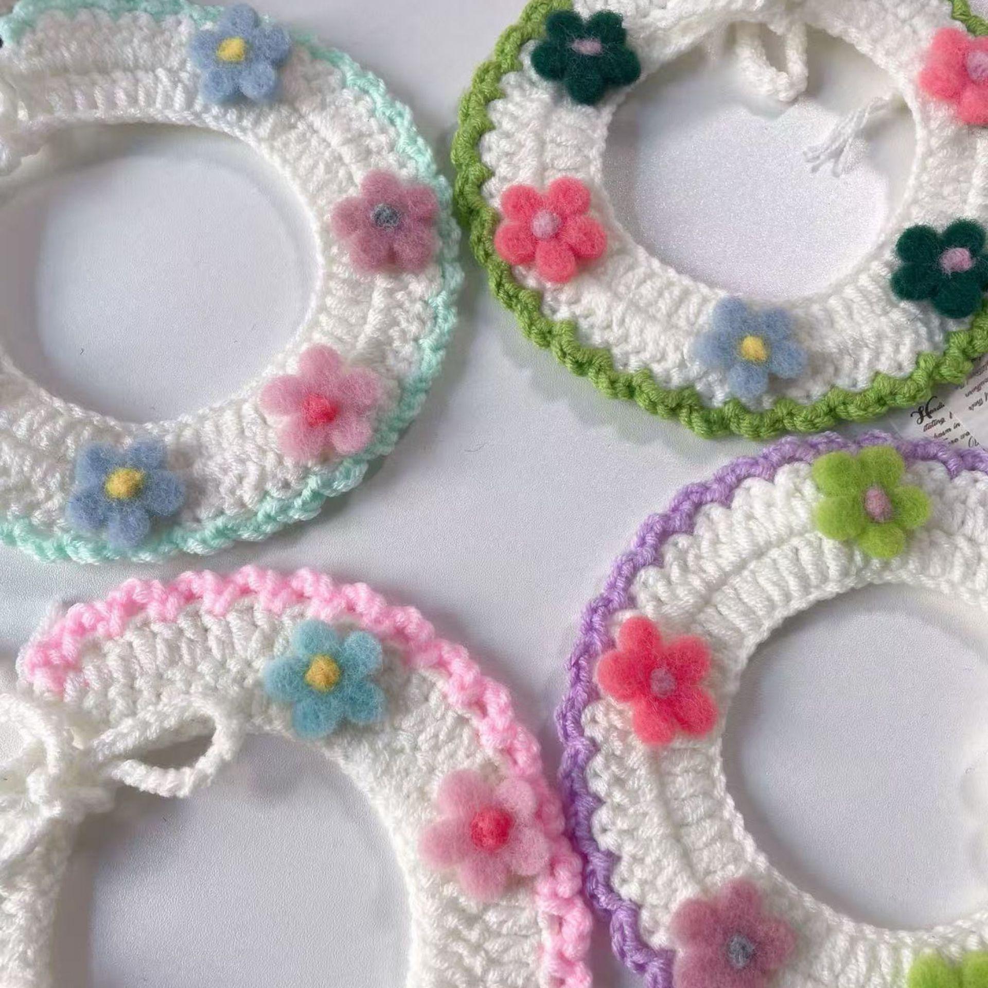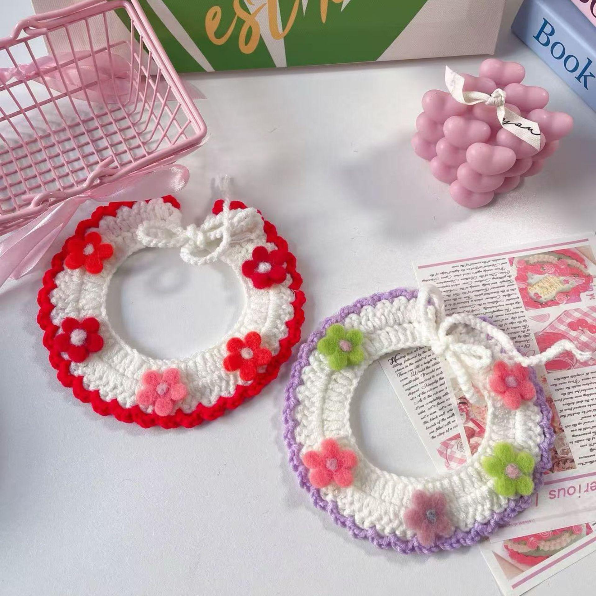 Collar Tejido a Mano para Gato Perro Flor de Verano Lana Mascota Cuello Encaje Bufanda Collar Oso de Peluche