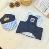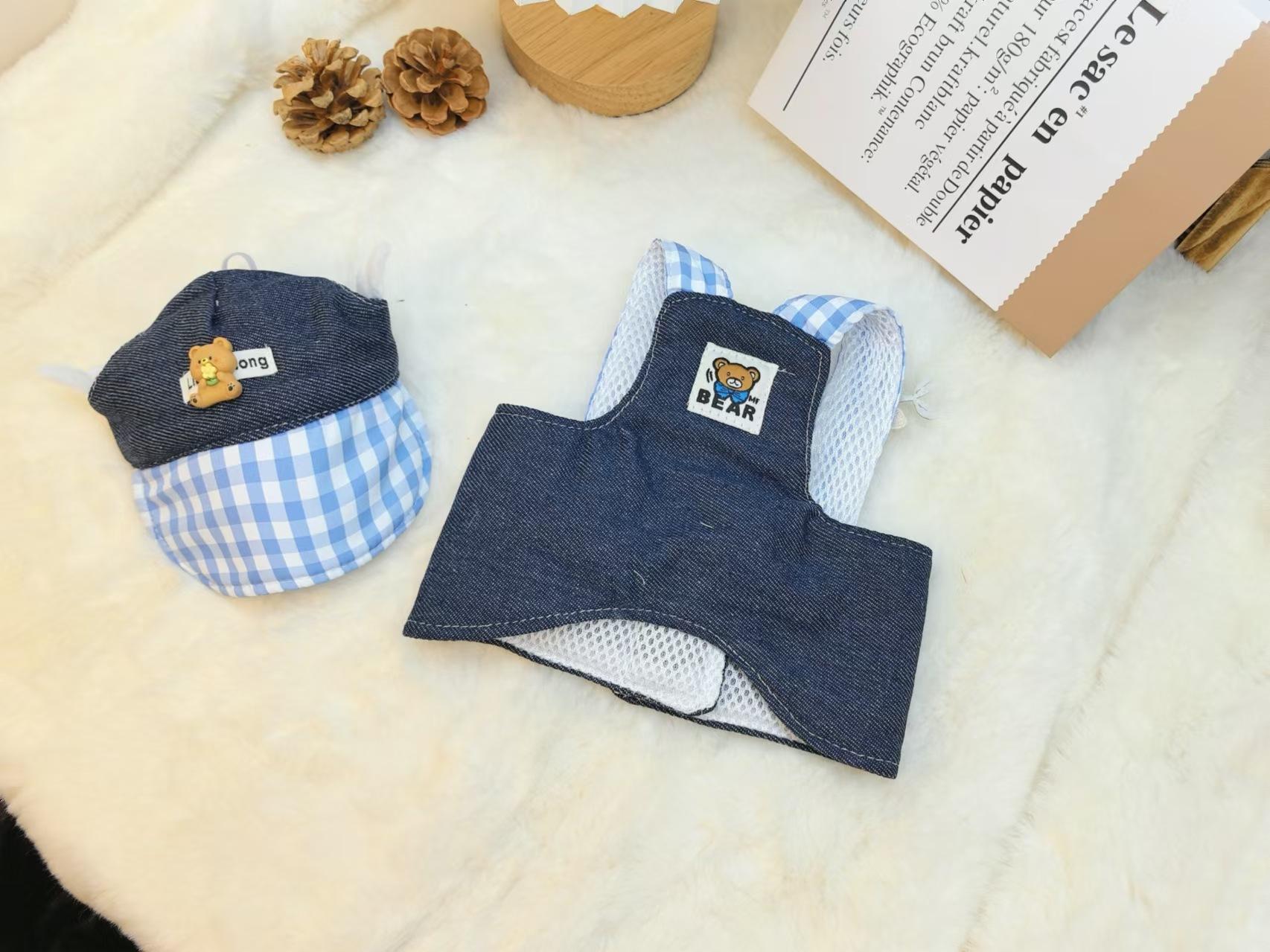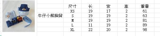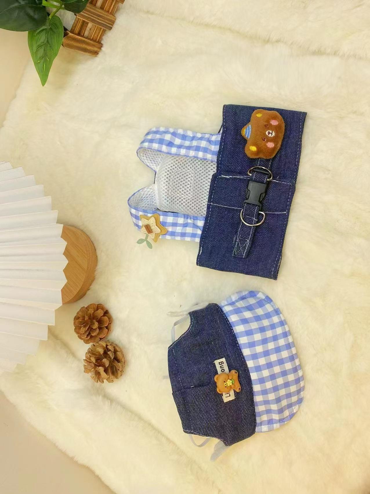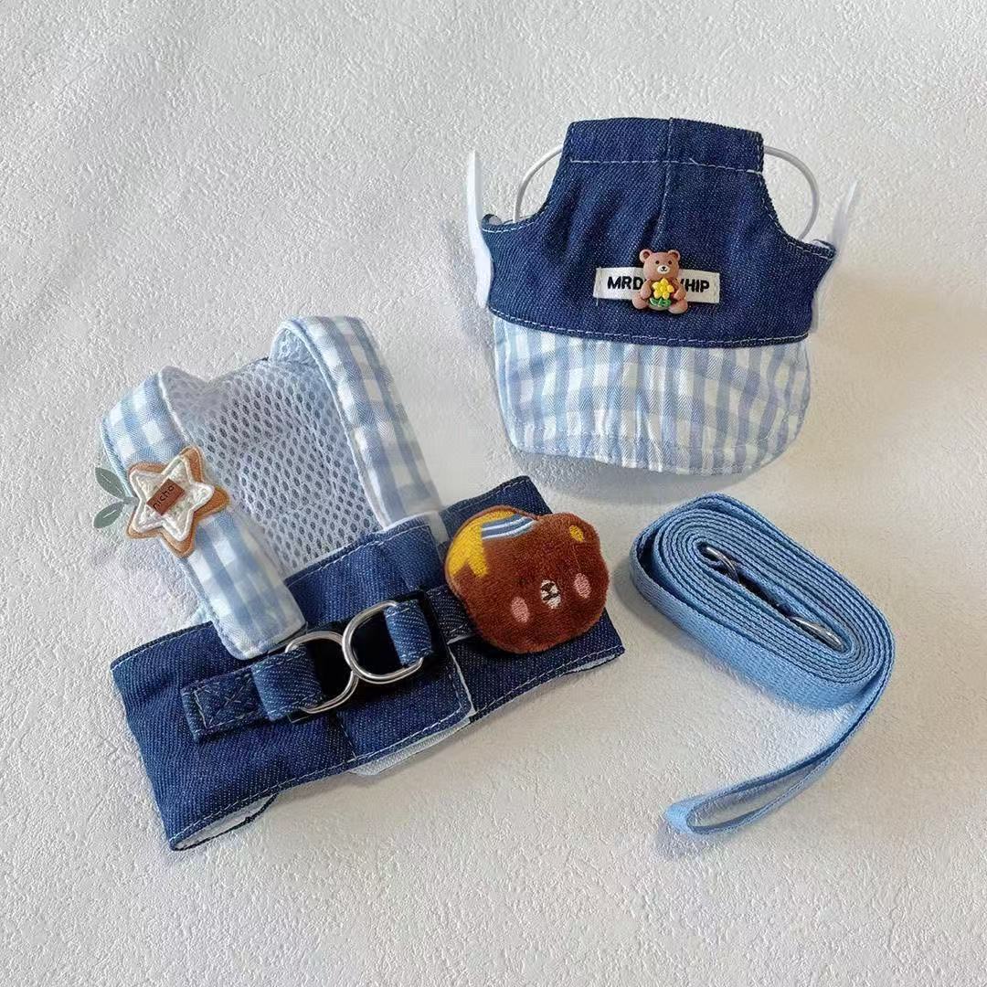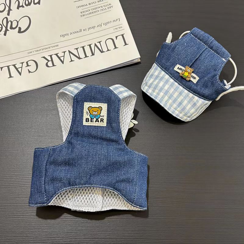Primavera y Otoño Pecho Espalda para Mascotas Cuerda de Tracción Corta Ropa para Perro Gato Oso Mezclilla Pecho Espalda Tracción para Mascotas Linda
