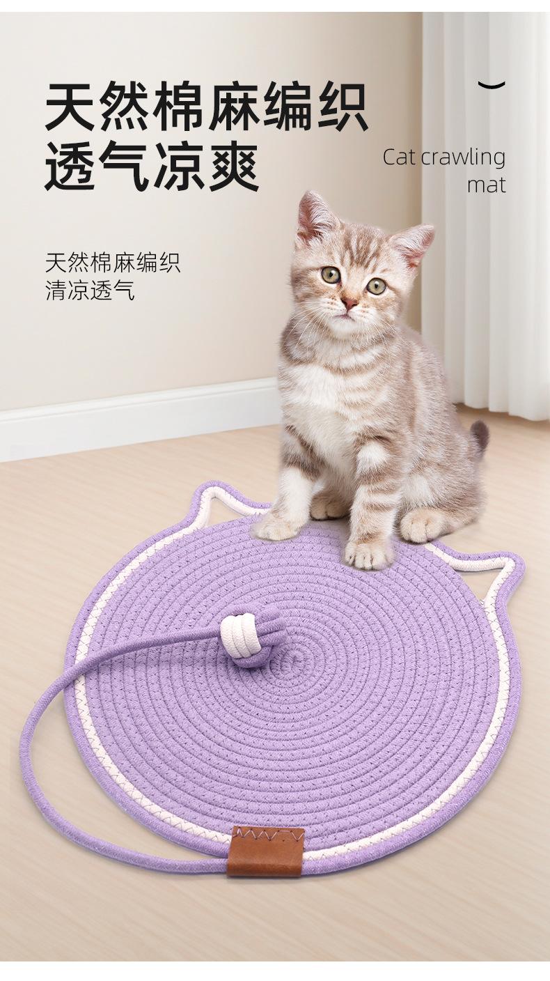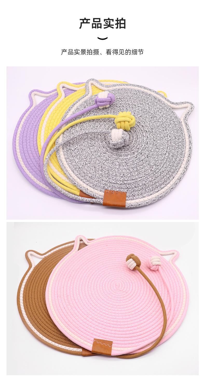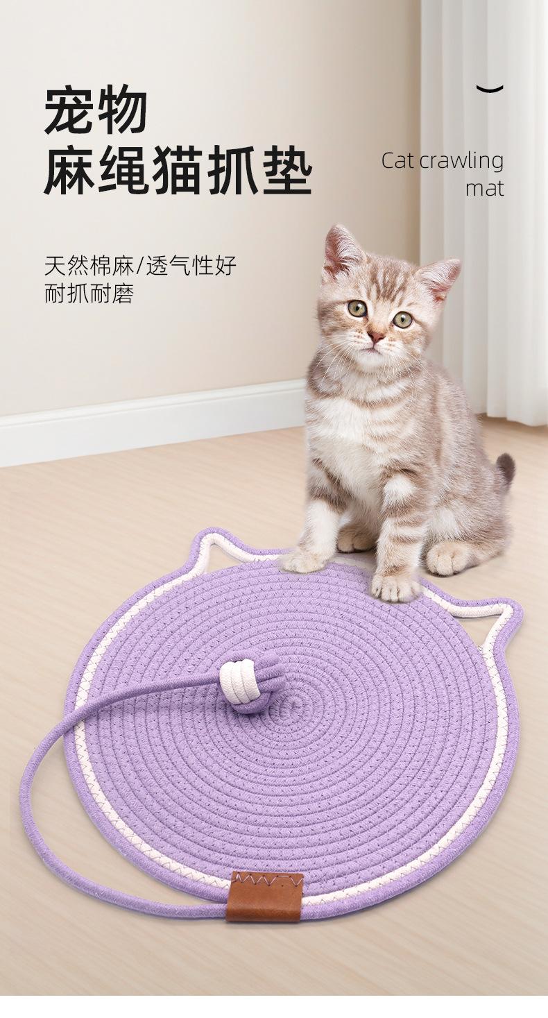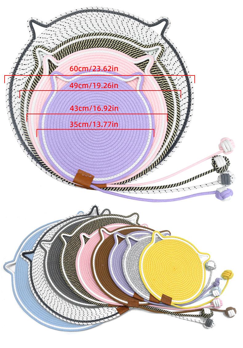 Almohadilla redonda para rascar gatos con bola de cuerda de algodón tejida, tabla para rascar gatos resistente al desgaste y a los arañazos, tabla para garras de gato mascota, tabla para rascar gatos mascota no suelta migajas