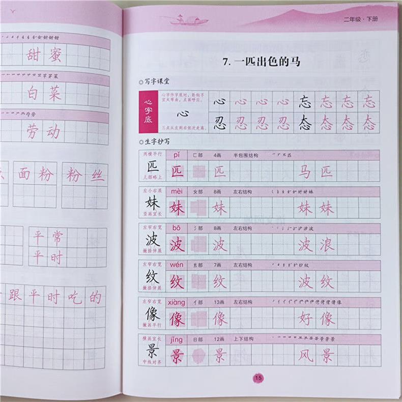 En el segundo volumen del segundo grado, los estudiantes de primaria practican cuadernos, libros de texto PEP, escritura regular sincrónica, cuadernos de práctica con lápiz duro.