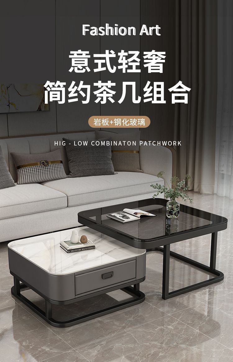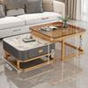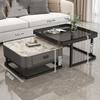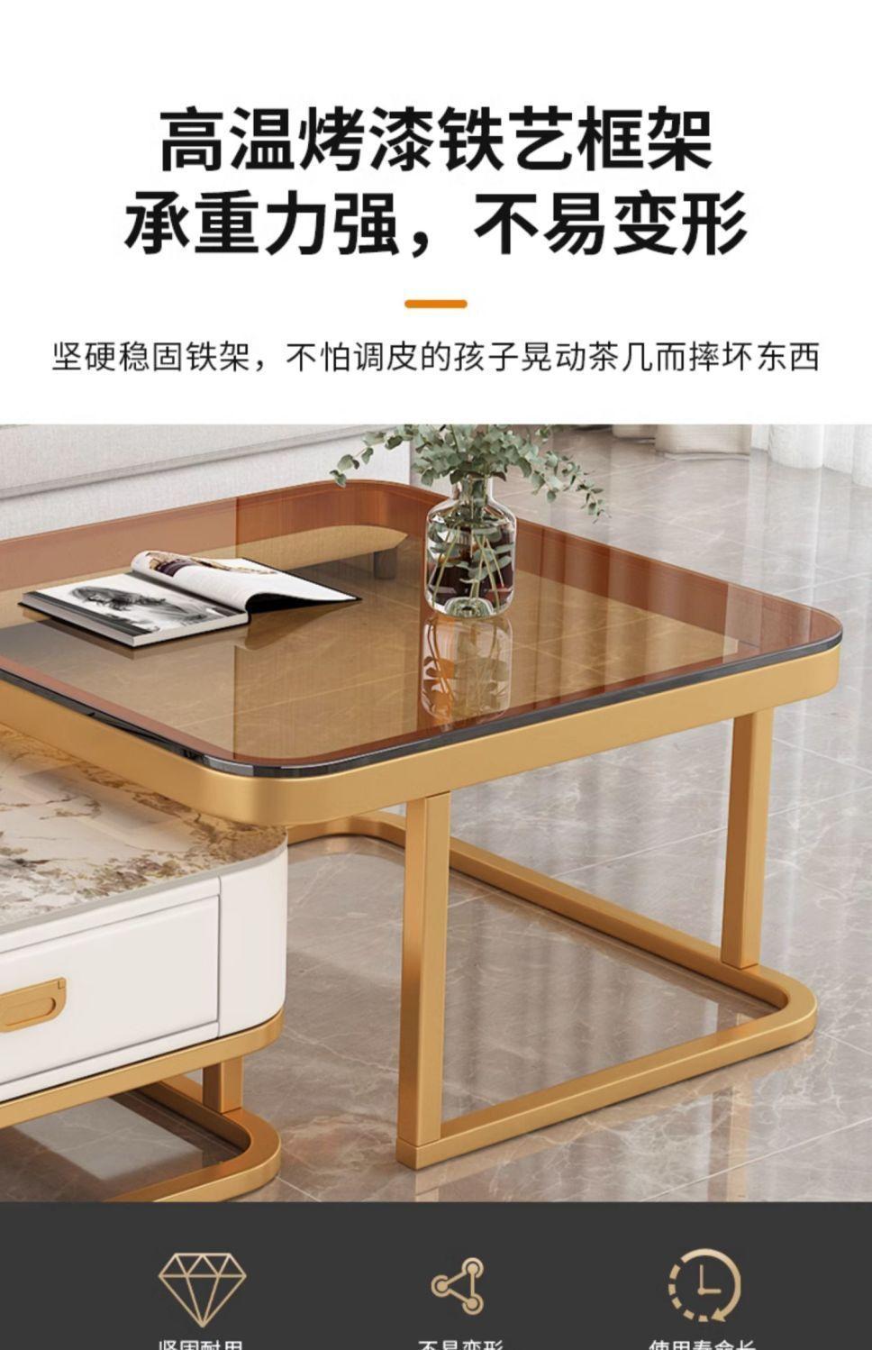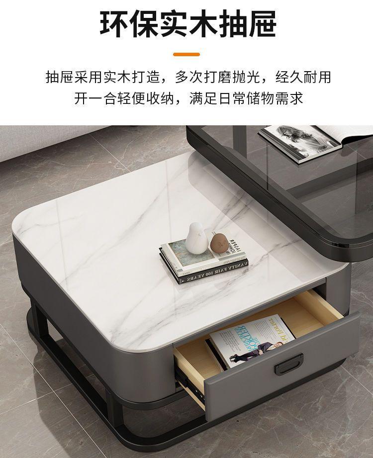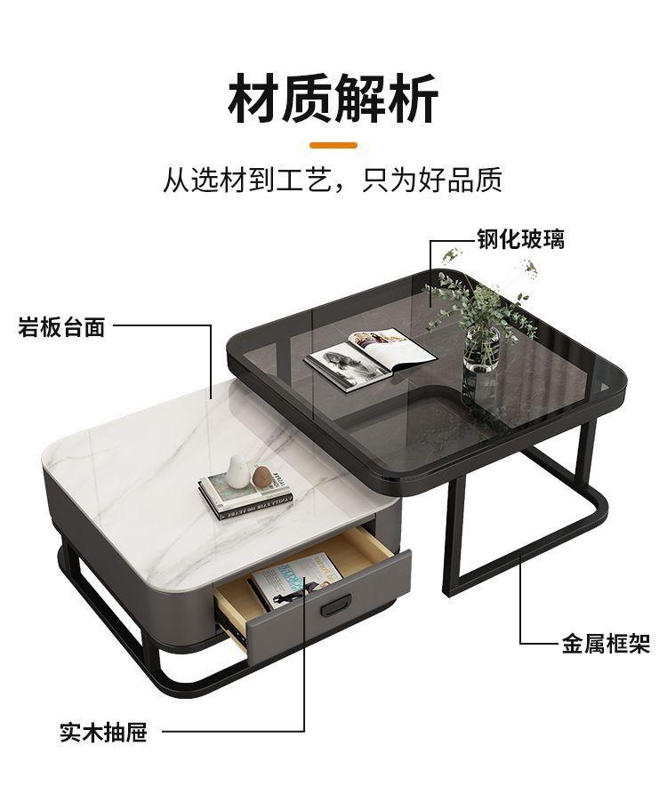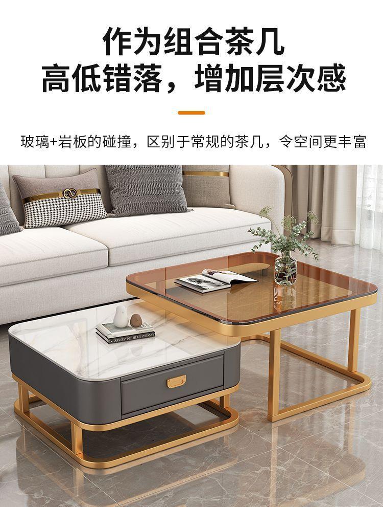 Mesa de centro cuadrada moderna, sencilla, ligera, de lujo, con tablero de roca, para sala de estar, hogar, apartamento pequeño cuadrado