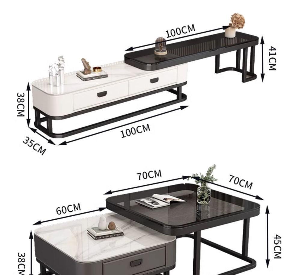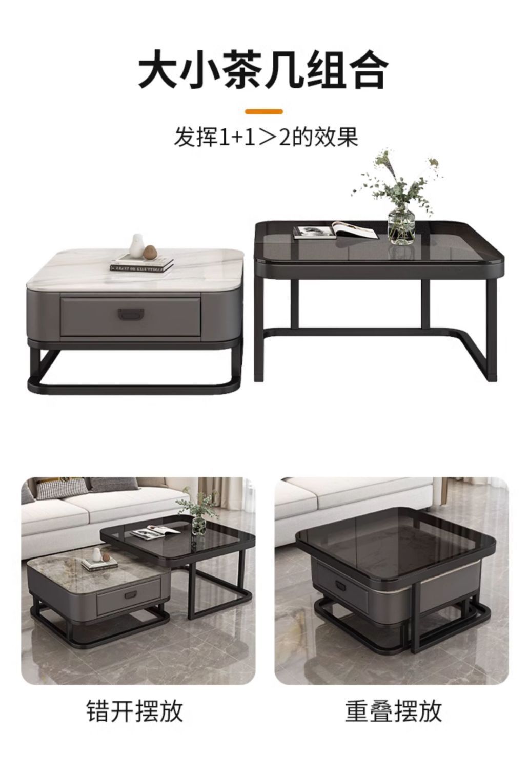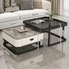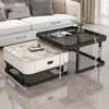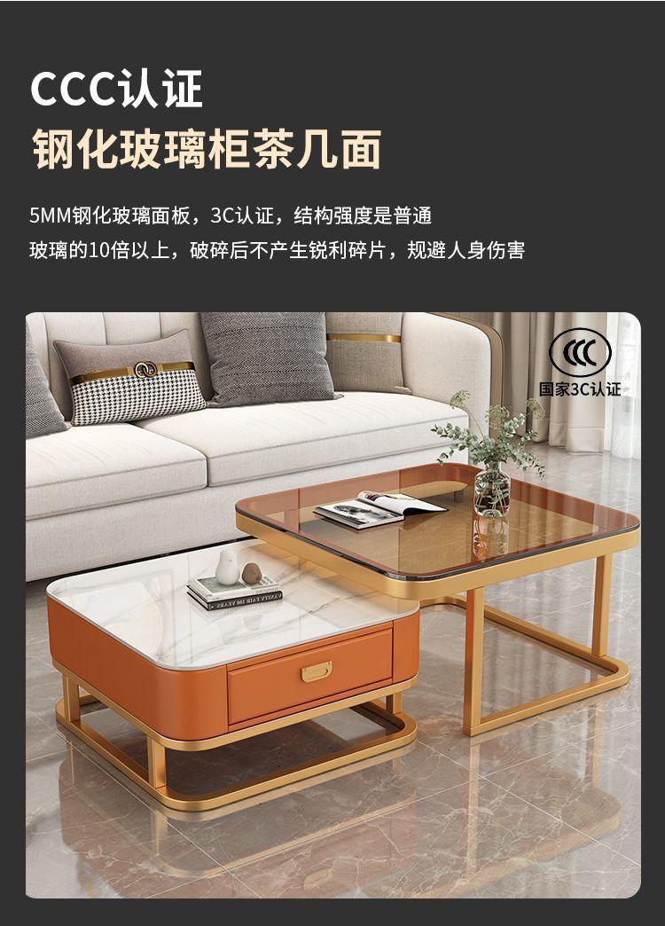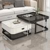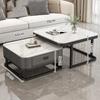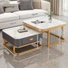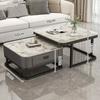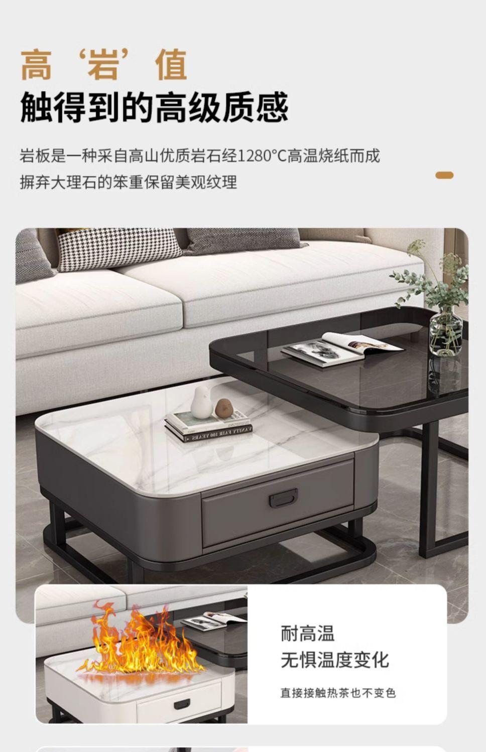 Mesa de centro cuadrada moderna, sencilla, ligera, de lujo, con tablero de roca, para sala de estar, hogar, apartamento pequeño cuadrado