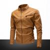 Abrigo de cuero sintético para hombre, chaqueta de cuero de motocicleta con solapa pequeña, informal, con forro polar grueso, para otoño e invierno, 2021
