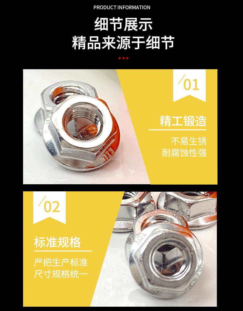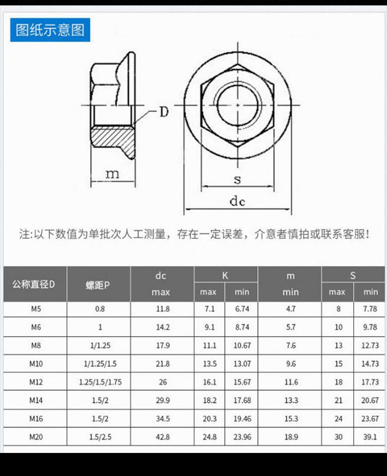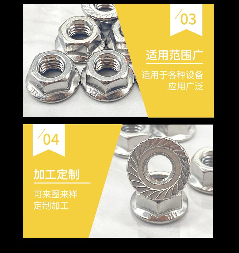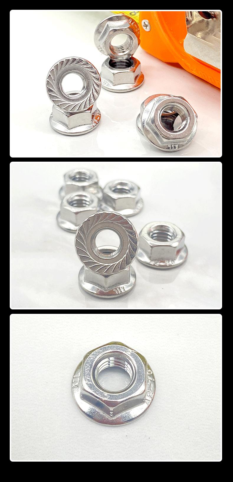 Tuerca hexagonal con brida de acero inoxidable 201, tuerca decorativa, tuerca dentada antideslizante M4/M5/M6/M8/M10/M12