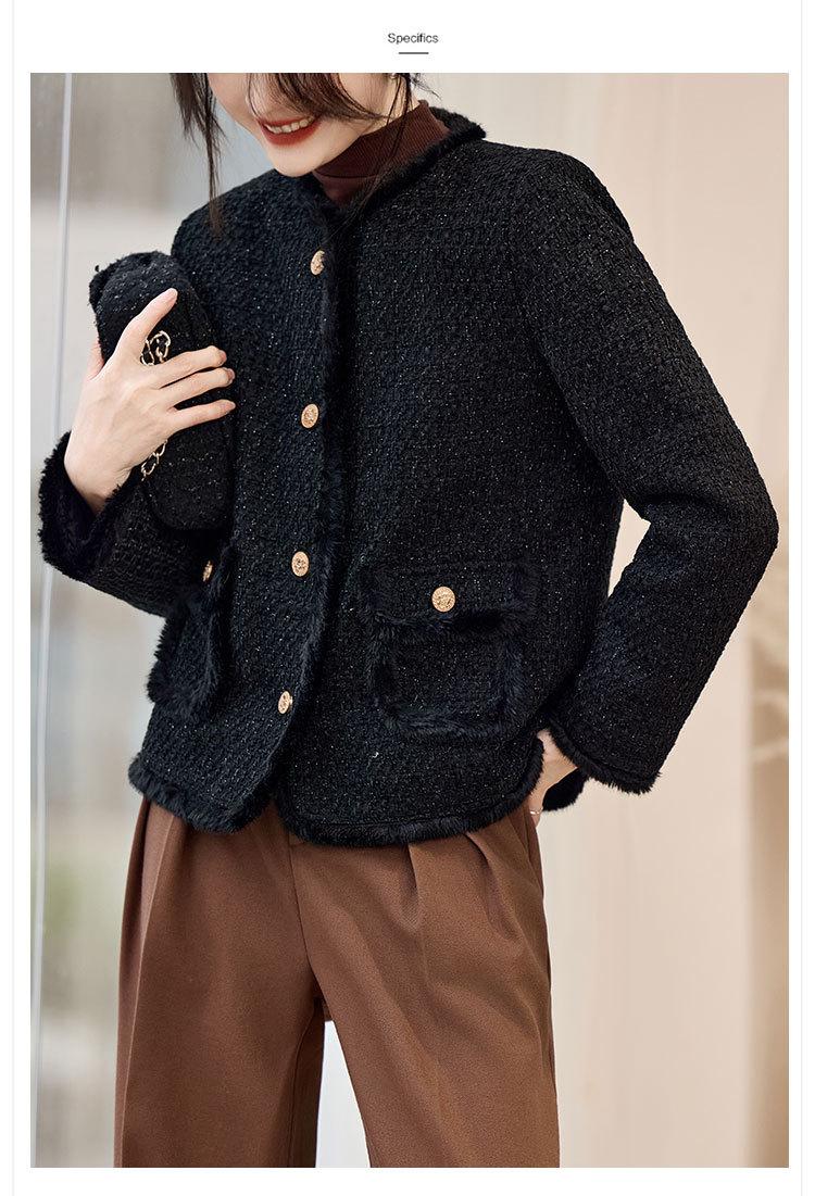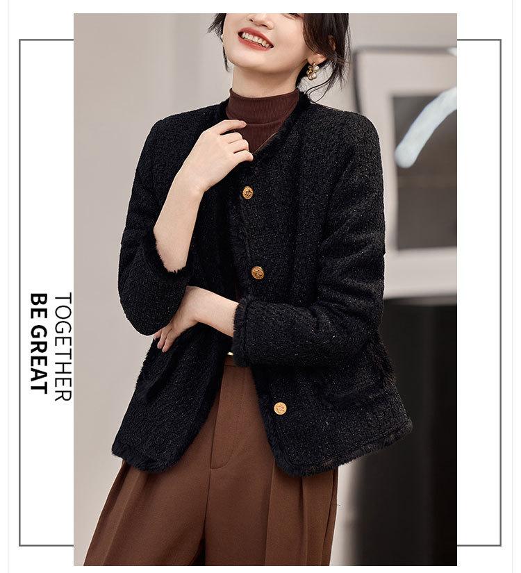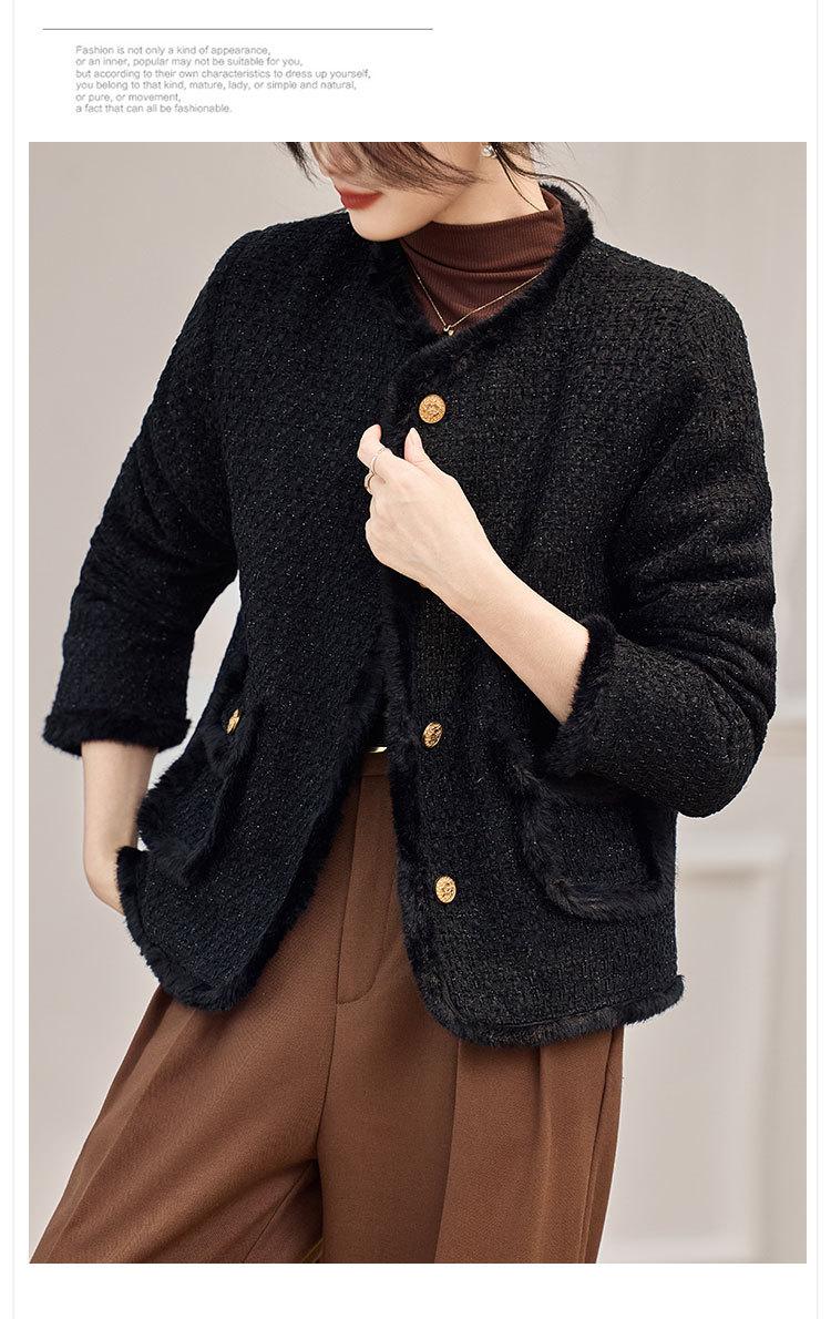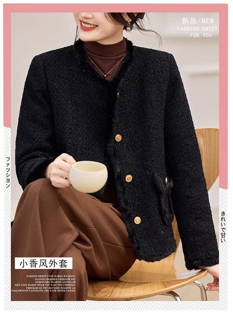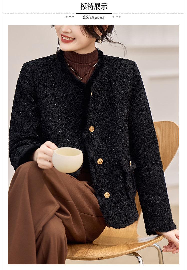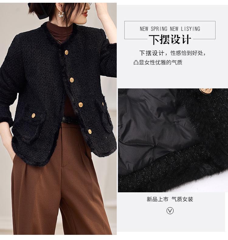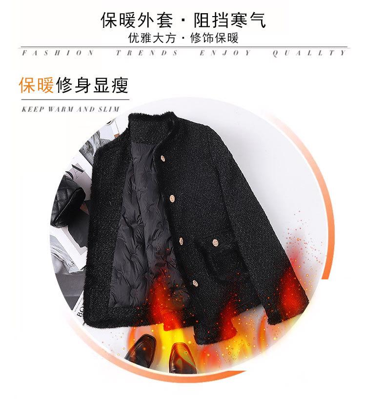 Abrigo de tweed grueso para mujer, moda de invierno 2024, abrigo corto de tweed con forro de plumón de pato blanco cálido.
