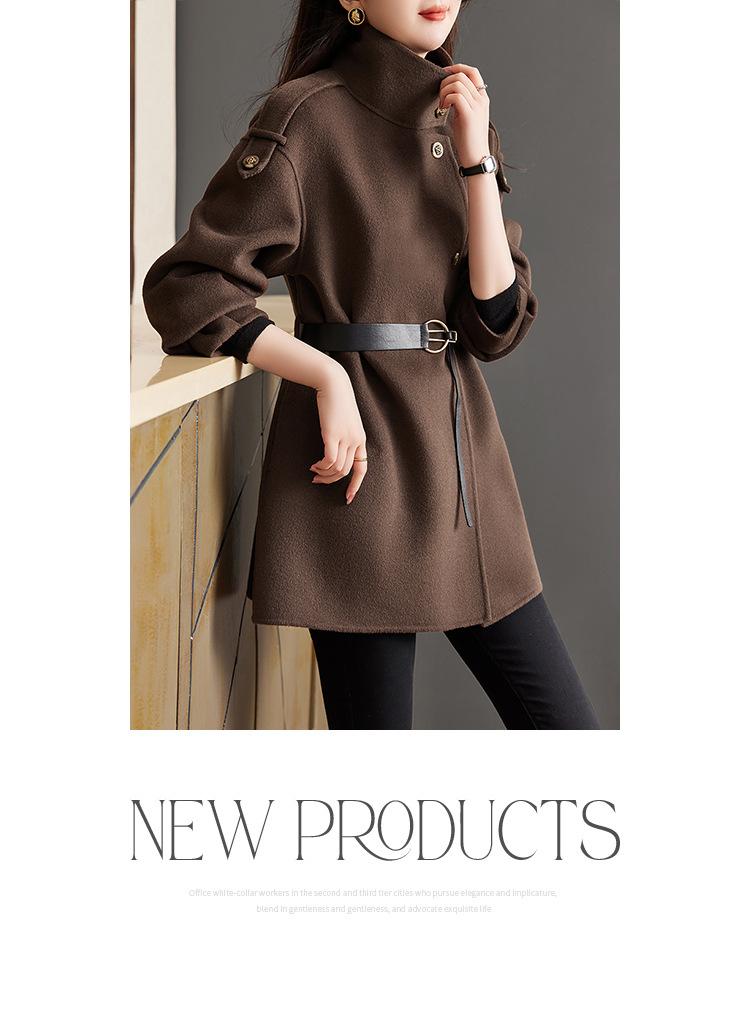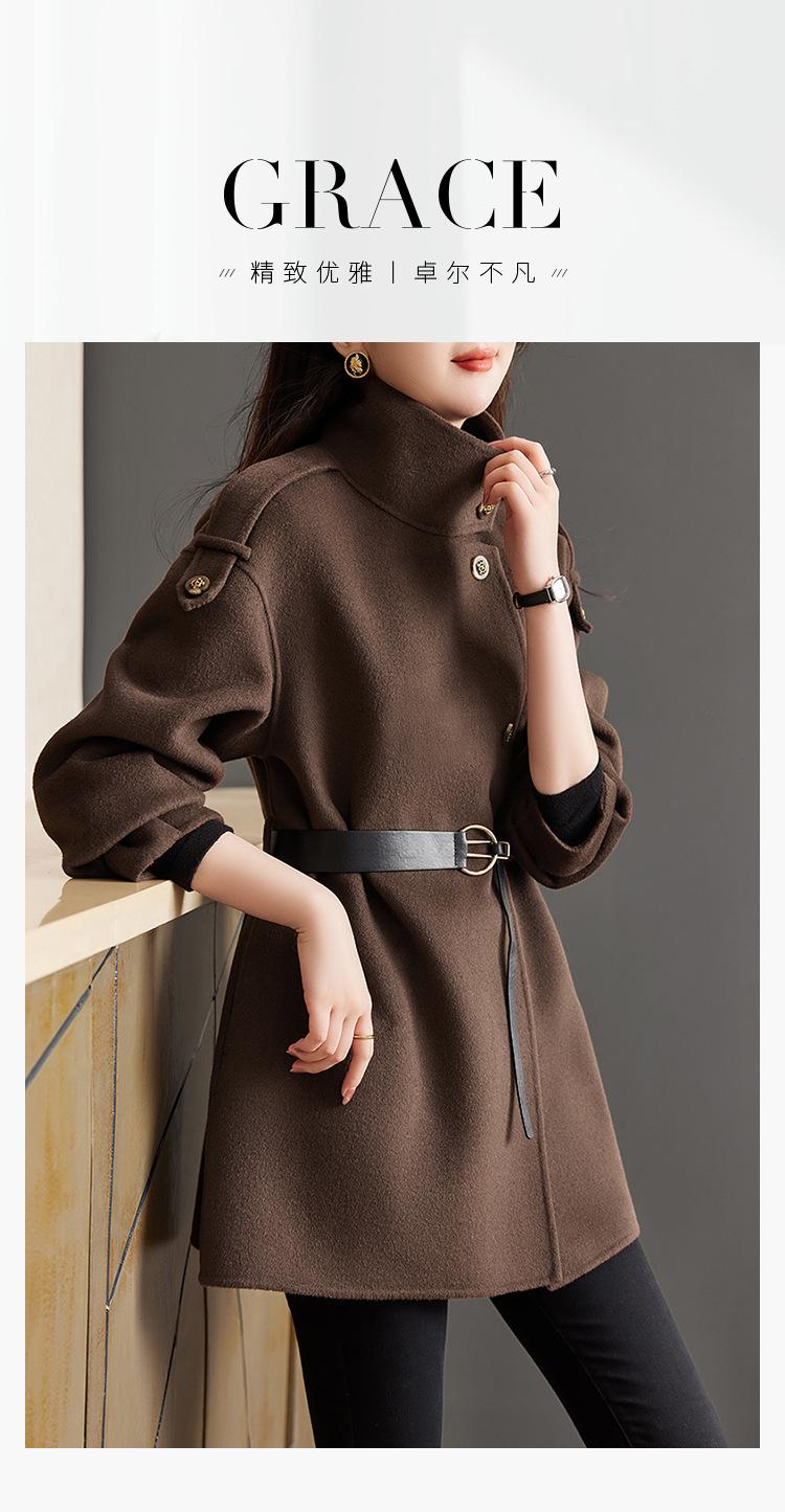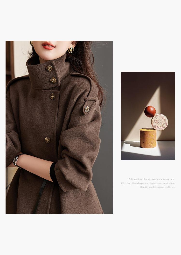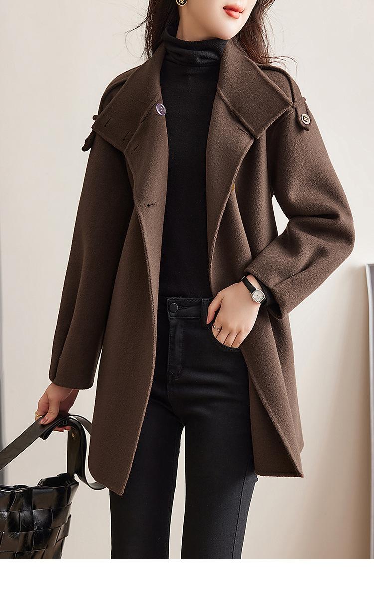 Prendas de abrigo de lana pequeñas, elegantes, retro, de longitud media, en color café, para mujer, invierno 2024, nuevas prendas de abrigo holgadas y gruesas.