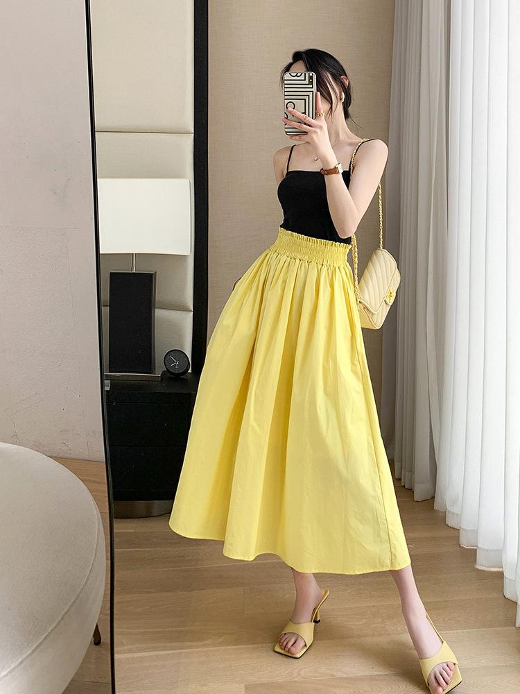 Compra Celebrity 2025 Falda Amarilla de Cintura Alta Corte A Look Adelgazante Falda Paraguas Diseño Plisado con Cintura Elástica Falda Niche de Media Longitud al por mayor en Joom.pro