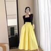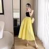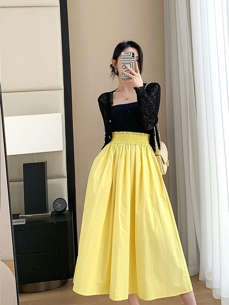 Celebrity 2025 Falda Amarilla de Cintura Alta Corte A Look Adelgazante Falda Paraguas Diseño Plisado con Cintura Elástica Falda Niche de Media Longitud