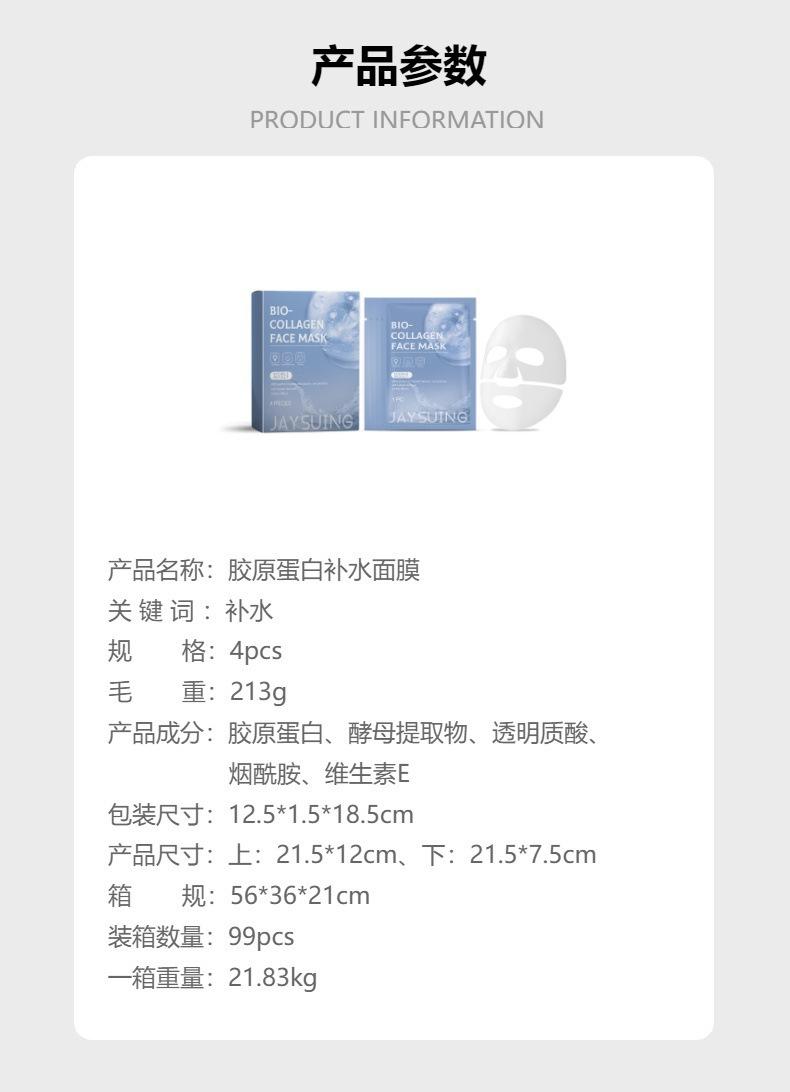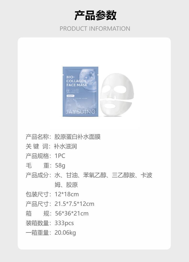 Mascarilla hidratante de colágeno Jaysuing: atenúa las líneas finas, hidrata, reafirma, hidrata y mejora la piel.