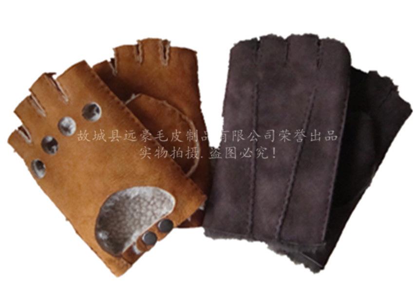 Guantes de piel de oveja para hombre, de invierno, con forro polar, gruesos, cálidos, para ciclismo, motocicleta, conducción, pantalla táctil, medio dedo.