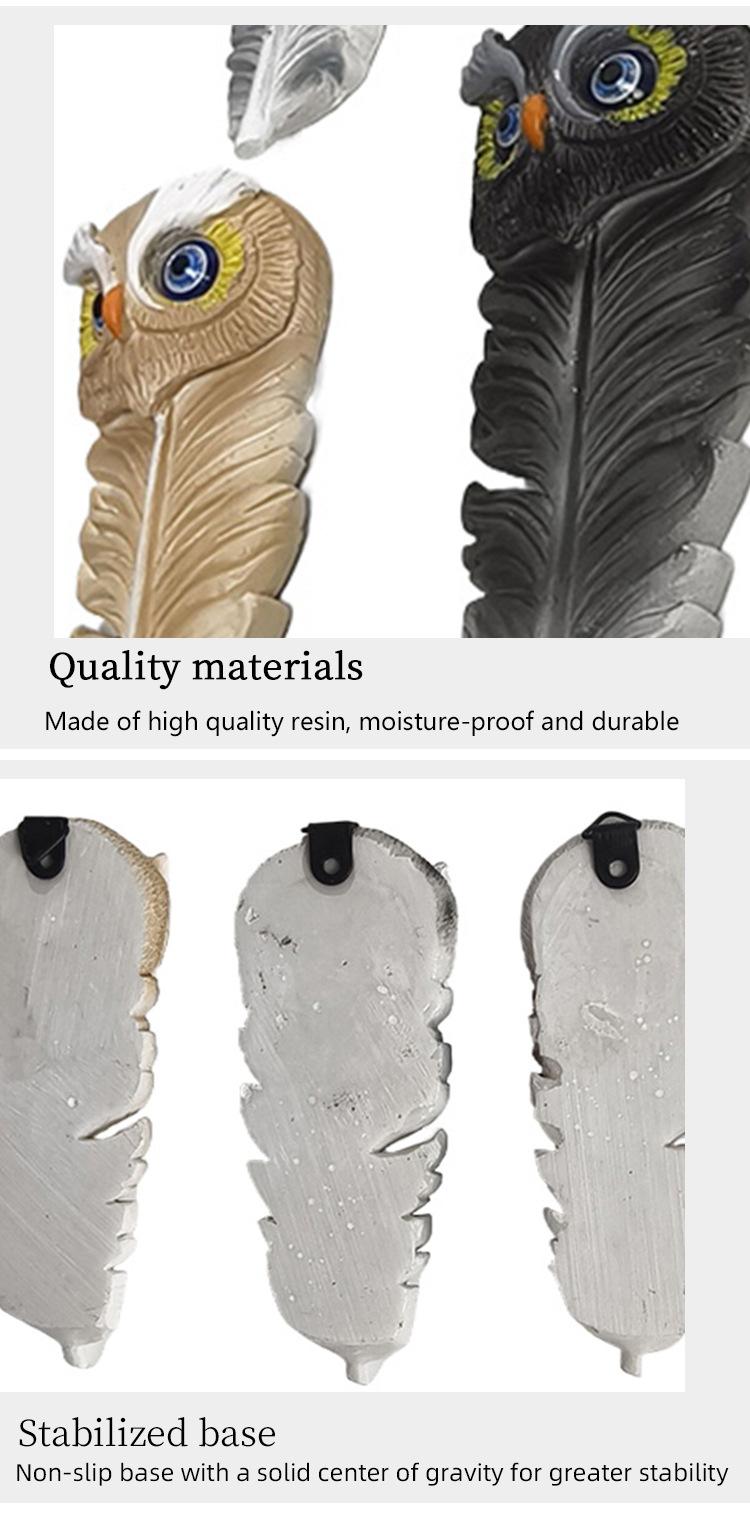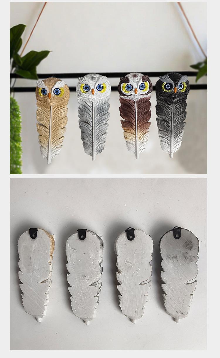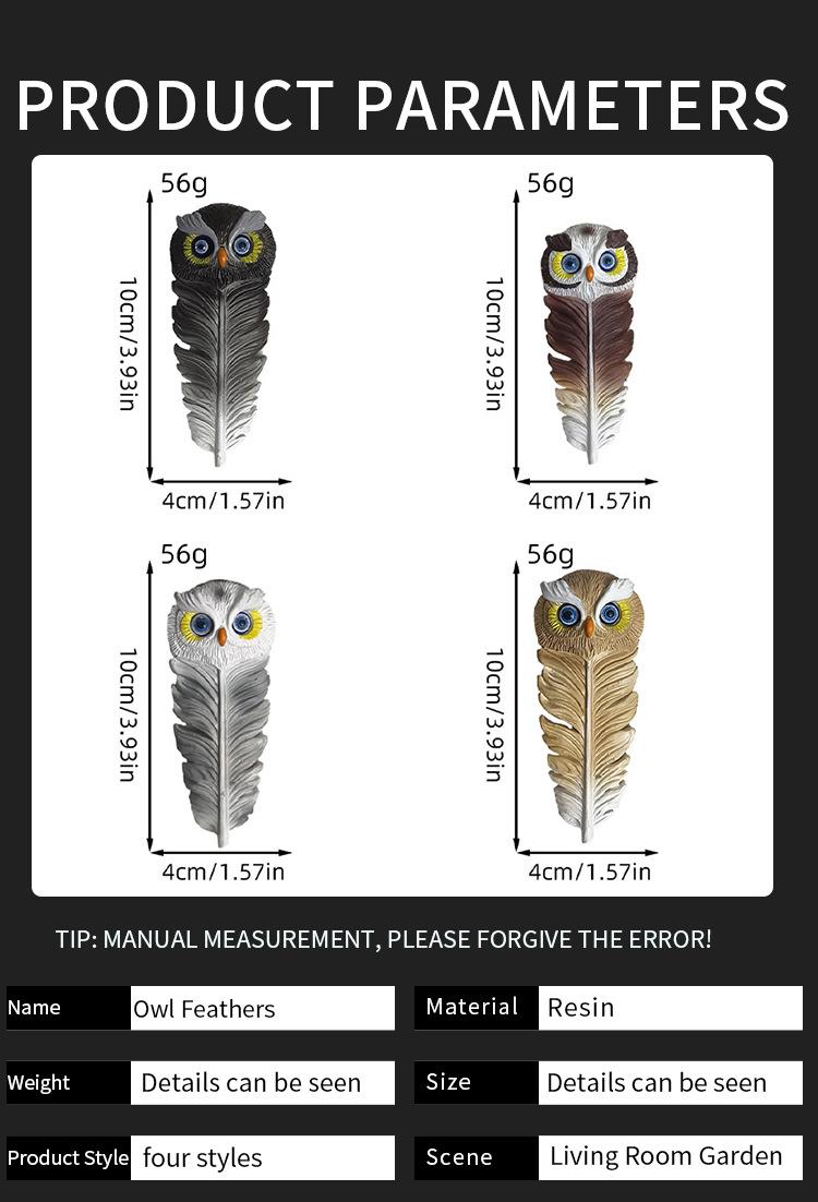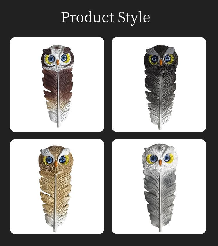 Feather owl black, Feather owl yellow, Feather owl brown, Feather owl gray