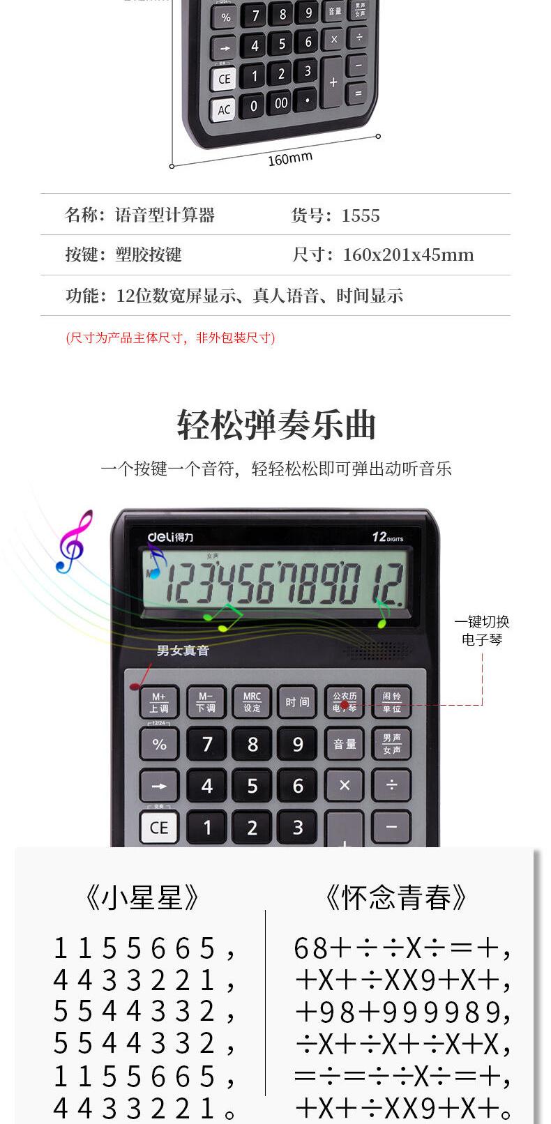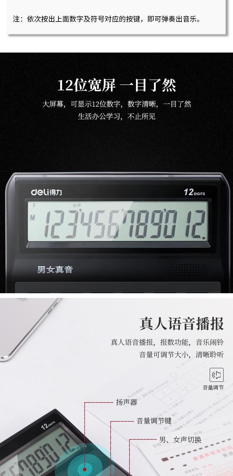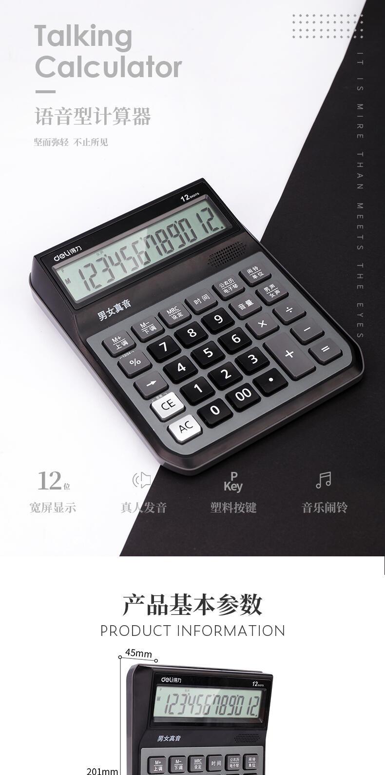 Calculadora de Voz Deli 1555 Gris Plata Pantalla Ancha de 12 Dígitos con Transmisión de Voz Real Calculadora para Dropshipping
