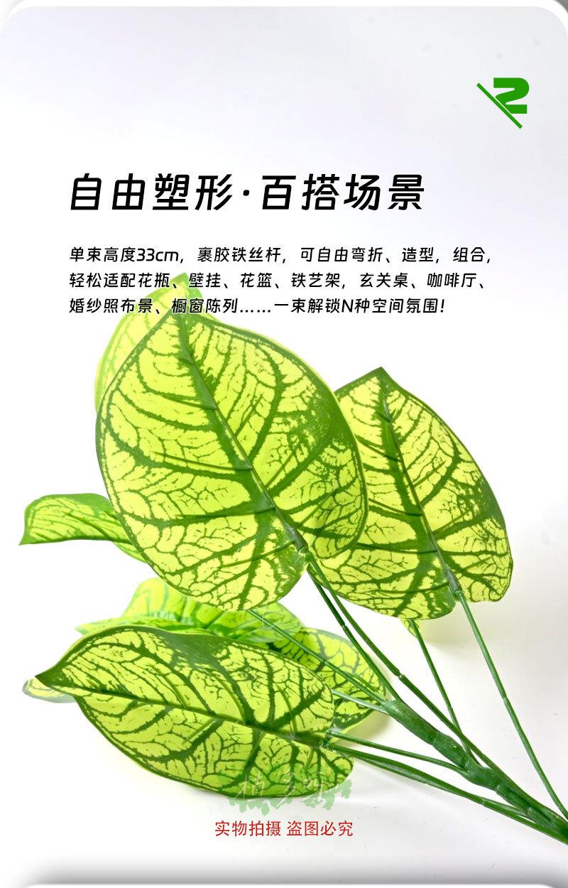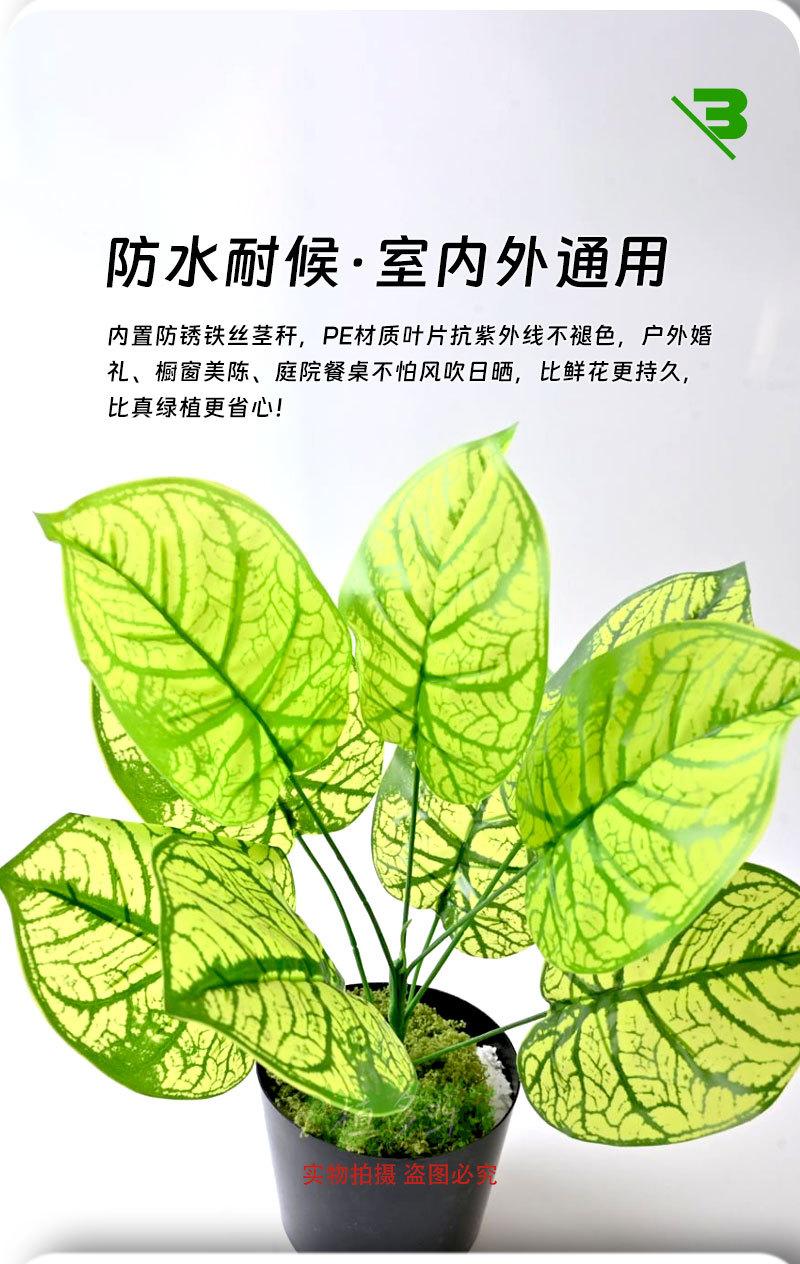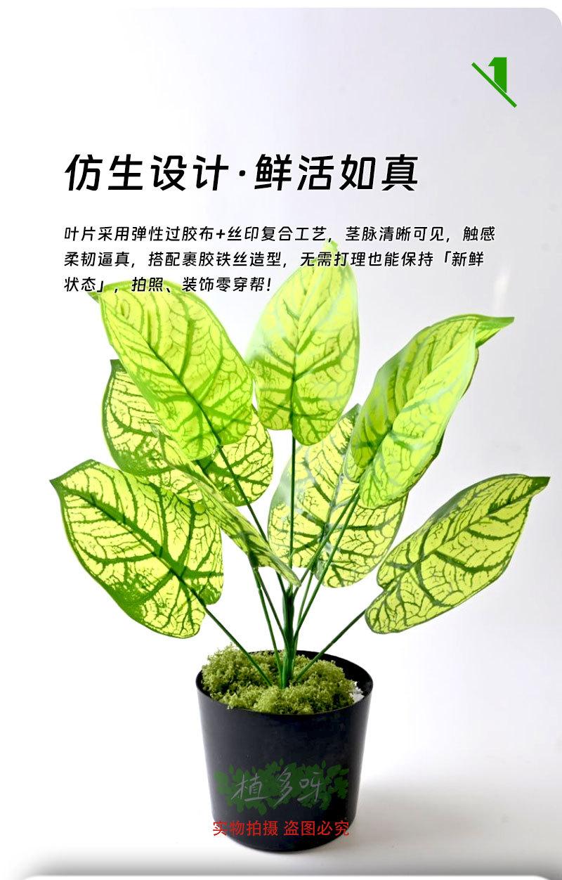 Planta verde pequeña en maceta, paquete grande, 9 tenedores, color amarillo, hoja de taro, estilo nórdico, decoración de sala de estar interior, paisaje de planta artificial biónica