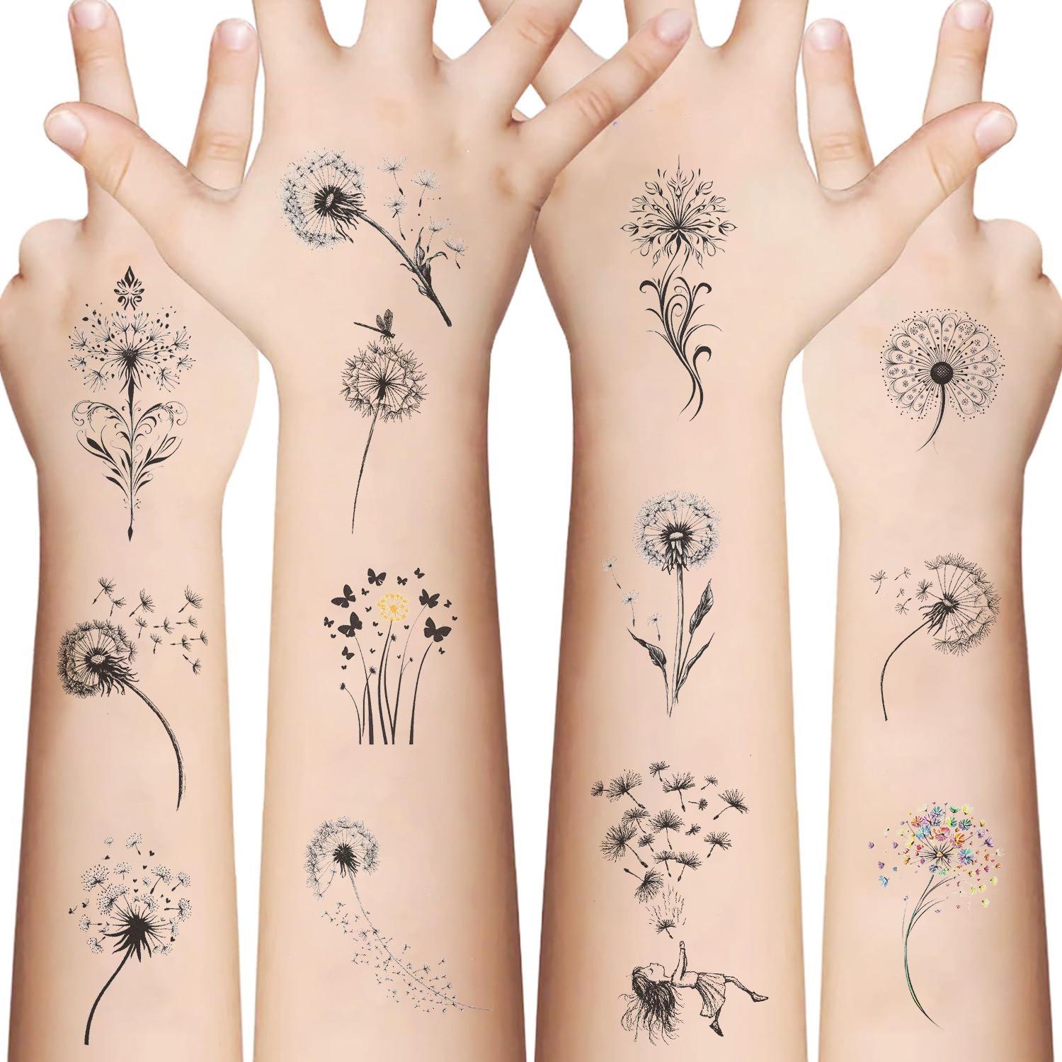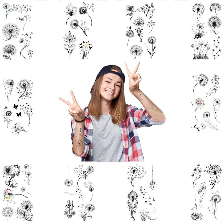 Transfronterizo Nuevo Serie Diente de León Blanco y Negro Calcomanías de Tatuaje Impermeables Regalo de Fiesta Divertido Calcomanías Divertidas para la Cara