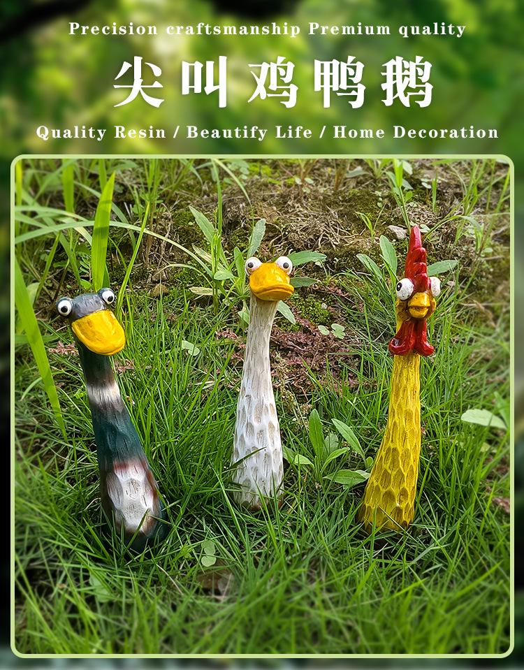 Decoraciones de Jardín Nuevas Transfronterizas Pollo Gritón Pato Ganso Decoración de Césped de Patio Estatua de Animal Artesanías de Resina