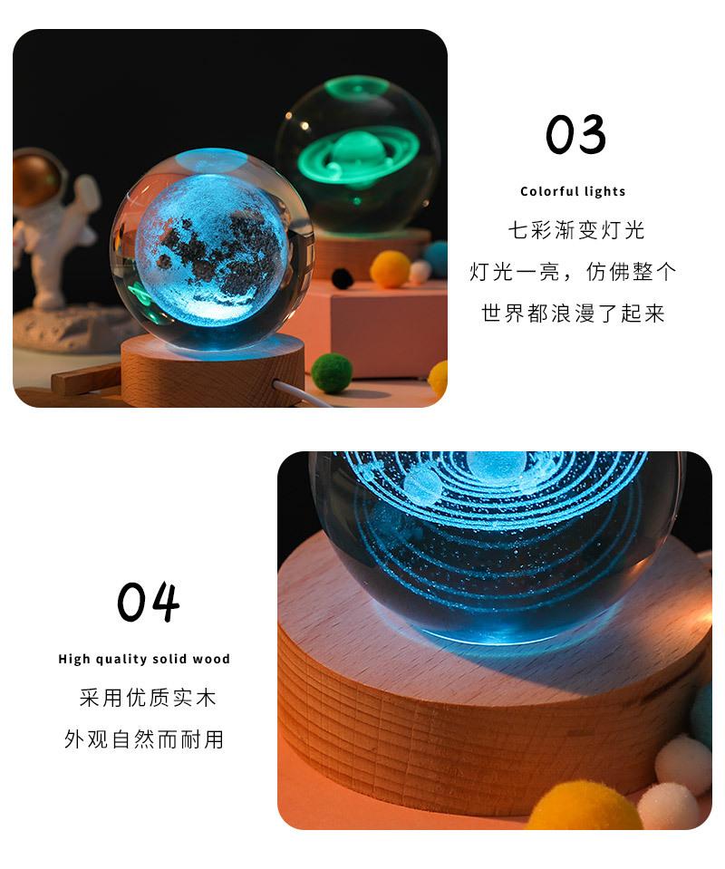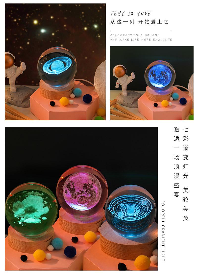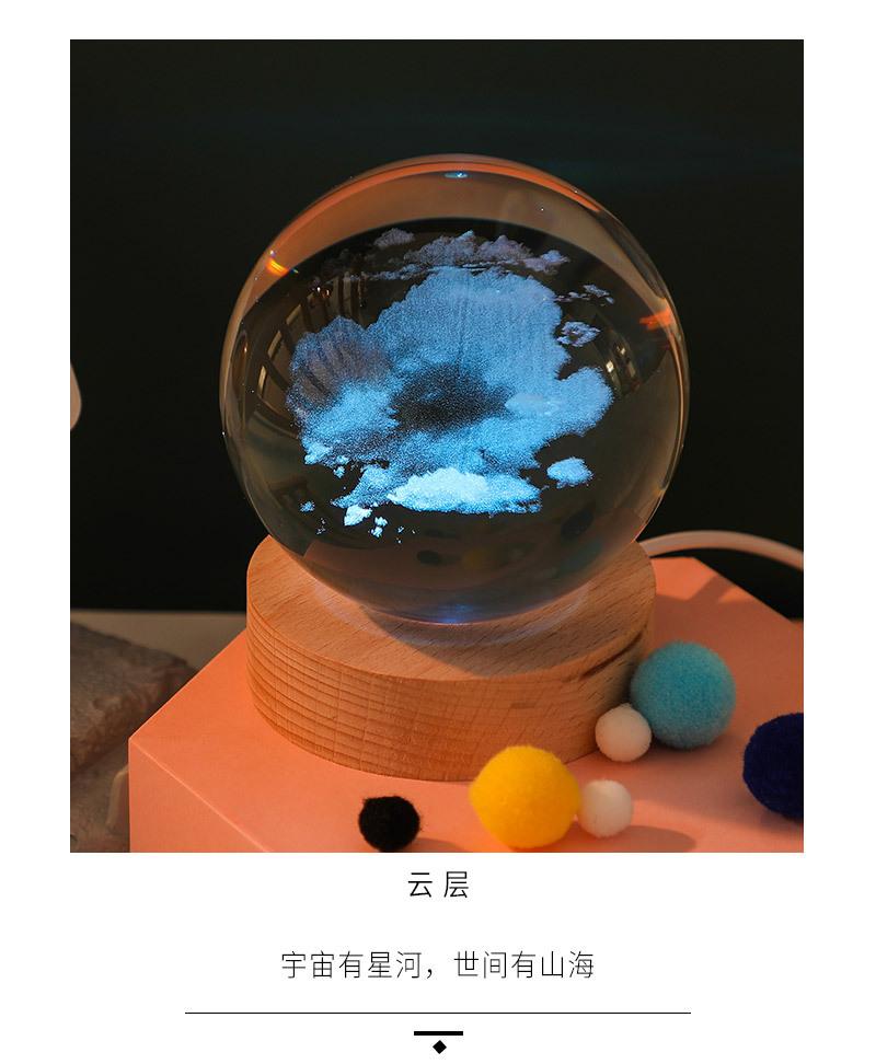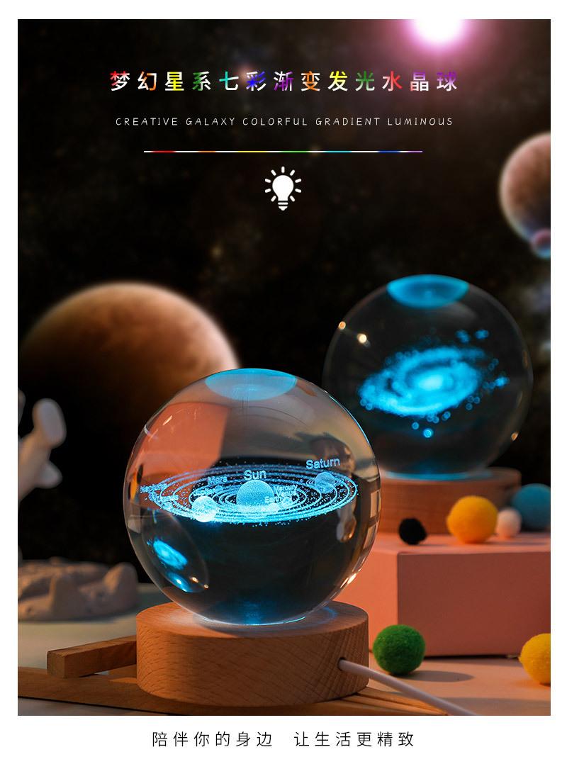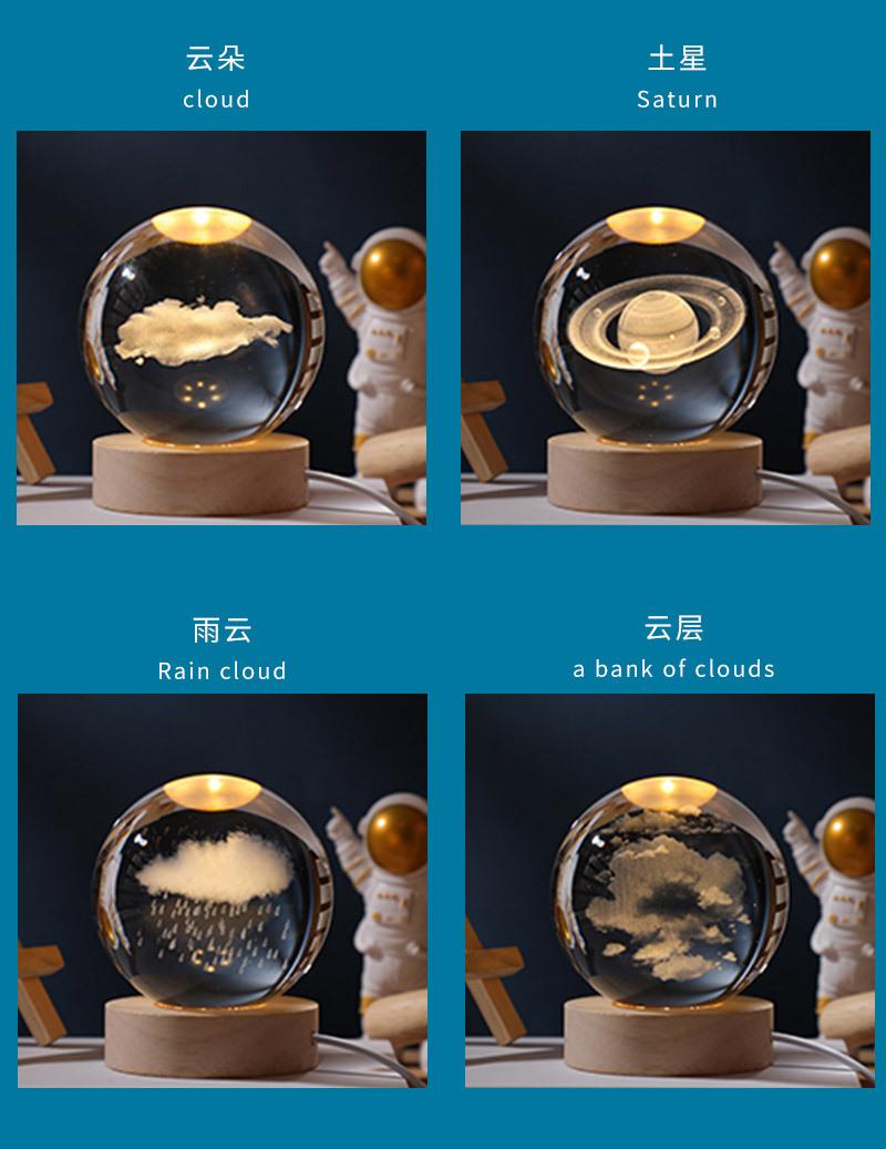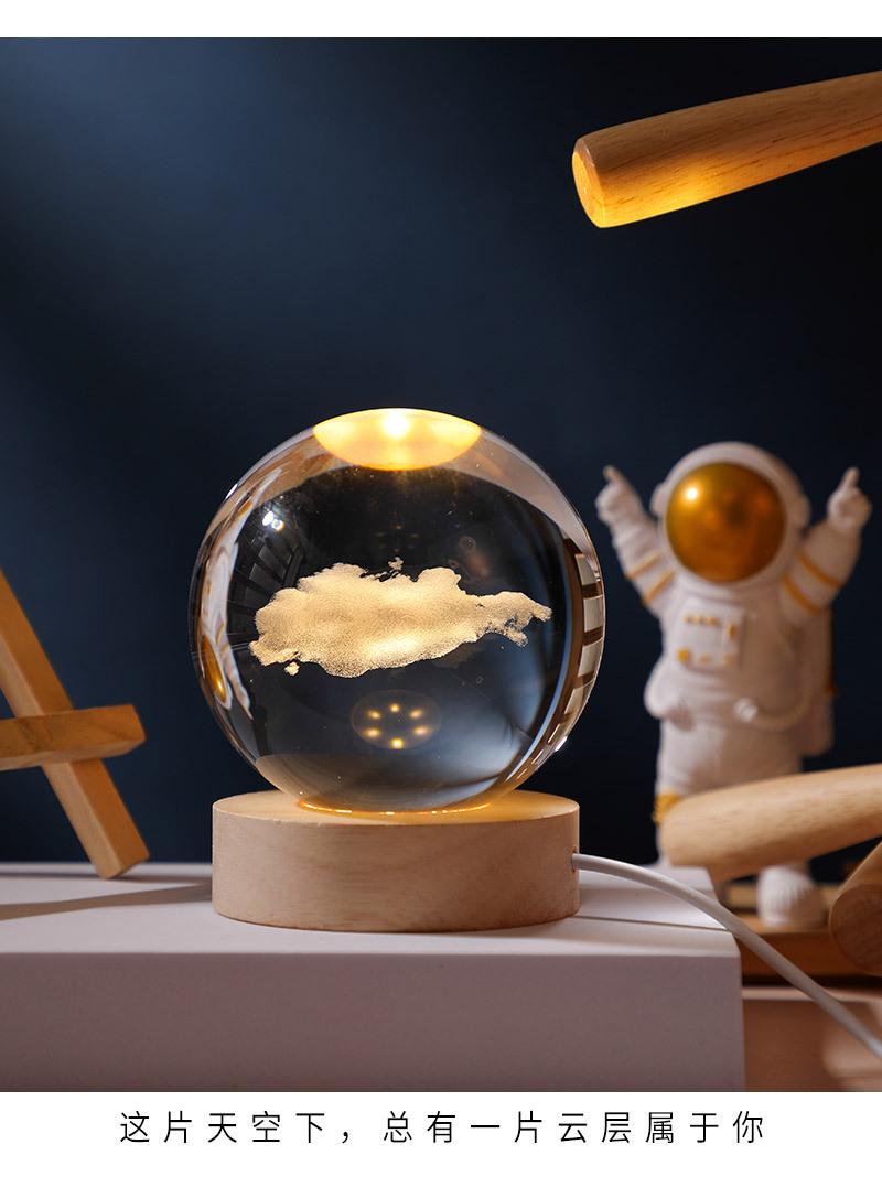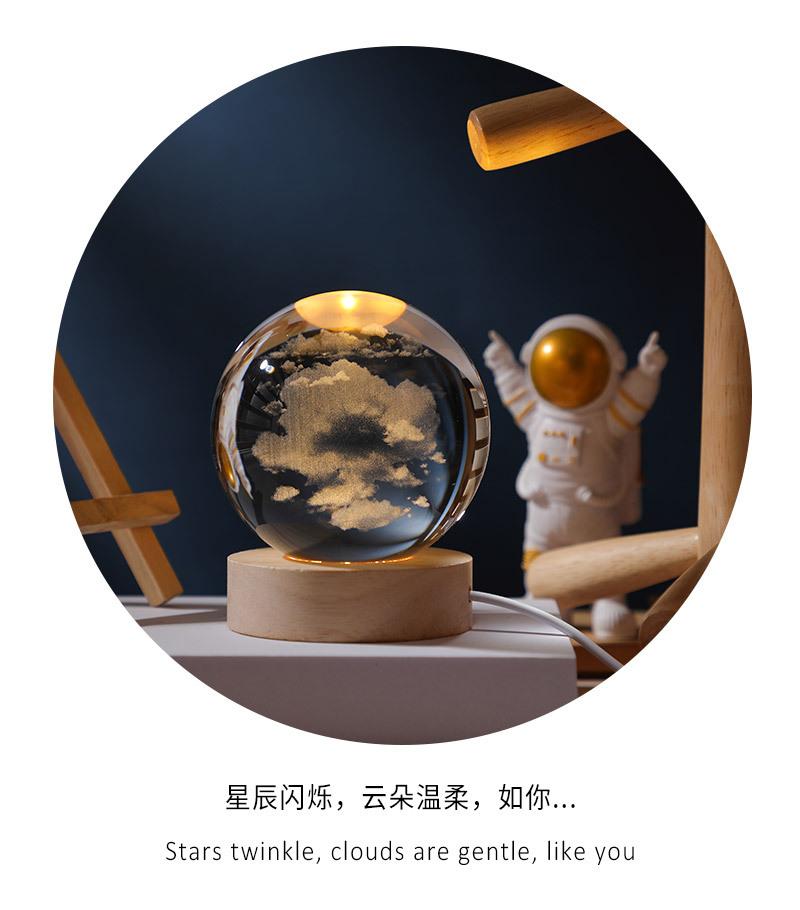 Bola de cristal tallada en 3D con control de voz, luz nocturna creativa y luminosa para dormitorio, decoración de escritorio, adornos, regalo de cumpleaños