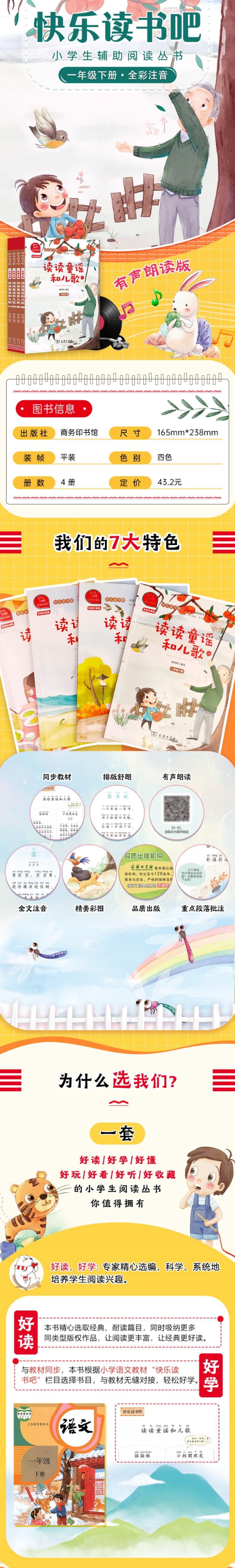 Happy reading, grade 1 volume 2 recommended suit, 4 volumes in total, new curriculum standard reading, commercial press