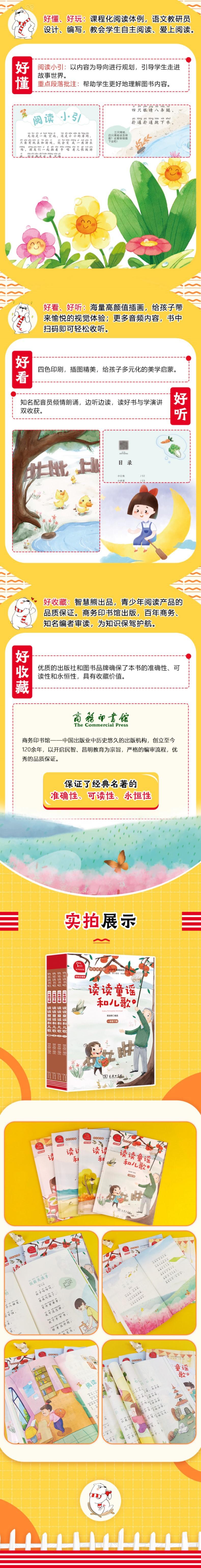 Este libro selecciona muchas canciones infantiles conocidas que se transmiten oralmente y están escritas por muchos escritores de literatura infantil, cubriendo tres temas: naturaleza, conocimiento y vida. Estas canciones infantiles utilizan palabras coloquiales y fáciles de entender, rica imaginación, maravillosas metáforas y ritmos ágiles para presentar vívidamente plantas y animales en la naturaleza, cosas con las que a menudo entramos en contacto en la vida y las cálidas emociones entre las personas. Estas pegadizas canciones infantiles son cortas pero exquisitas, y los jóvenes lectores pueden vislumbrar la belleza de la literatura aquí.