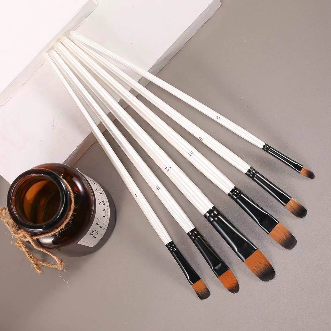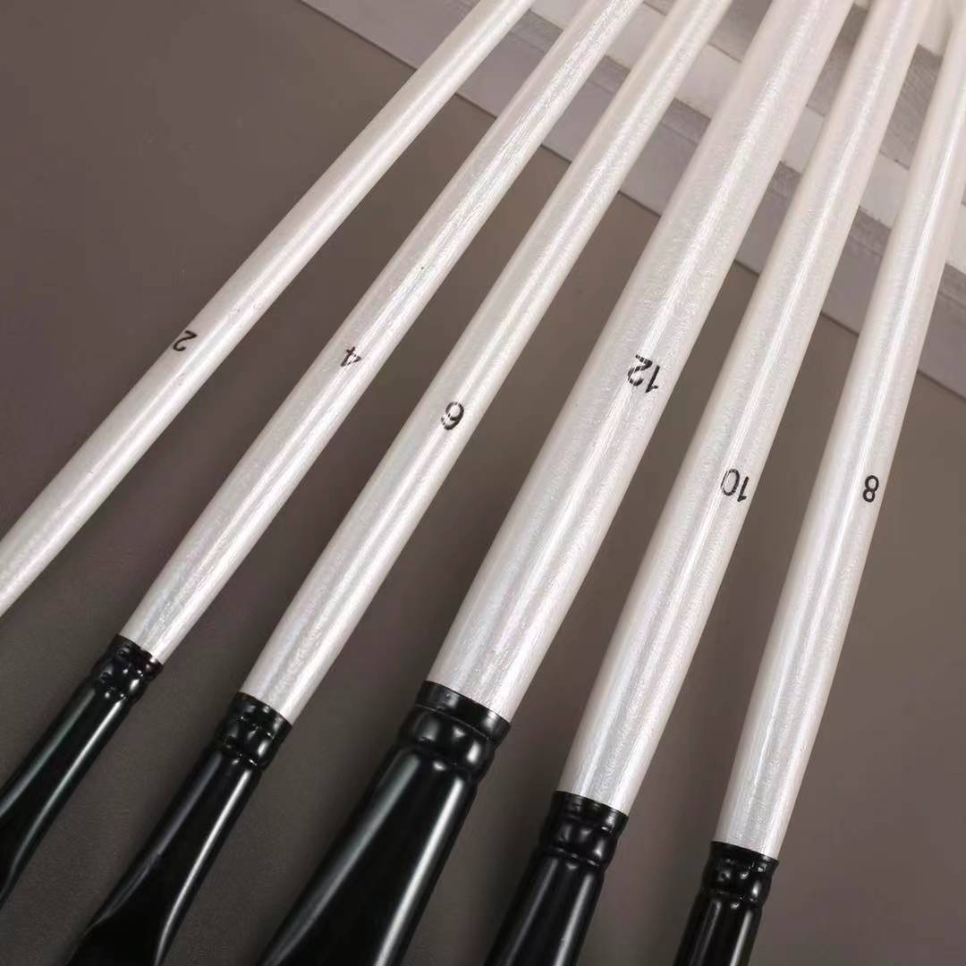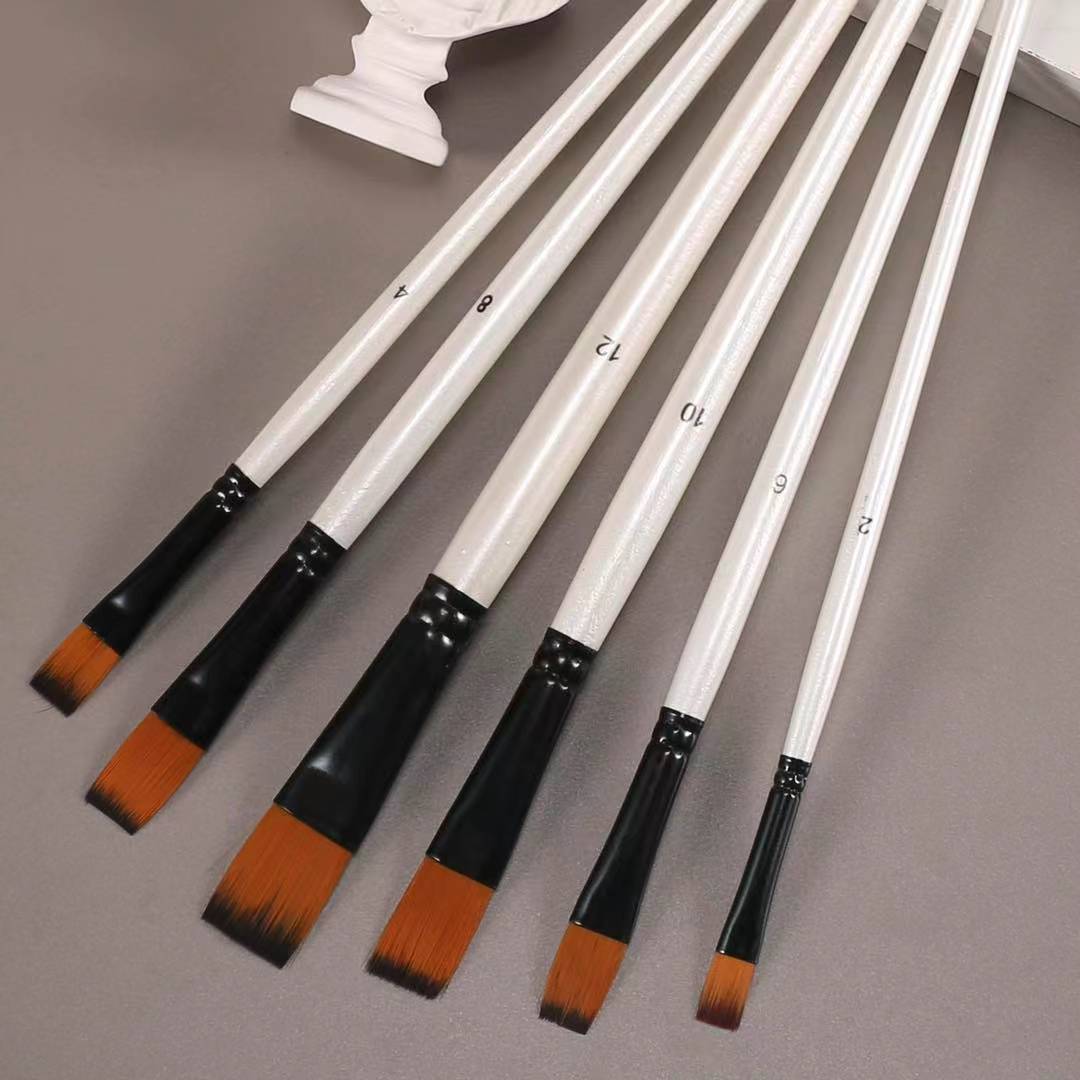 Blanco perla mango de madera pintura acrílica pincel 6 set de plumas de acuarela de lana de nailon bicolor arte punta oblicua