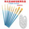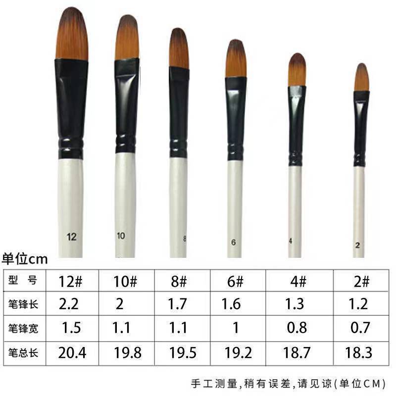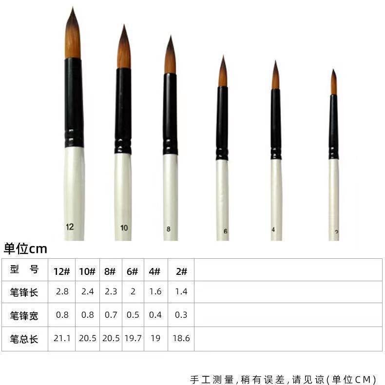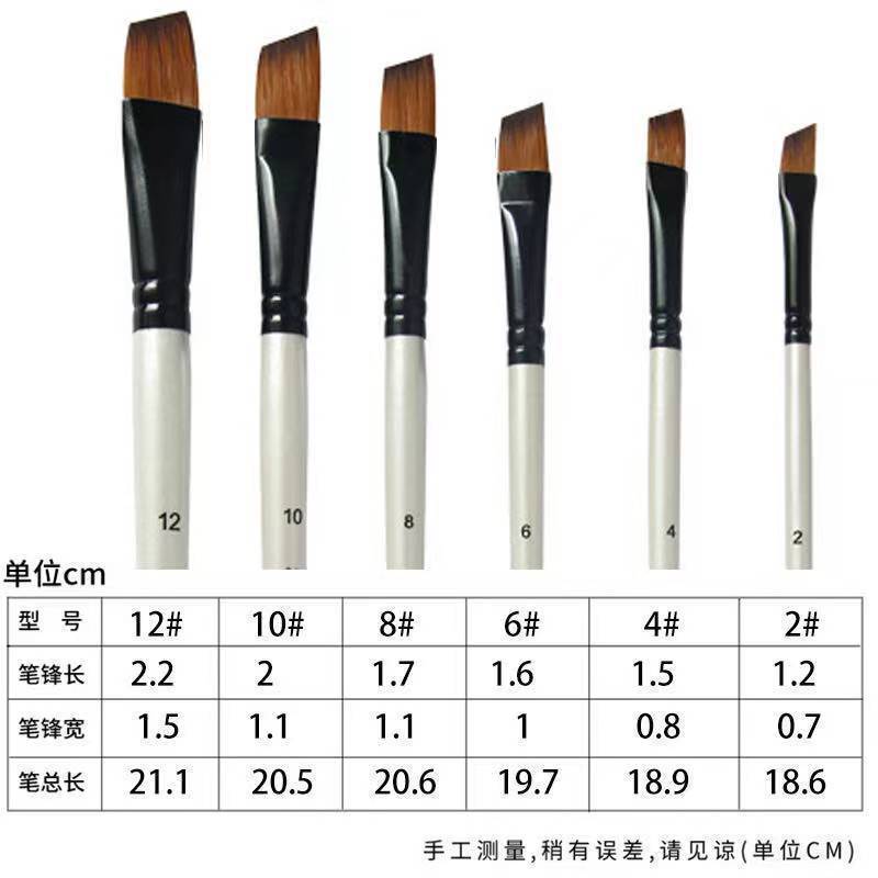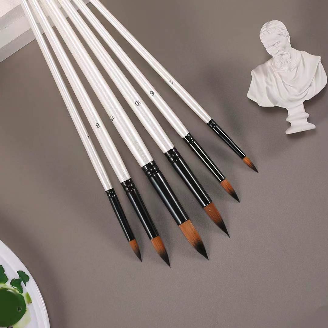 Blanco perla mango de madera pintura acrílica pincel 6 set de plumas de acuarela de lana de nailon bicolor arte punta oblicua
