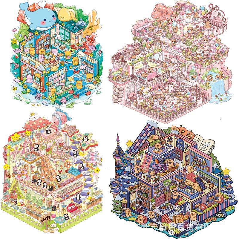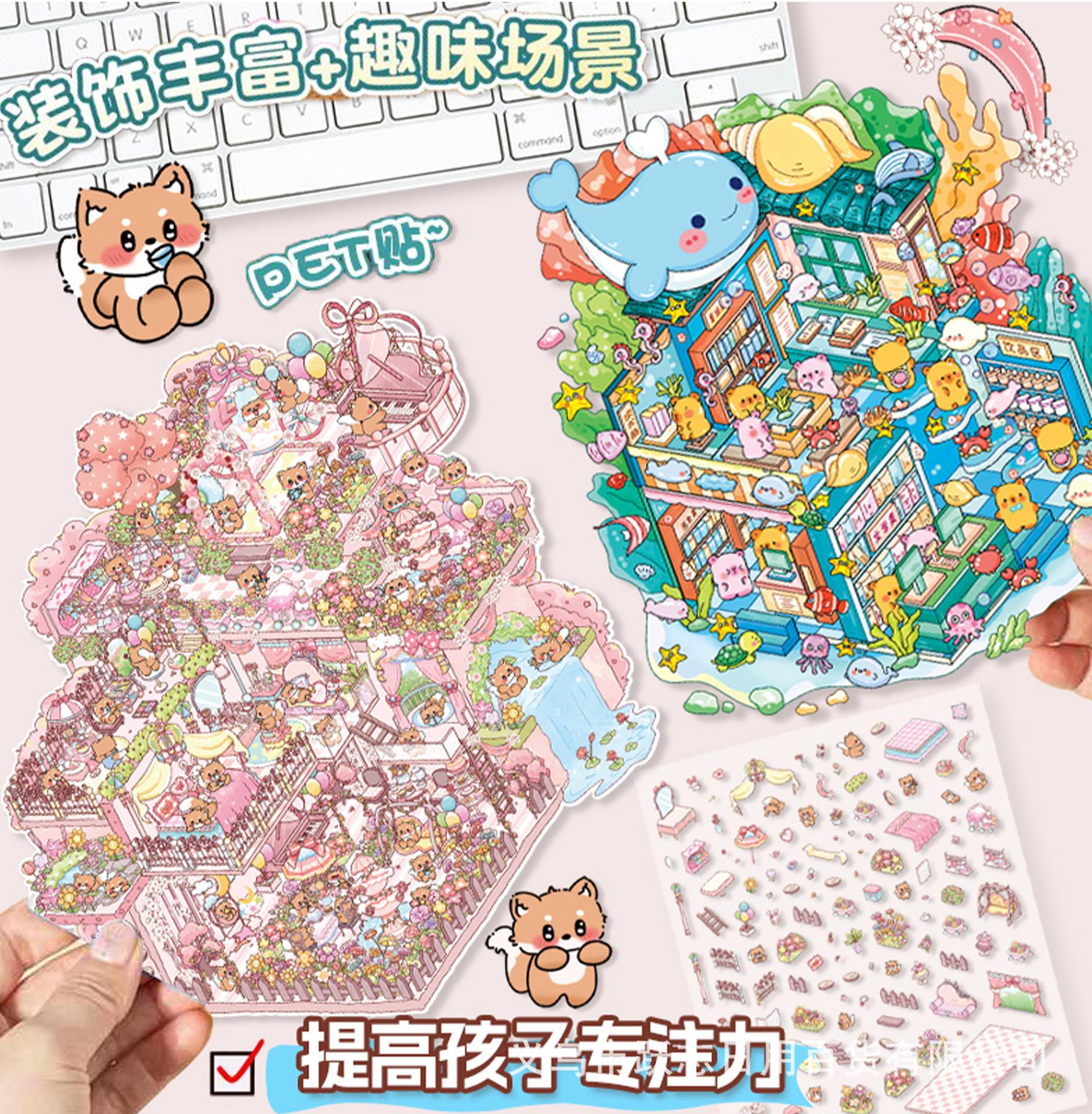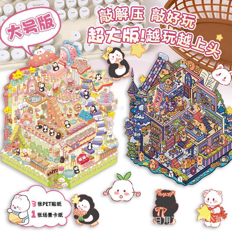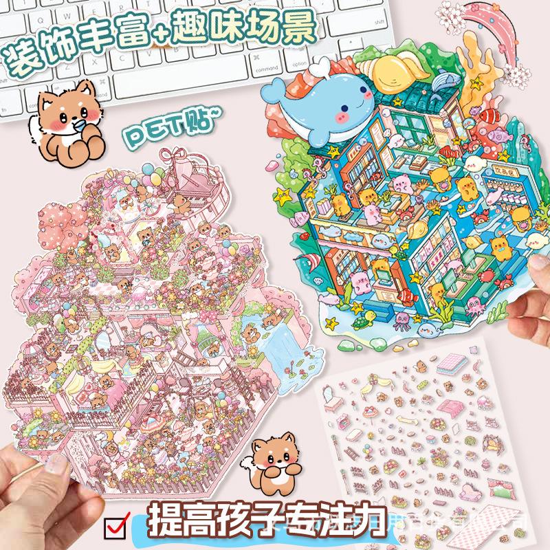 Enviar pinzas 9.0 versión súper grande de divertidas pegatinas de paisajismo cabaña 3d apilamiento tridimensional escena en miniatura diy pegatinas lindas