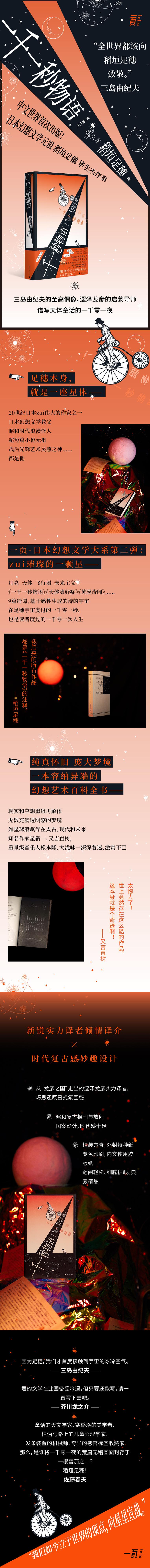 "Por muy interesantes que sean las cosas del mundo, no son tan extrañas como un sueño en plena noche". Esta es una colección de las obras maestras del cuentista japonés original, Inagaki Ashiho, que incluye nueve obras representativas de diferentes épocas. Titulada "Historia de mil y un segundos", es la primera obra de Inagaki. Para Ashiho, es el modelo original del universo: "Todas mis obras posteriores son anotaciones a "Historia de mil y un segundos". El aire frío del universo, el hermoso cuerpo del niño, el extraño dispositivo flotante... rechazando la oscura constitución de la literatura japonesa moderna, construye un nuevo y hermoso mundo de fantasía con el brillo intenso de las estrellas, que nos lleva más allá del sistema solar ordinario, nos sitúa en la cima del universo, declarando la guerra a las estrellas y presenciando el nacimiento y la decadencia de la belleza.
