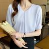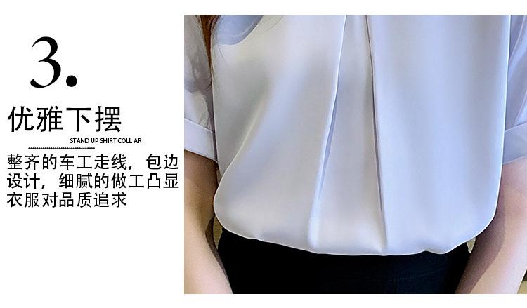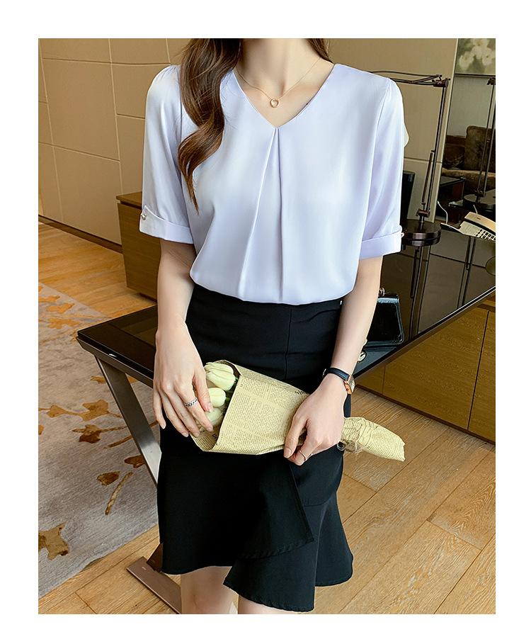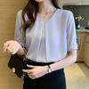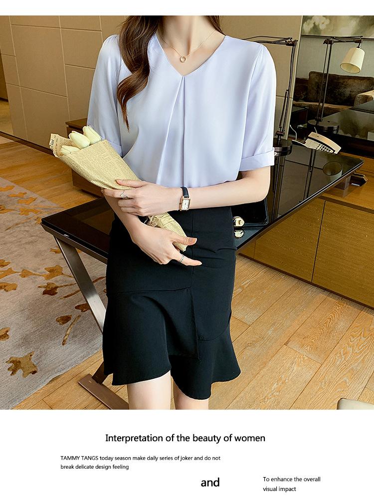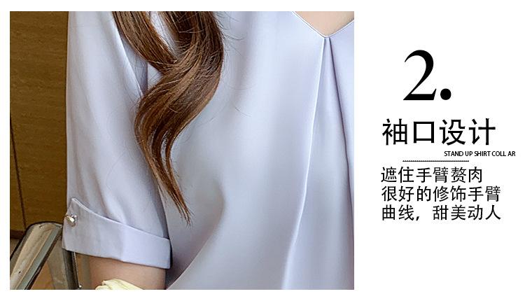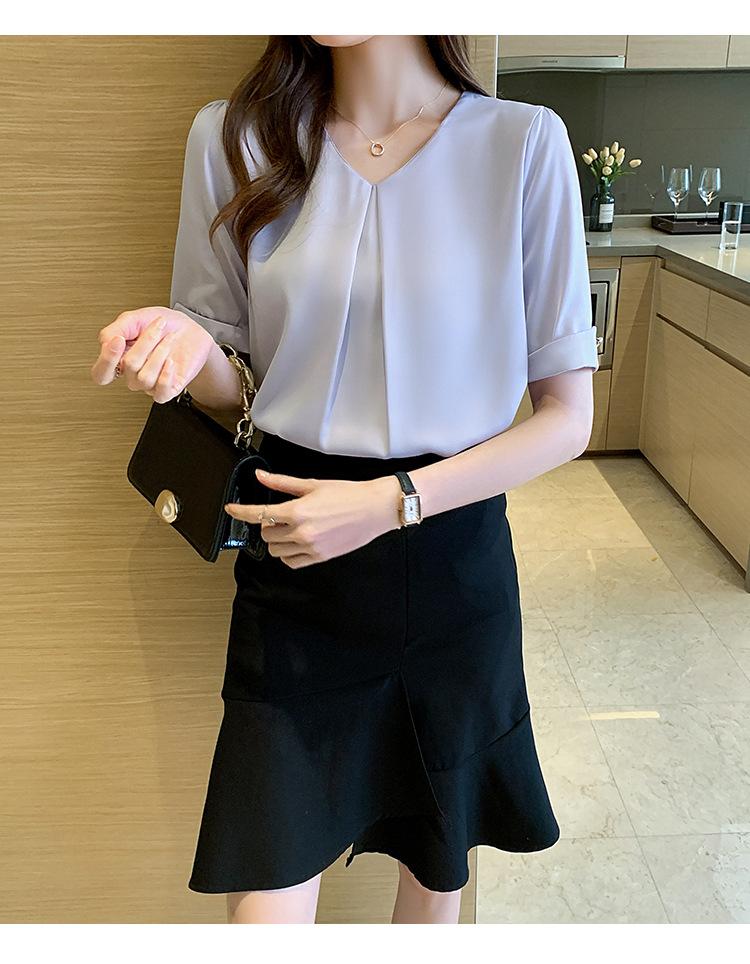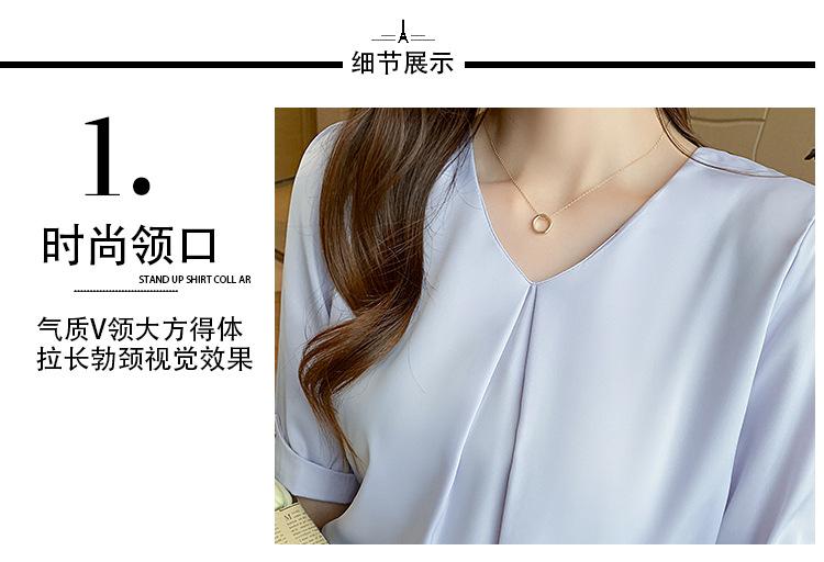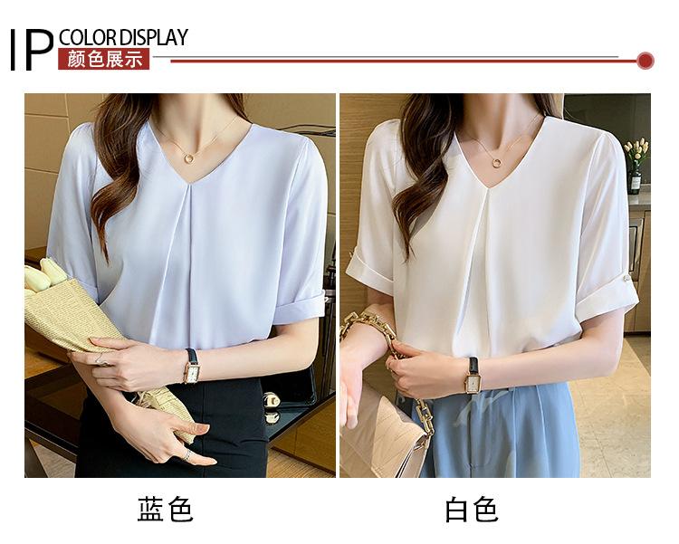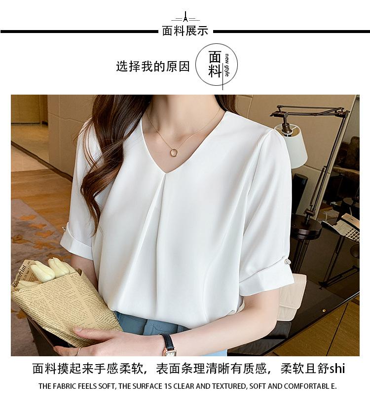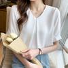 Compra Camisa de gasa con cuello en V francés para mujer, diseño fino de verano, camisa holgada de satén de manga corta, elegante ropa profesional al por mayor en Joom.pro