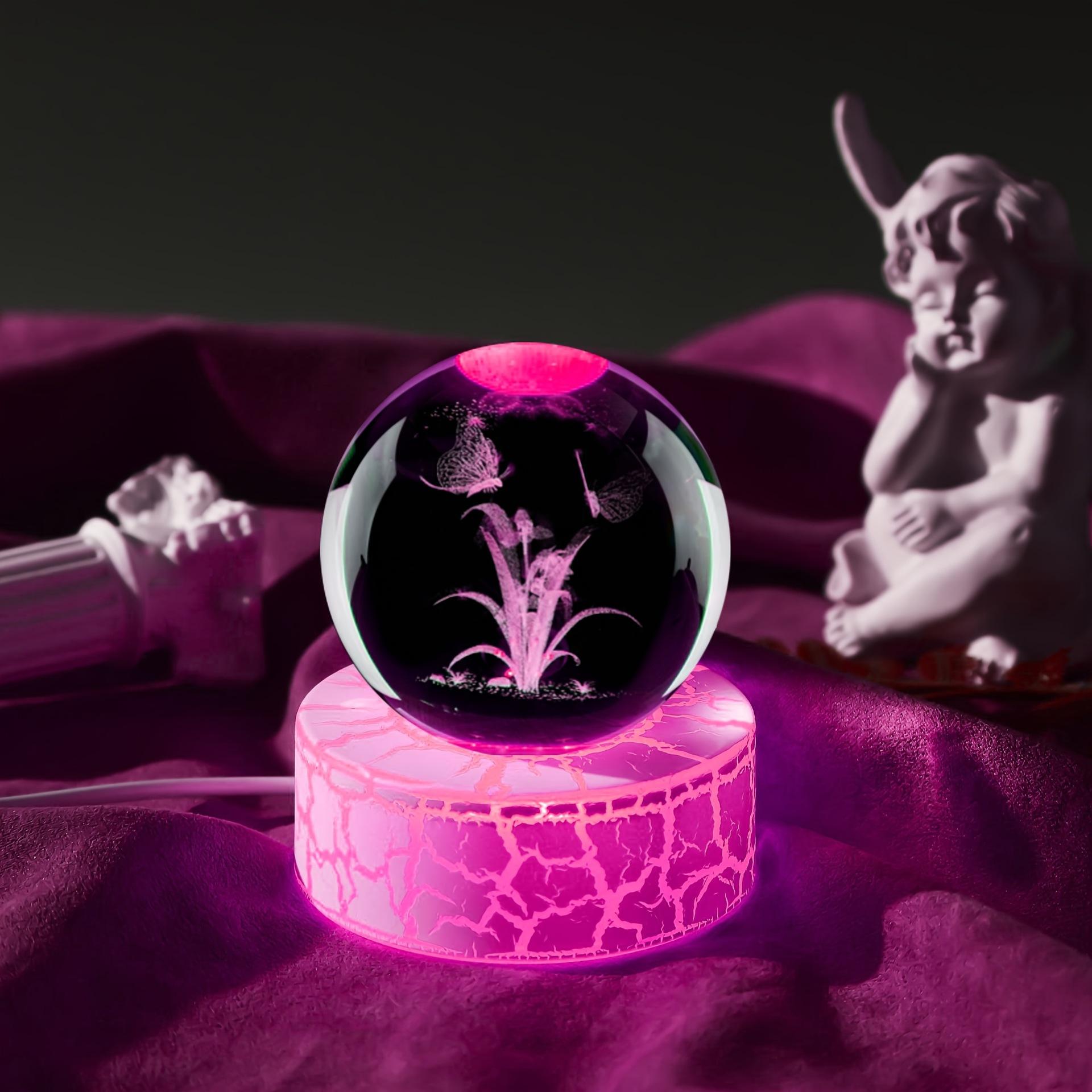 Base Luminosa Colorida Agrietada Flores y Mariposas Grabadas con Láser 3D Regalos Creativos Adornos de Escritorio, Regalos de Cumpleaños