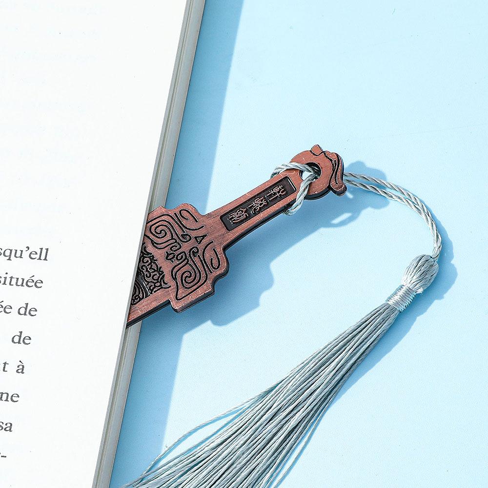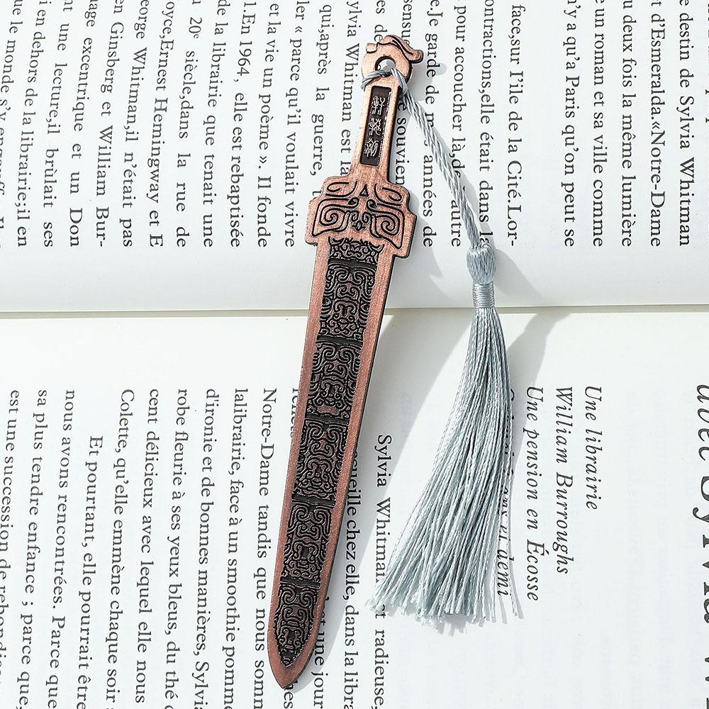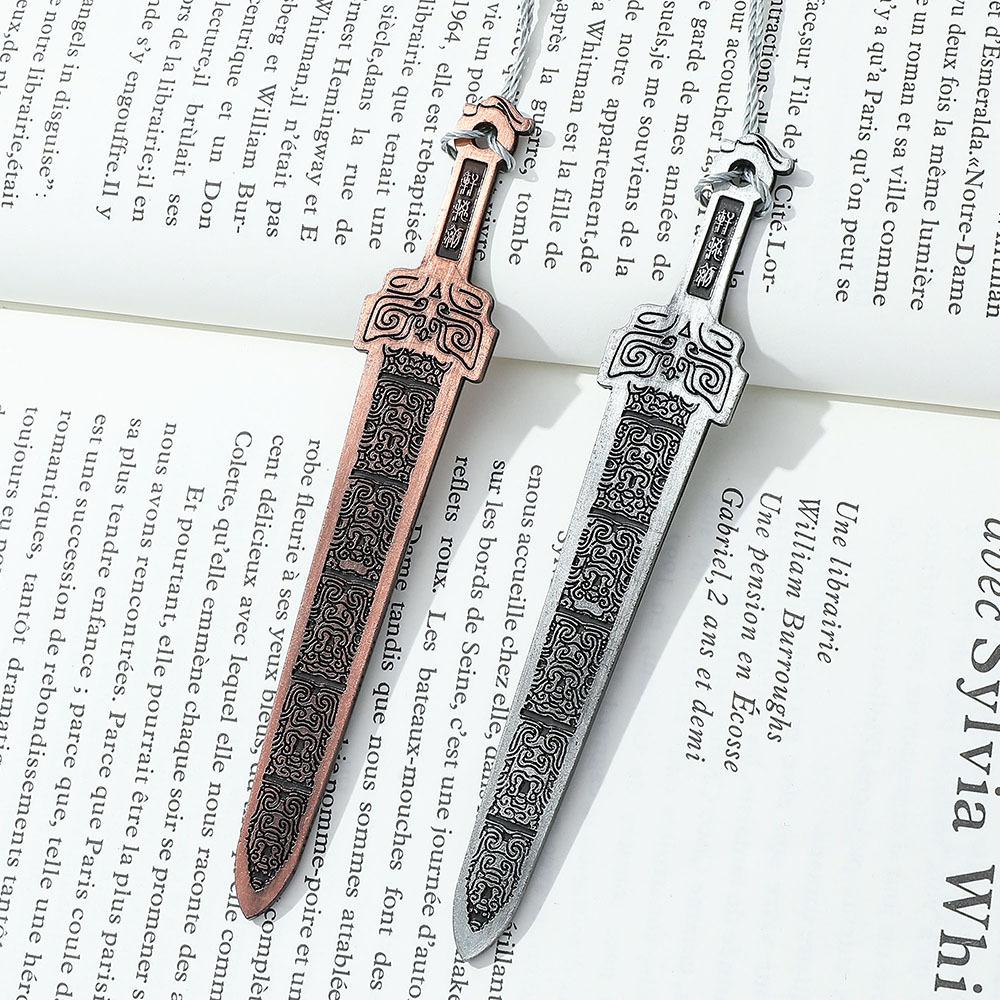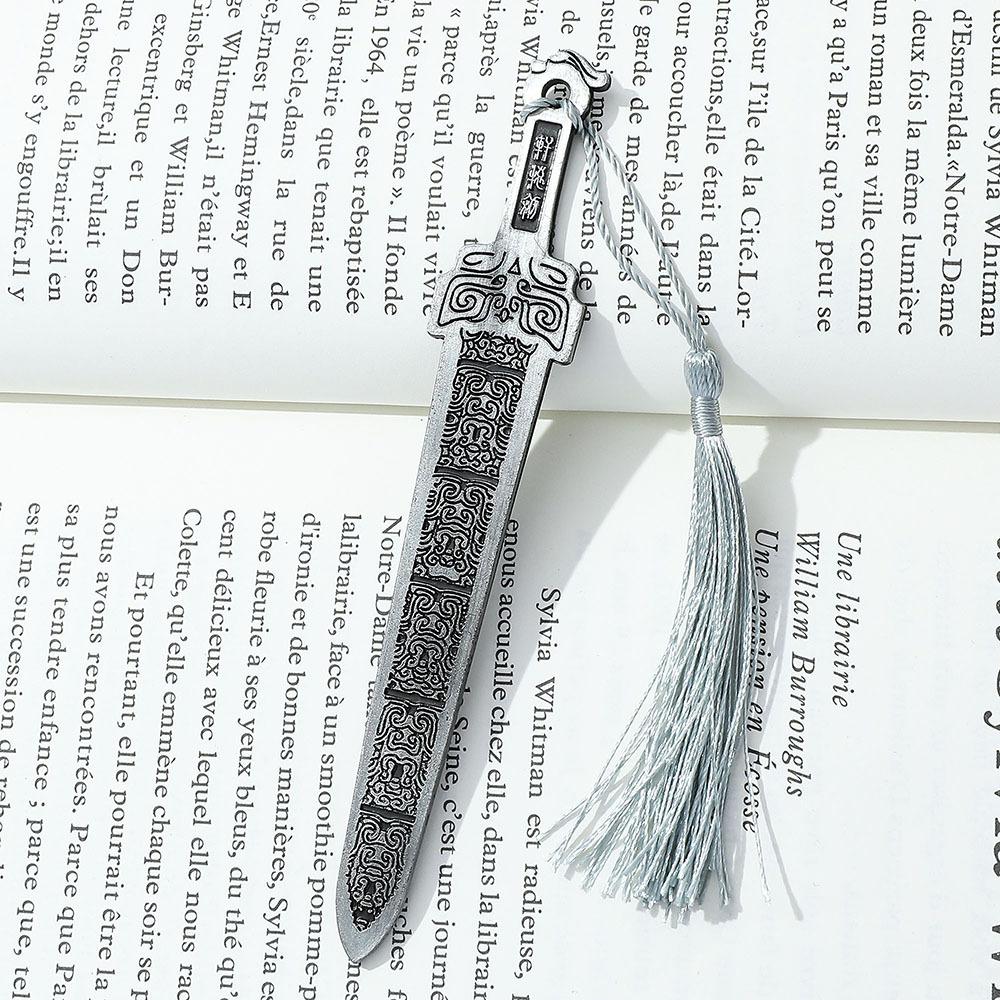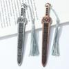 Marcapáginas de metal con forma de espada Xuanyuan antigua con borla, exquisito tallado en metal, con textura, regalo para el Día del Maestro