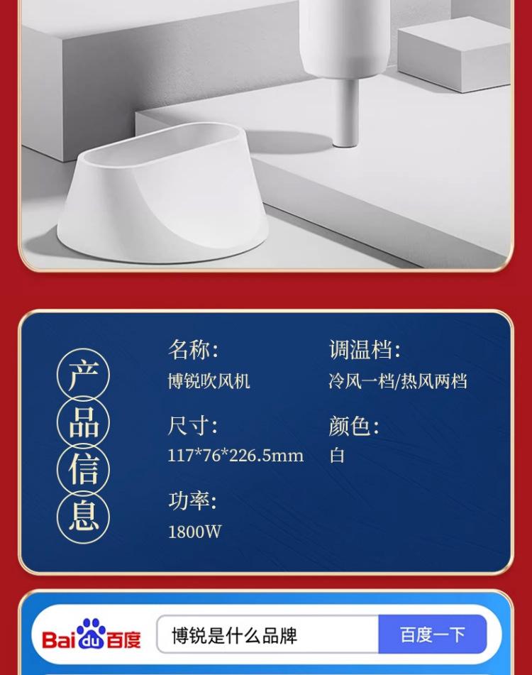 Borui hair dryer + 3c magnetic power bank [red two-piece set]