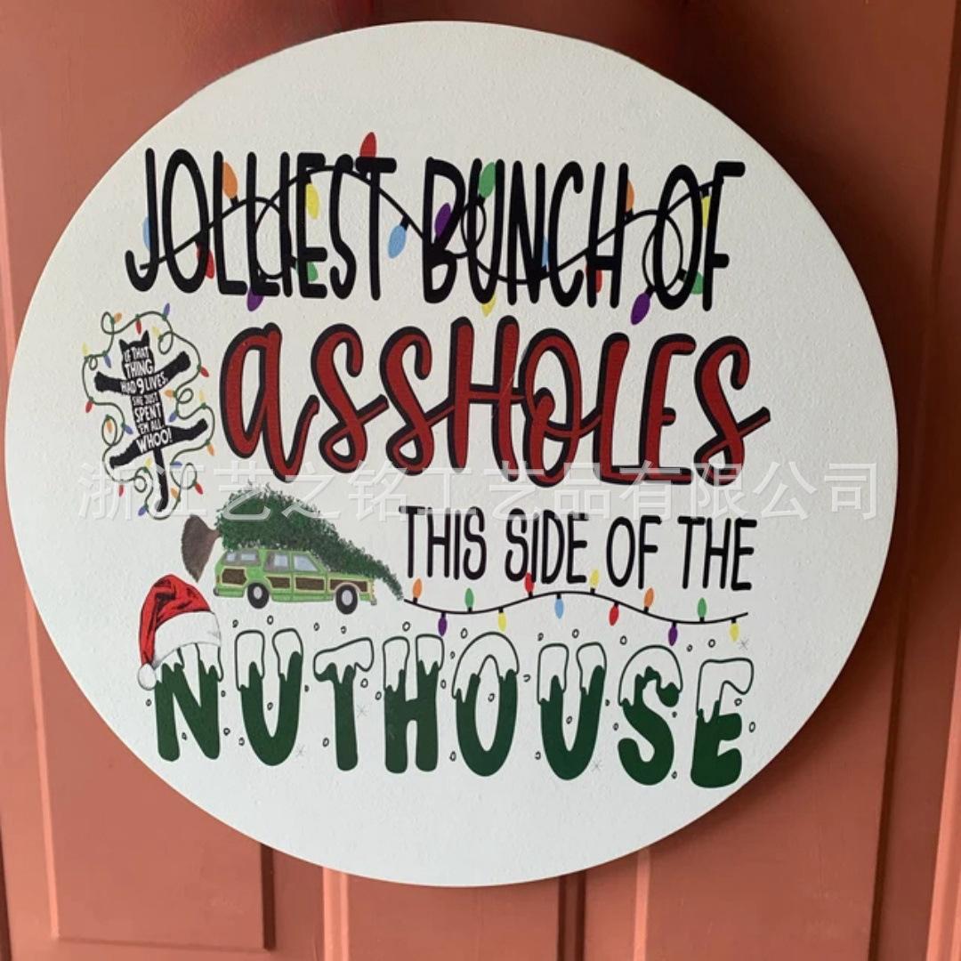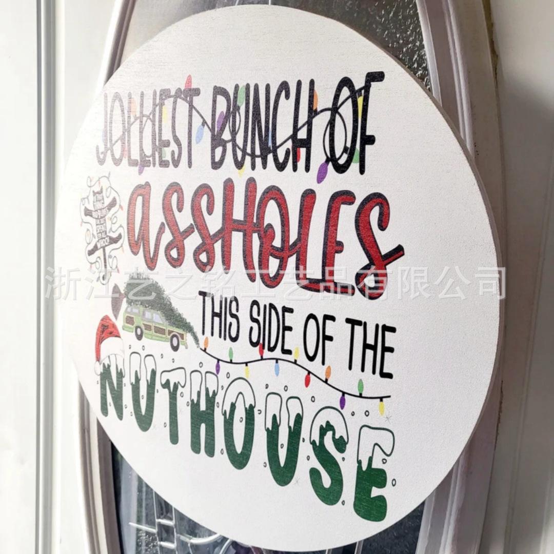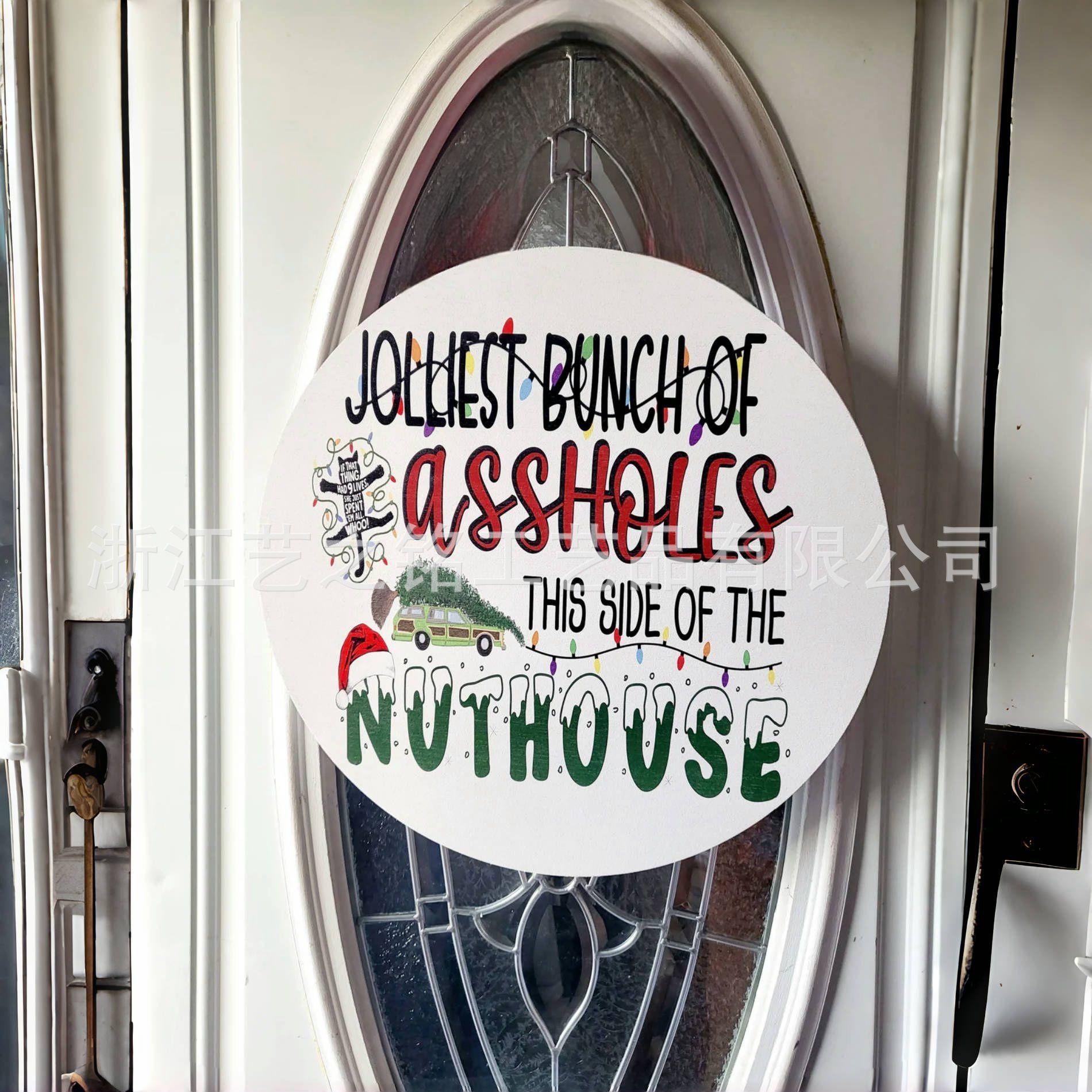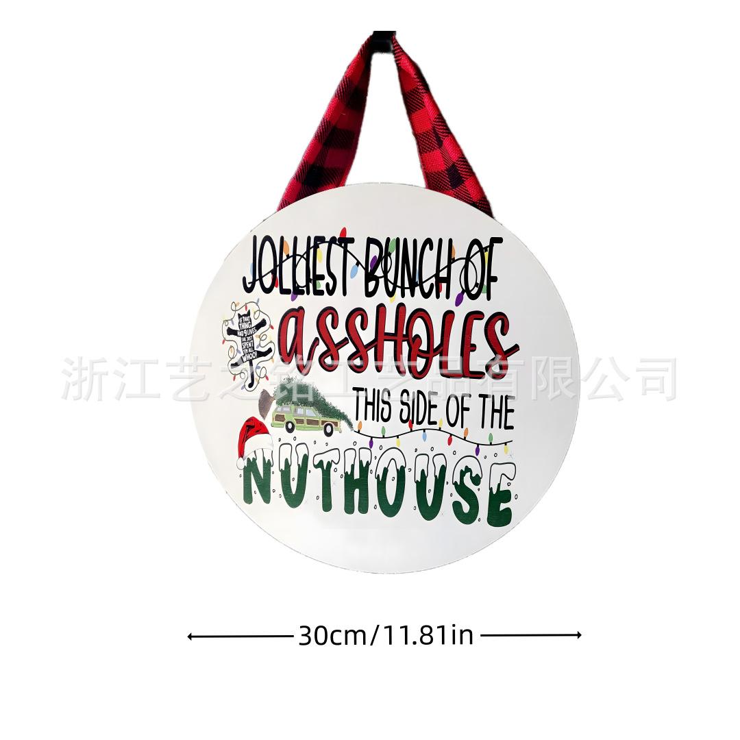 Nuevo producto transfronterizo Yzm: colgante navideño de madera 2D para puerta, decoración navideña
