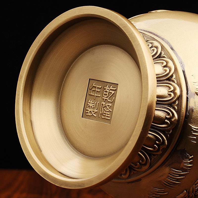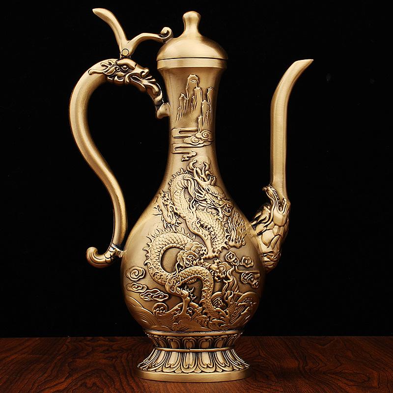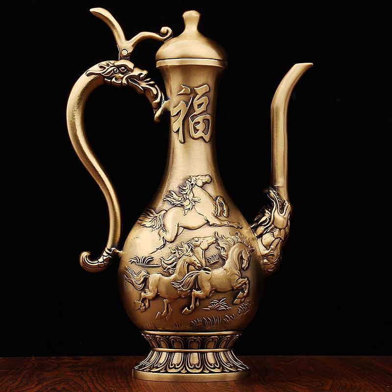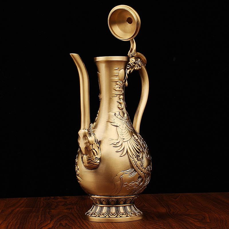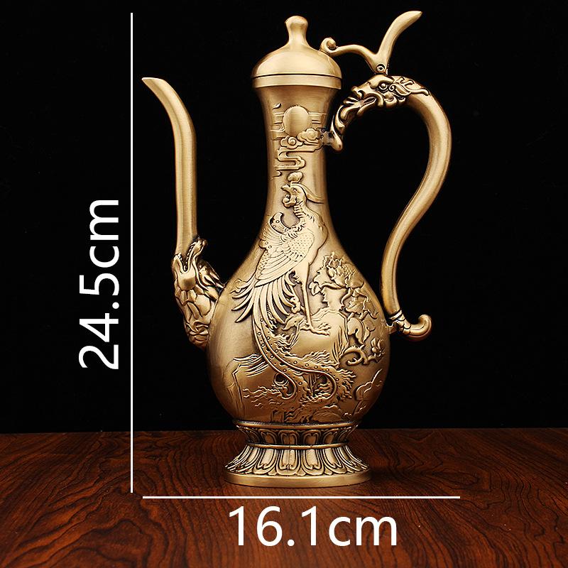 Latón de alta gama estilo europeo Dragón y Fénix Ocho corceles Jarra de cadera Vintage Creativo Artículos para vino para el hogar Adornos de cobre puro Artesanías de metal