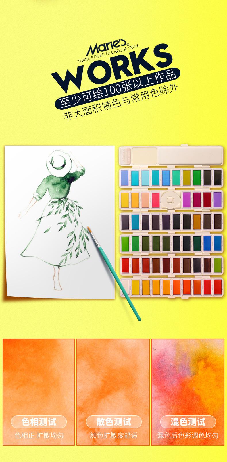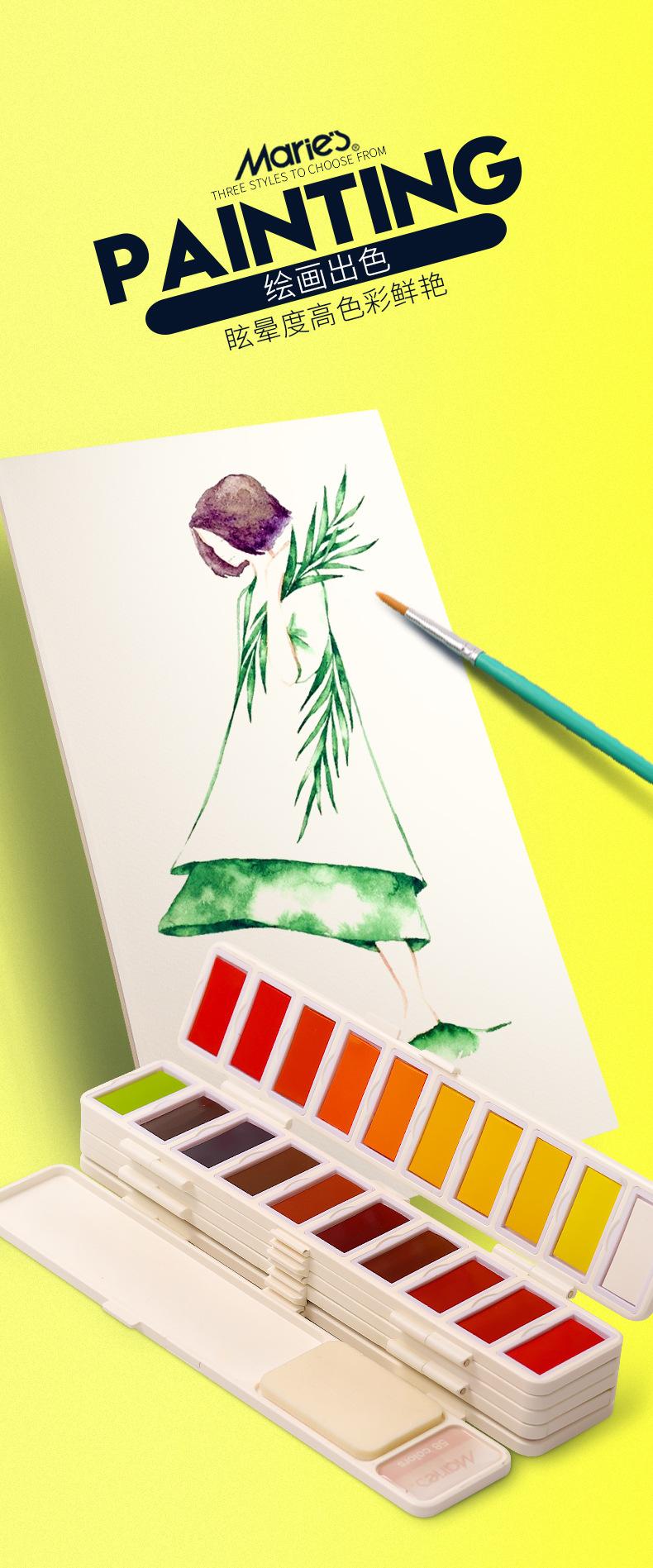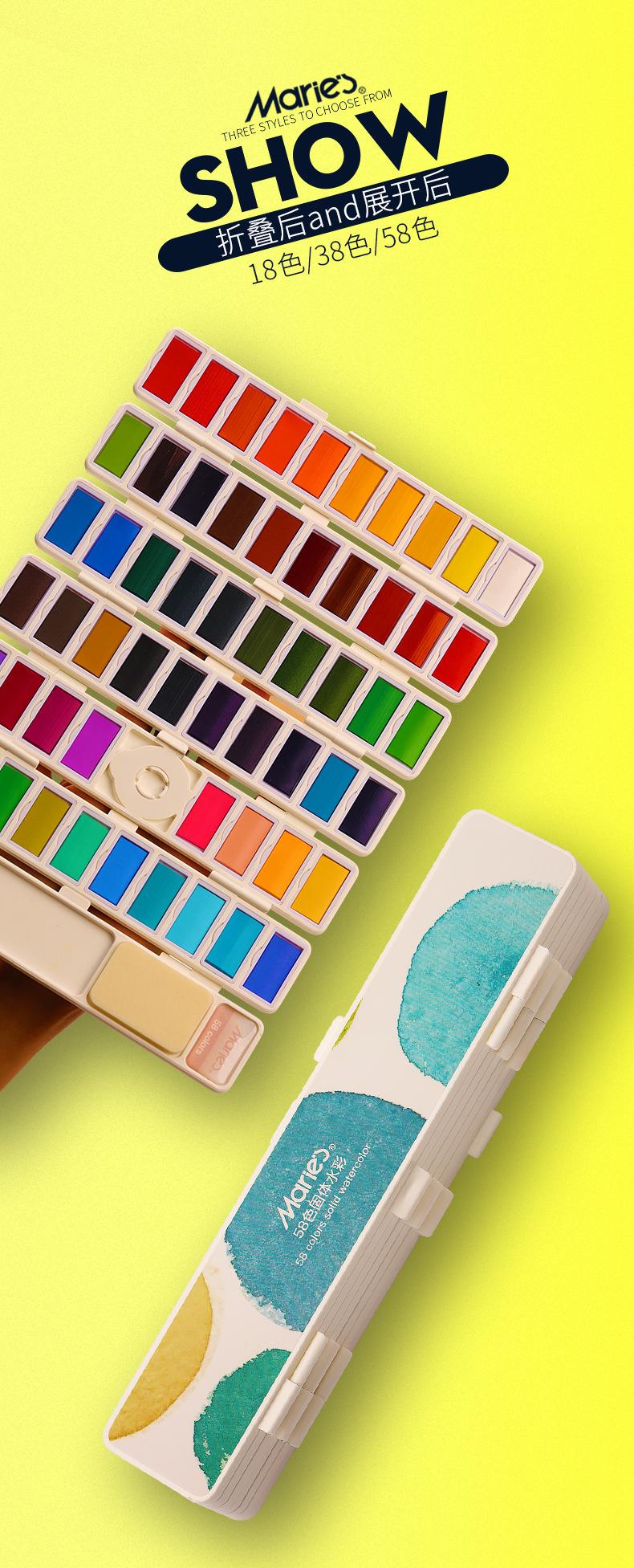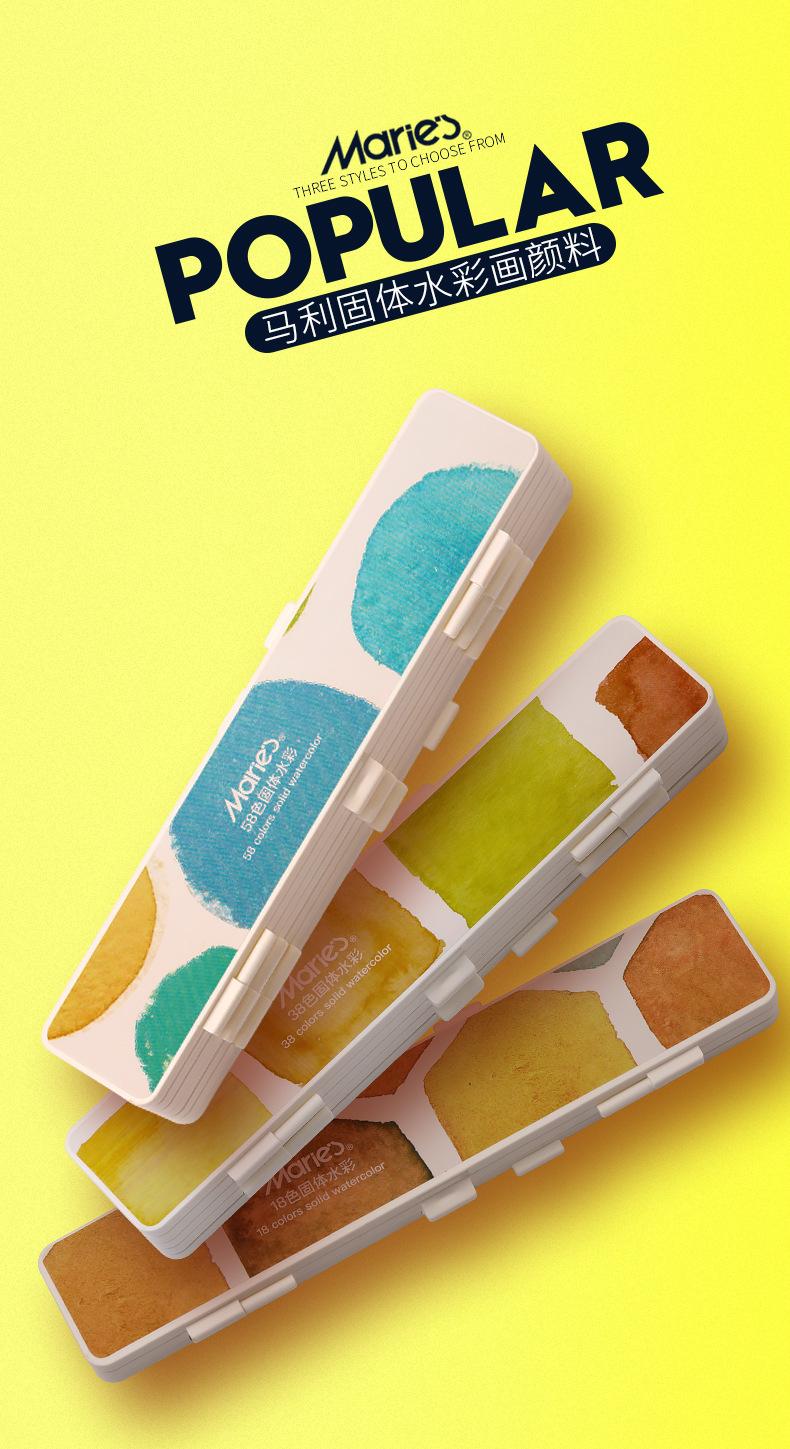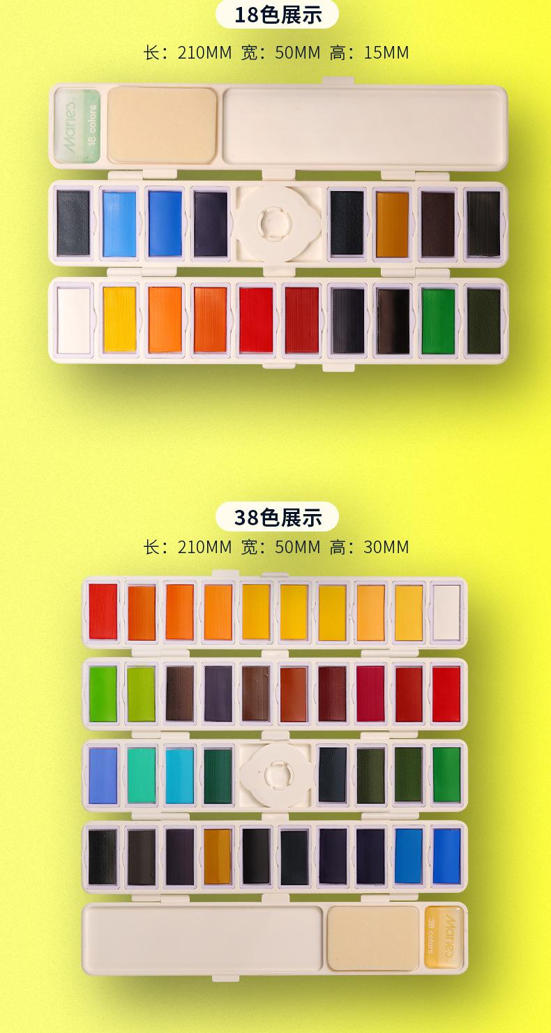 Traje de pintura sólida de acuarela de color de la marca Marley, 38 colores, 58 colores, caja de pintura pintada a mano para estudiantes principiantes