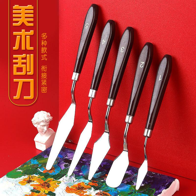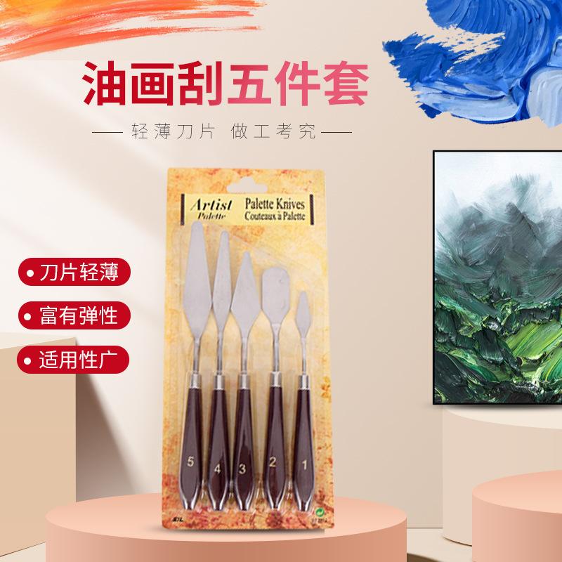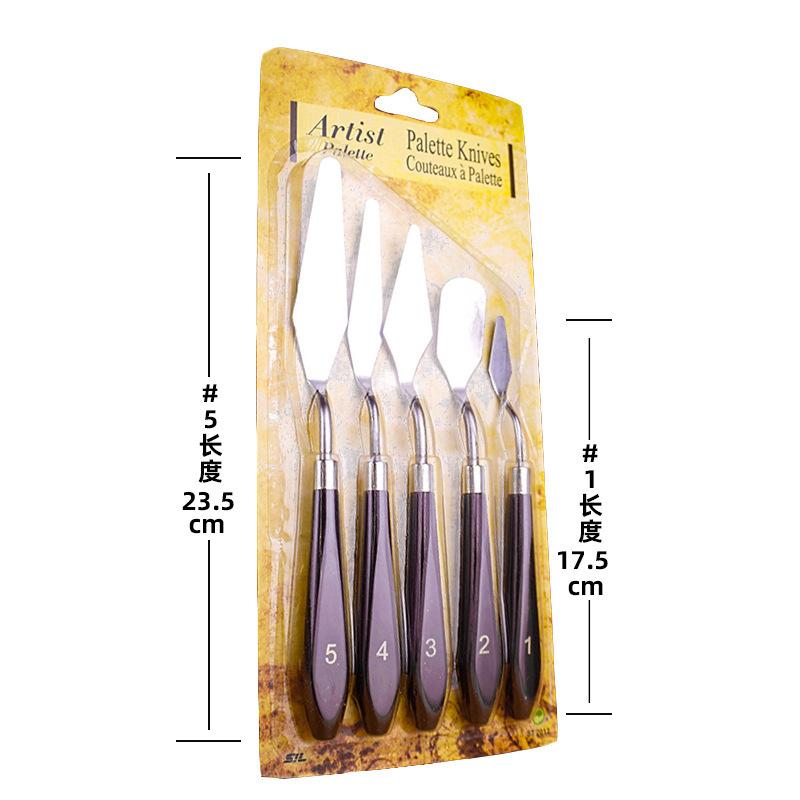 Espátula para Pintura al Óleo Nueva Acero Inoxidable Color Raspador Pintura Gouache Raspador Juego de 5 Piezas Suministro Transfronterizo Fabricante Venta al por Mayor