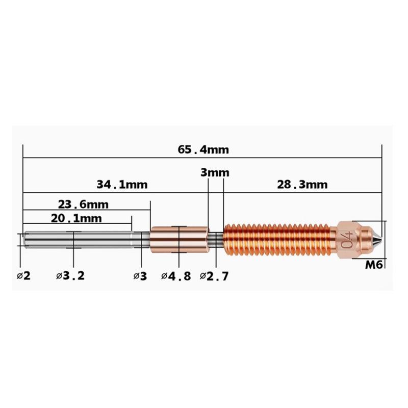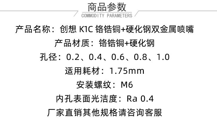 K1c integrated chromium zirconium copper hardened steel nozzle 0.2mm white steel head, K1c integrated chromium...