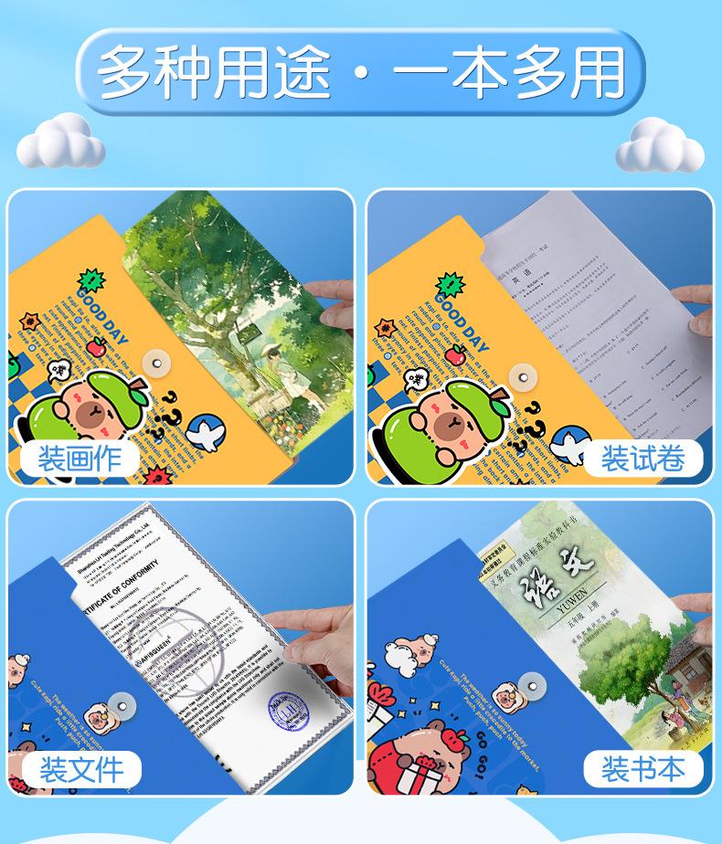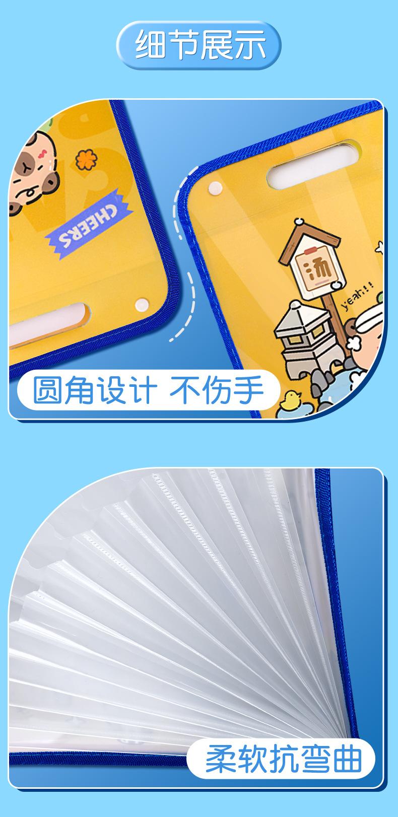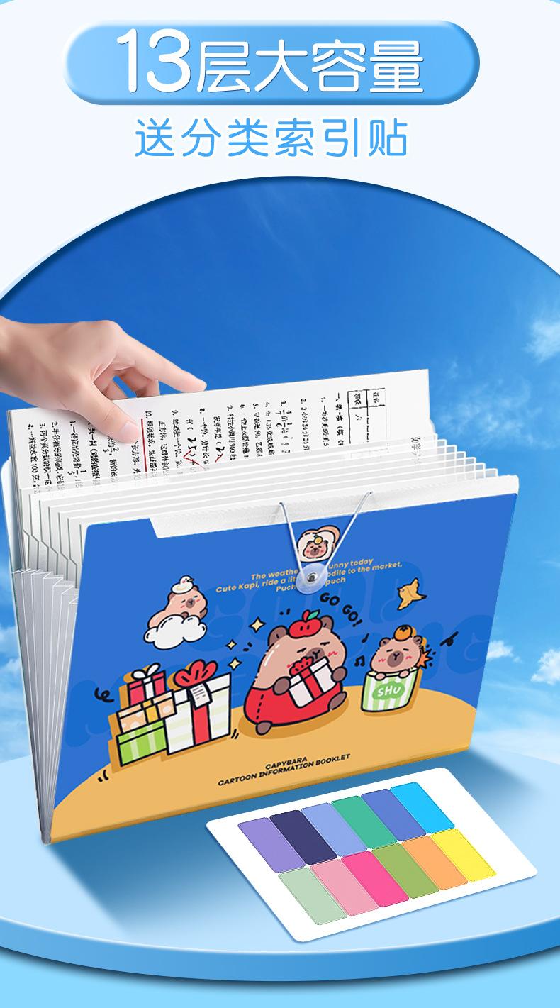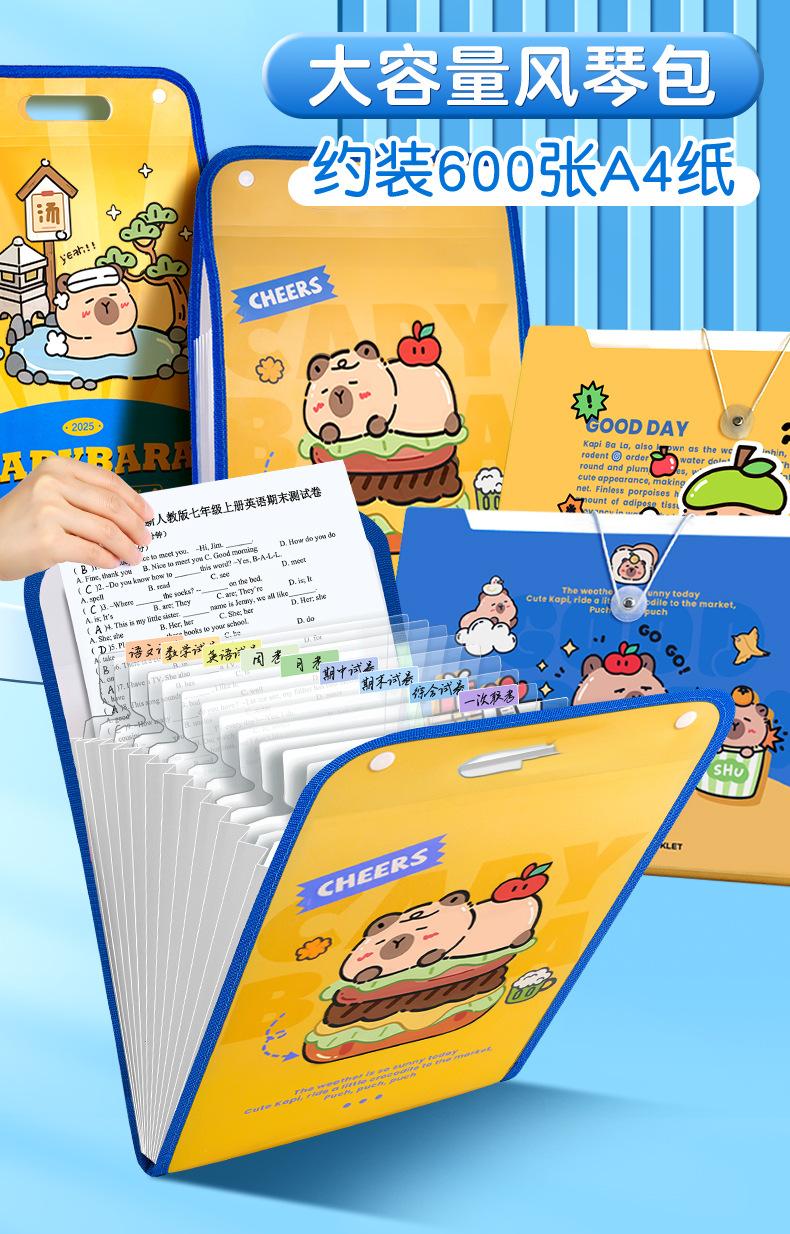 Bolsa de Archivo Acordeón A4 Capibara Estudiante Gran Capacidad Bolsa para Guardar Hojas de Examen Clasificación de Documentos Carpeta Acordeón Venta al por Mayor
