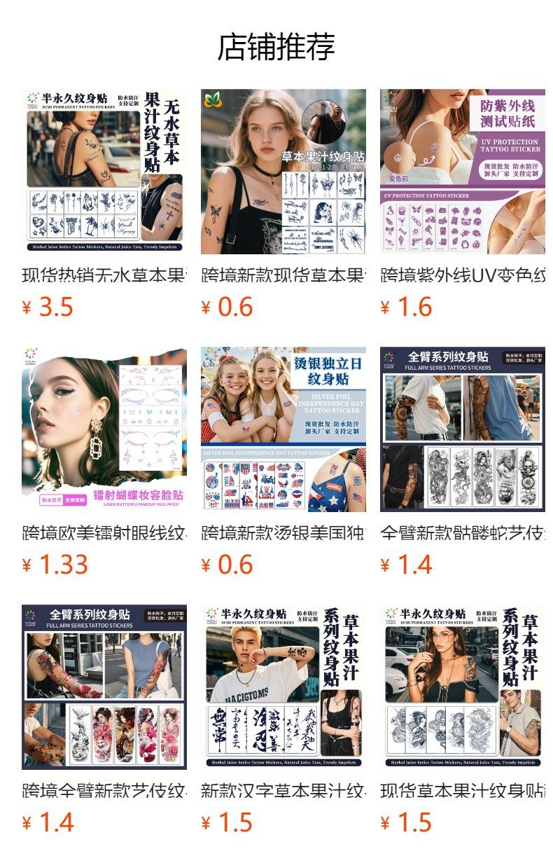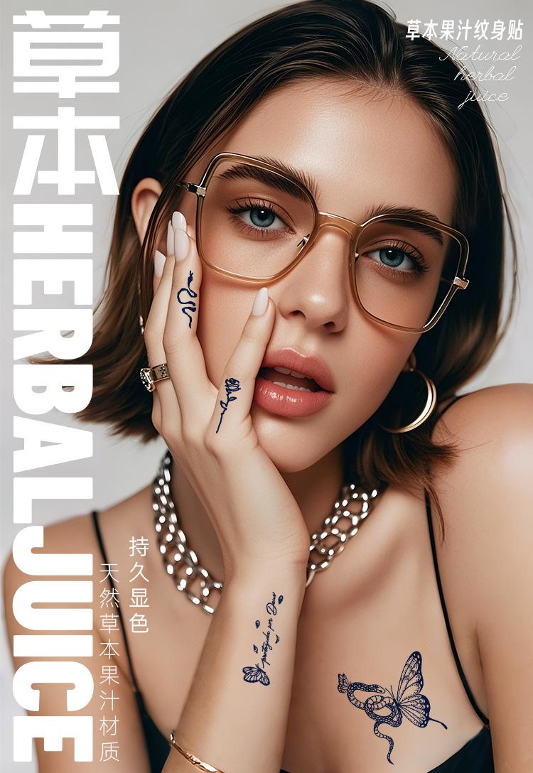 Nuevos stickers de tatuaje de jugo herbal no reflectantes transfronterizos para hombres y mujeres artículos de moda tatuaje semipermanente stickers de tatuaje a prueba de agua