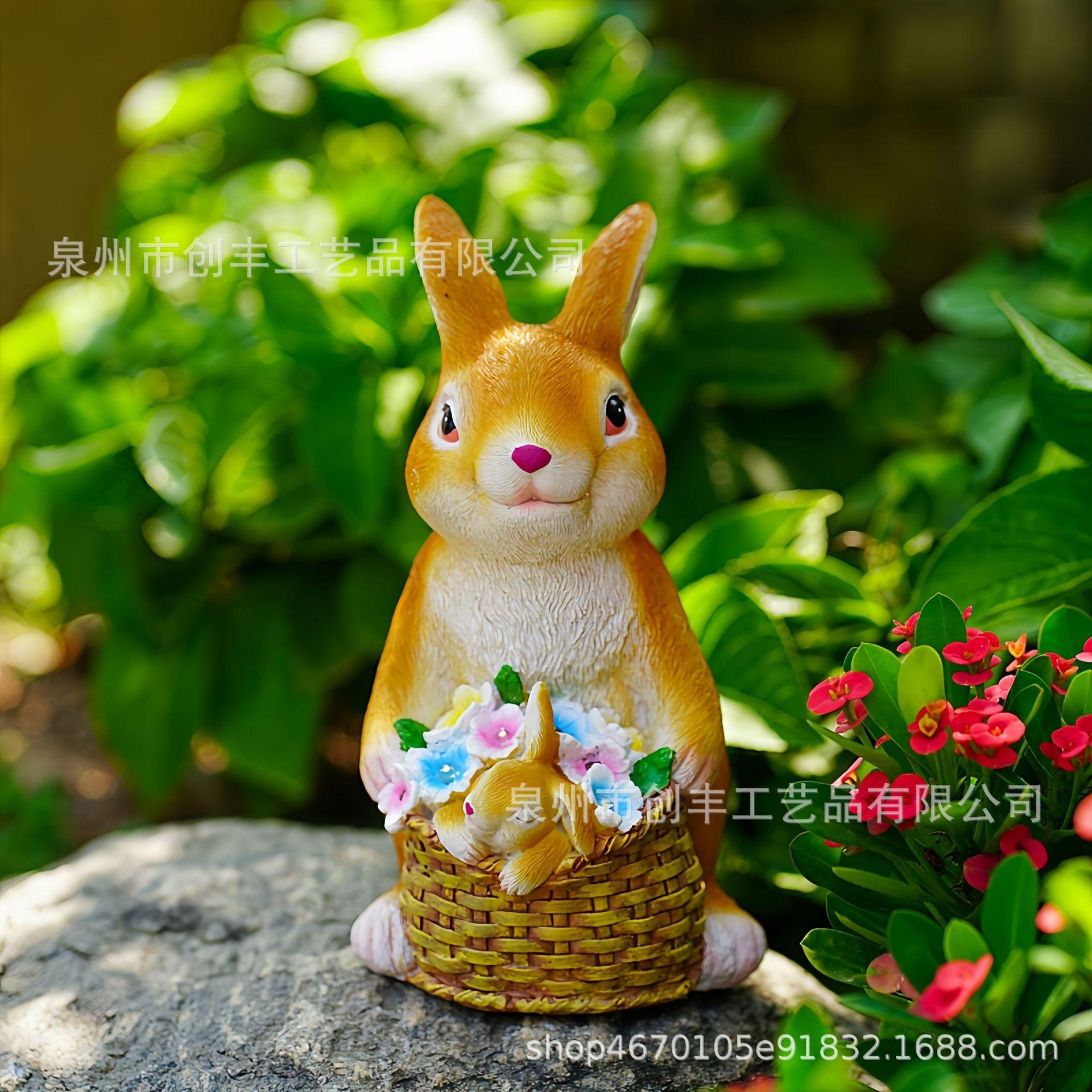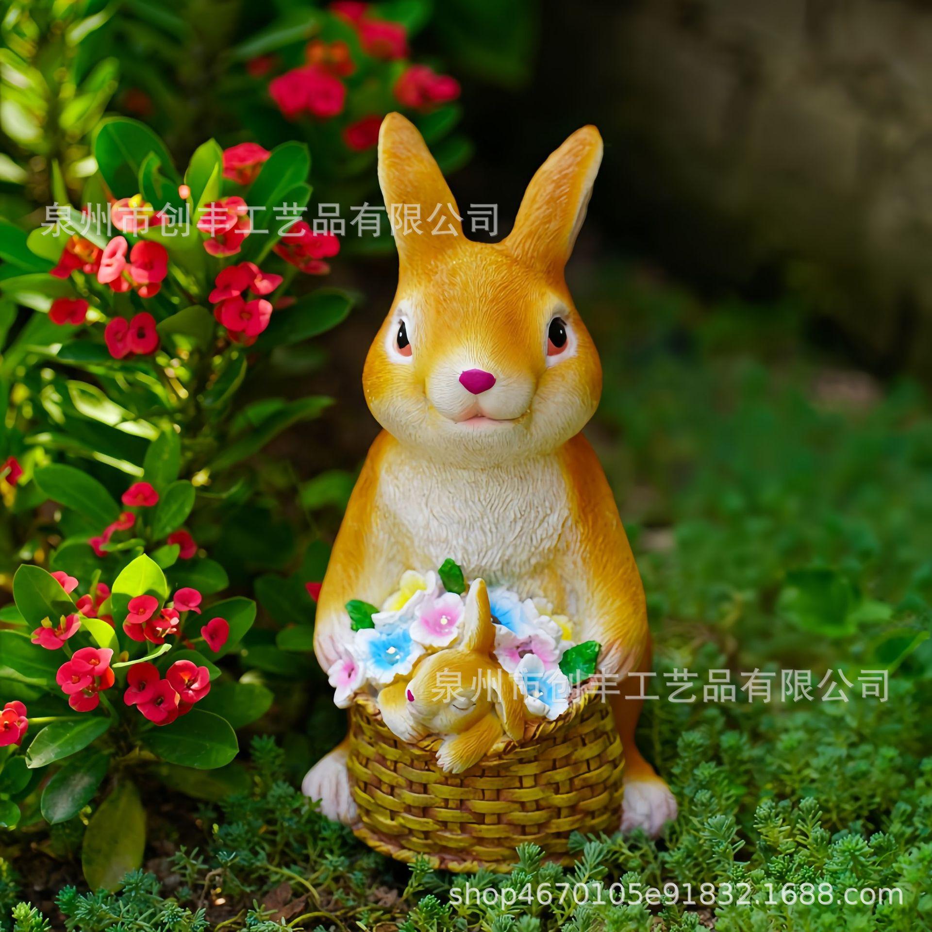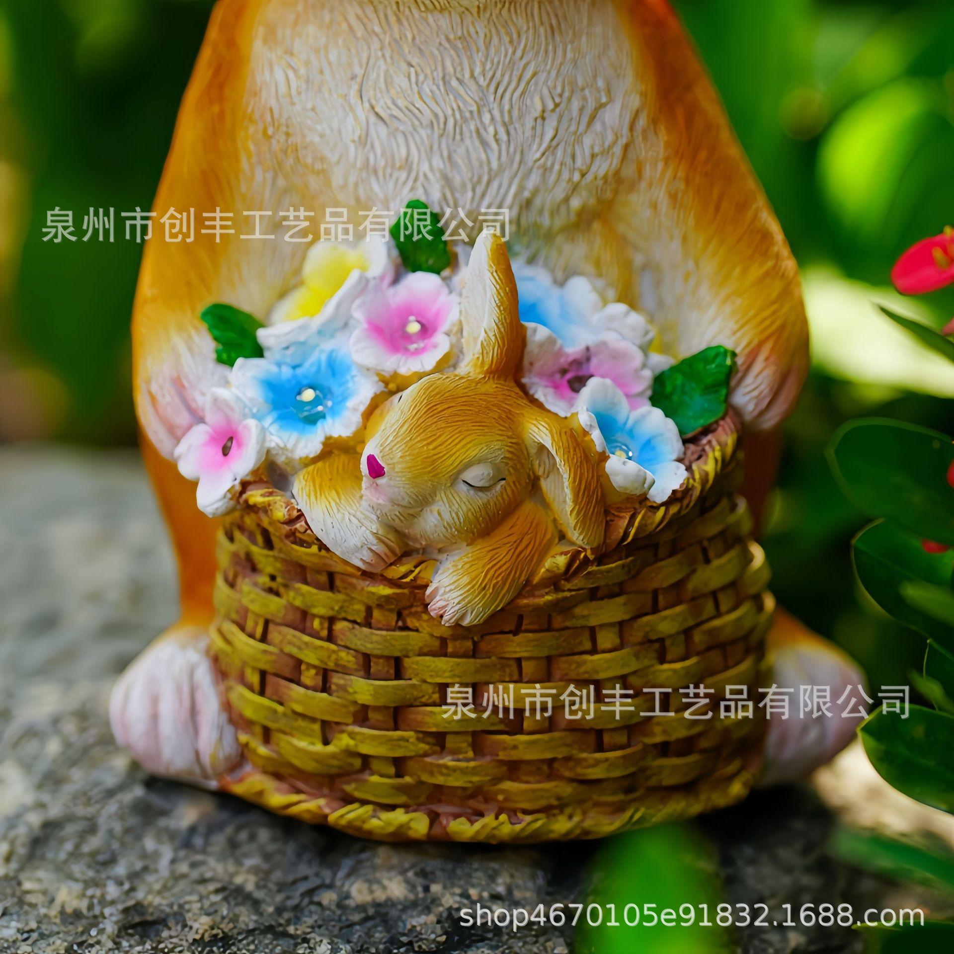 Cesta de conejo solar de simulación creativa, adornos decorativos para el hogar, jardín, patio, artesanías de resina, adecuado