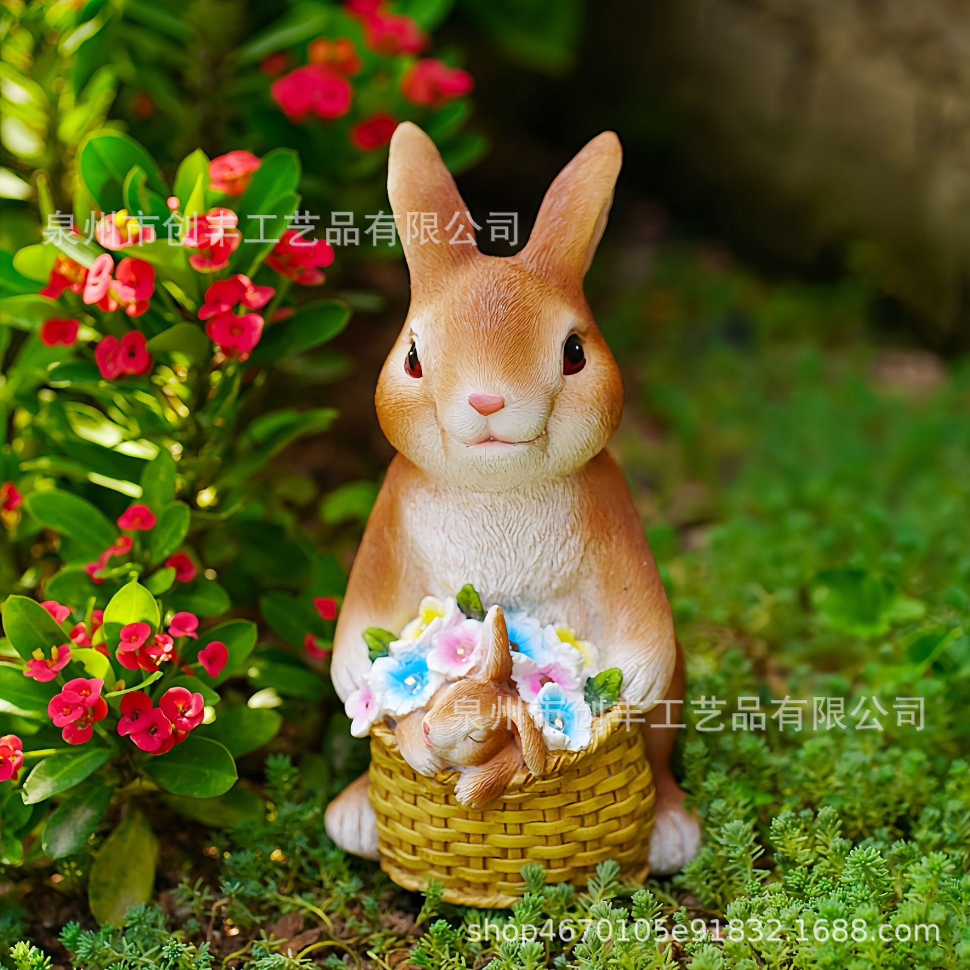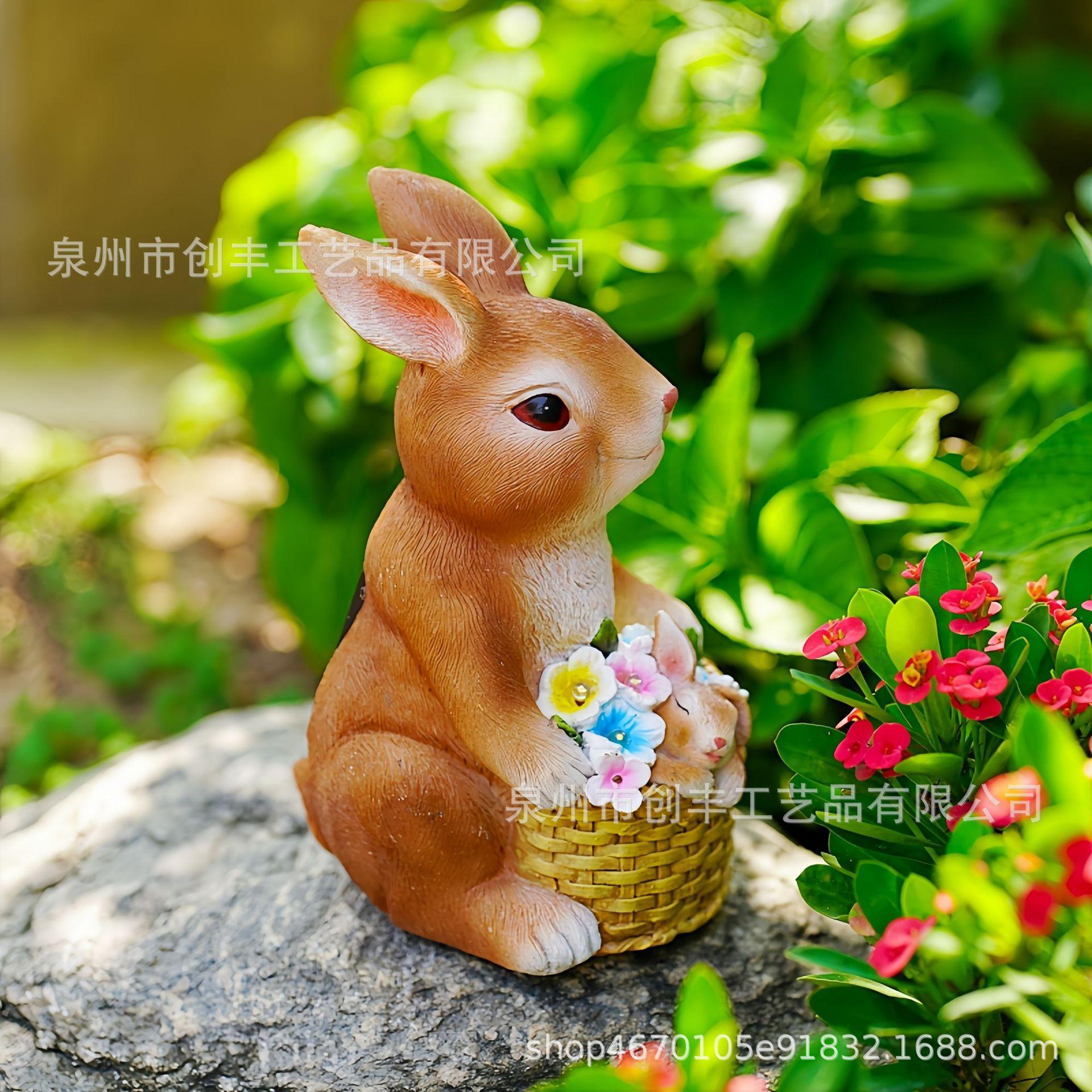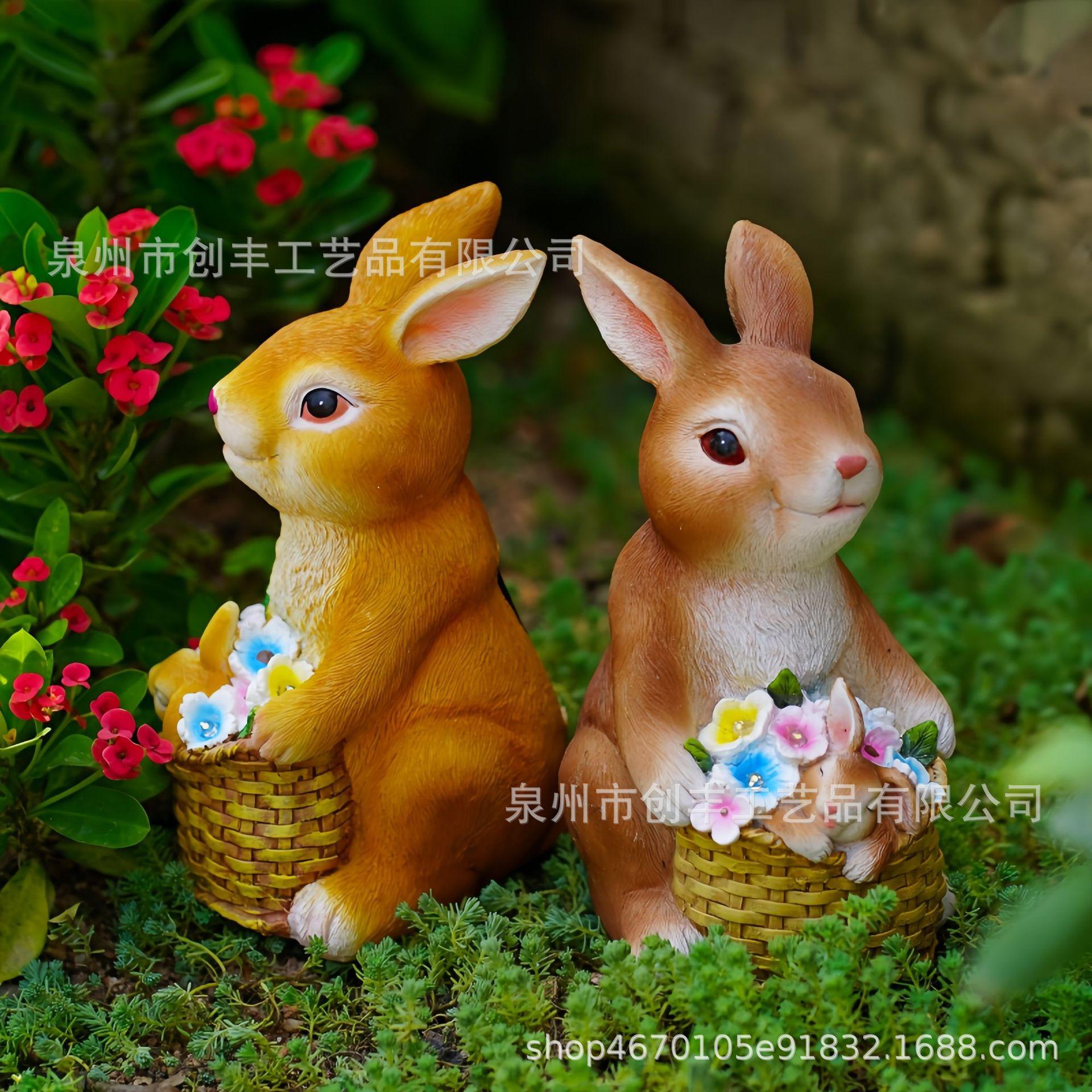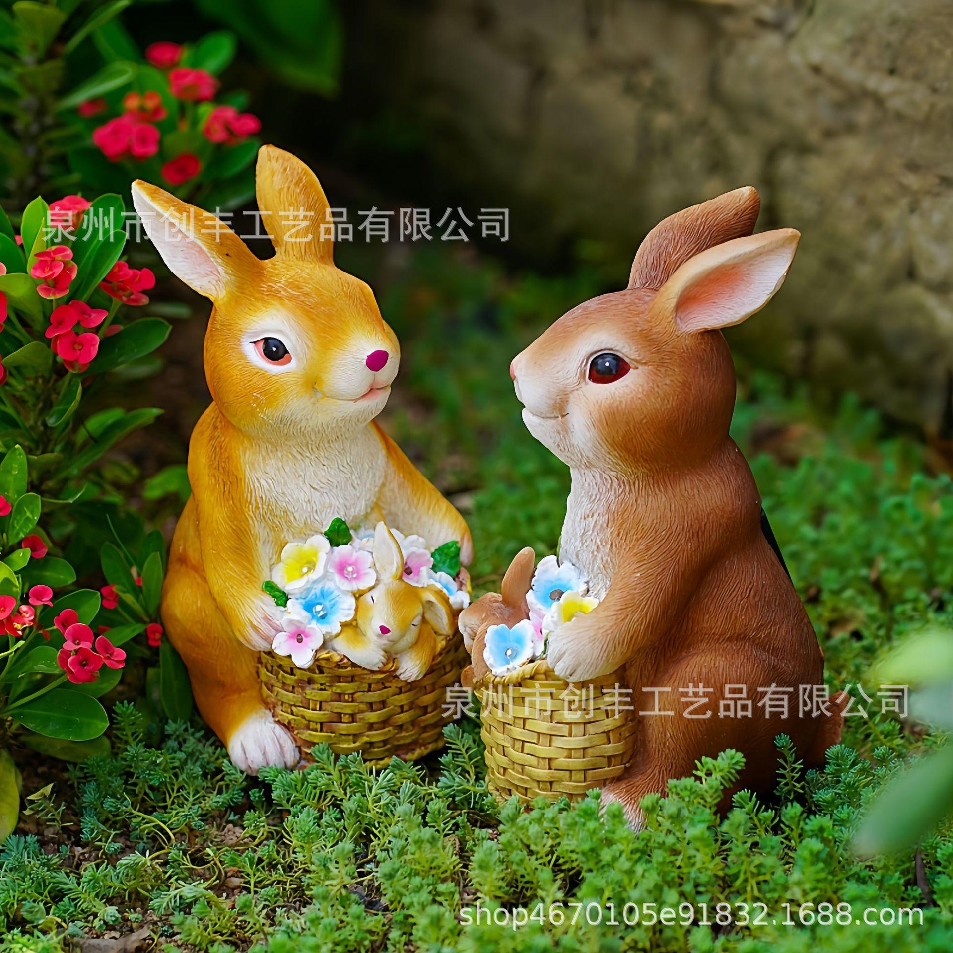 Cesta de conejo solar de simulación creativa, adornos decorativos para el hogar, jardín, patio, artesanías de resina, adecuado