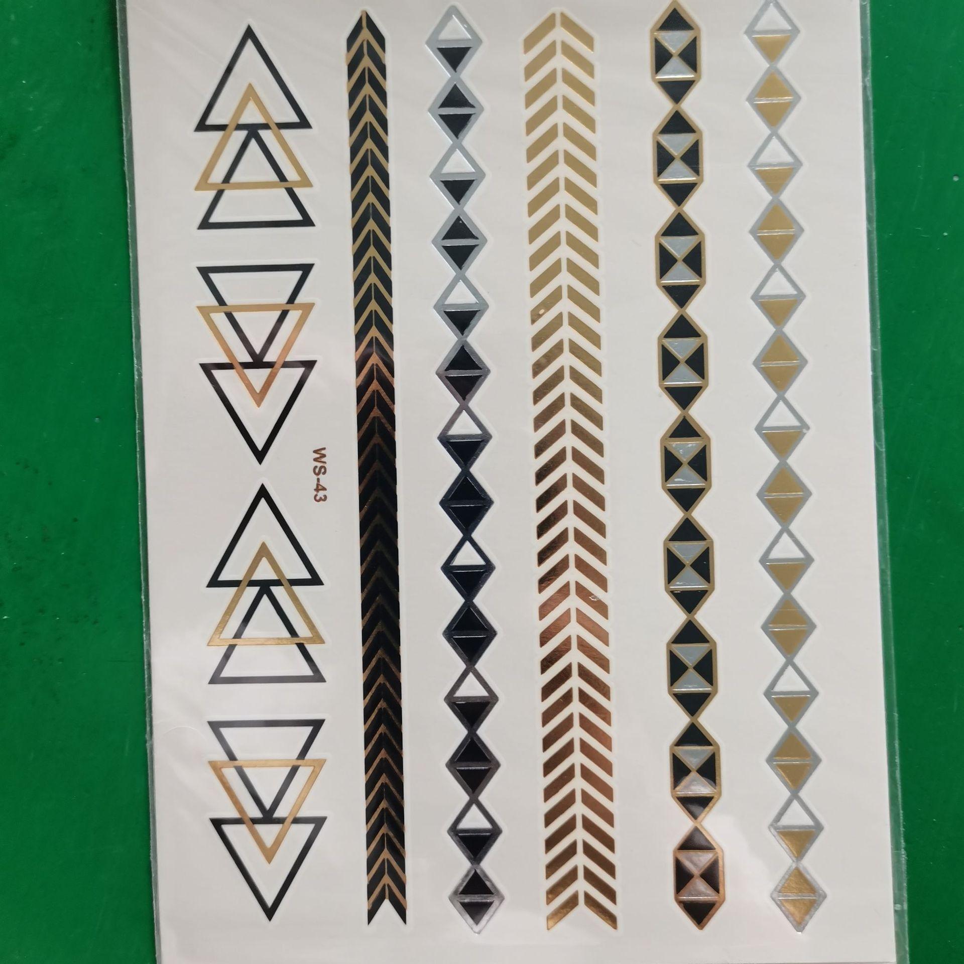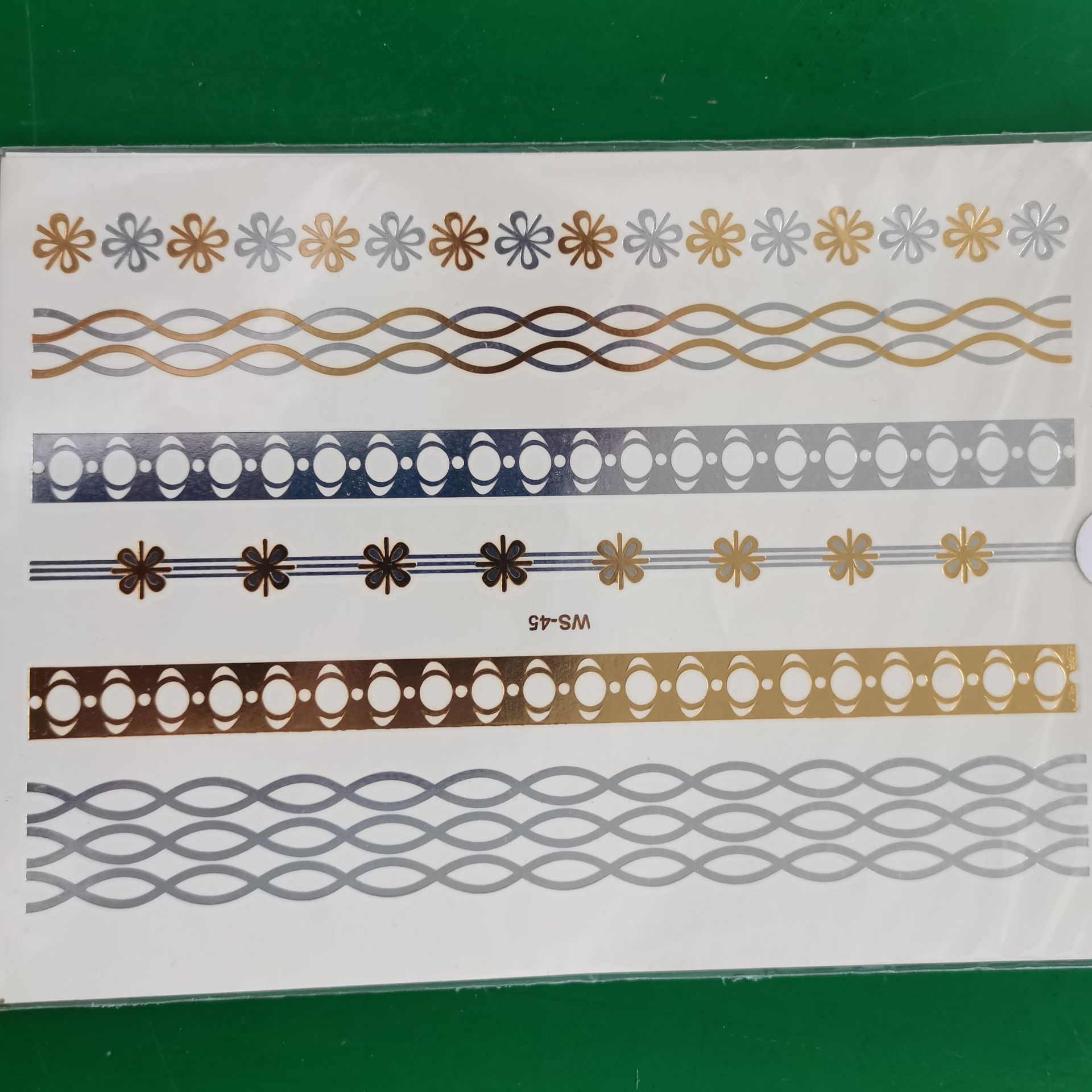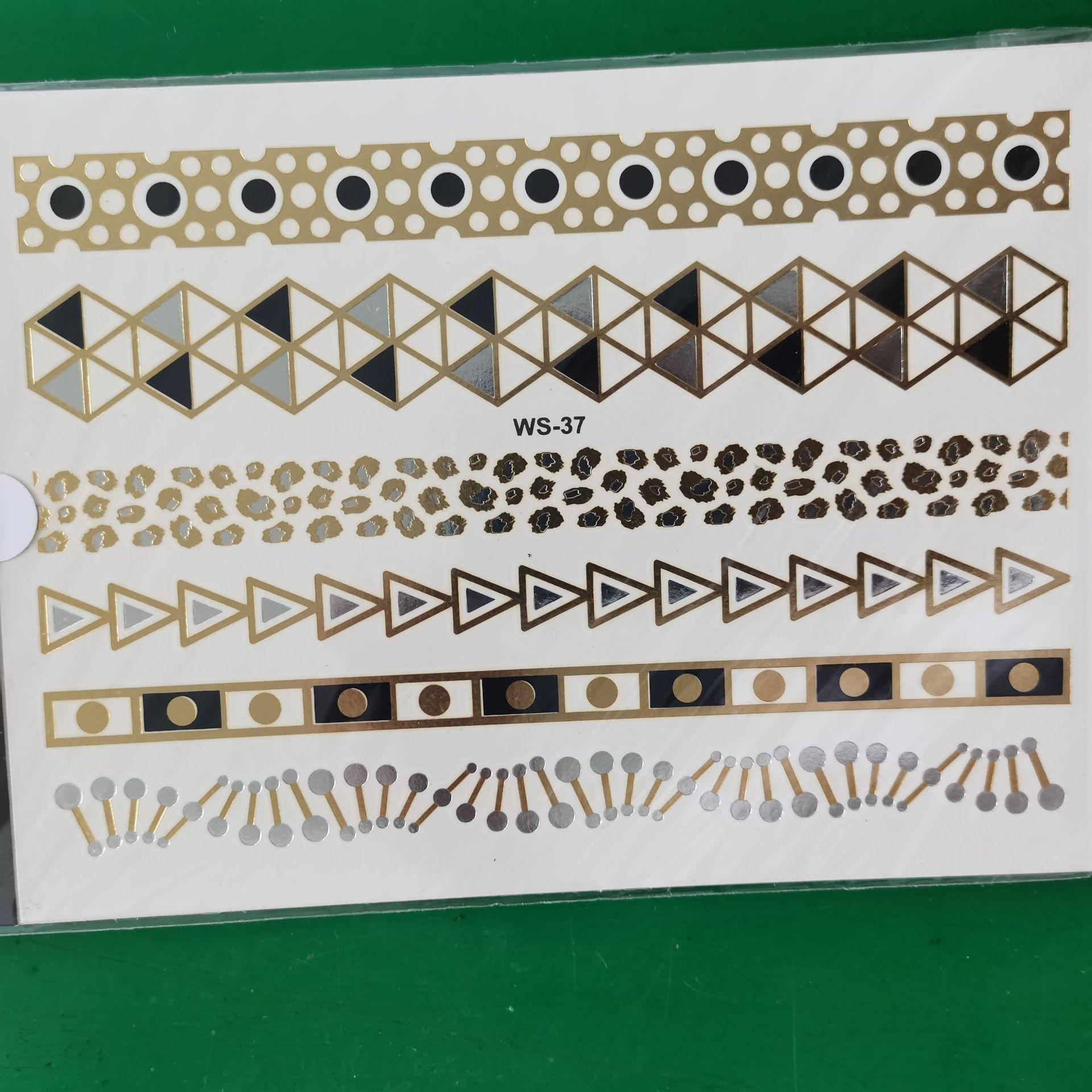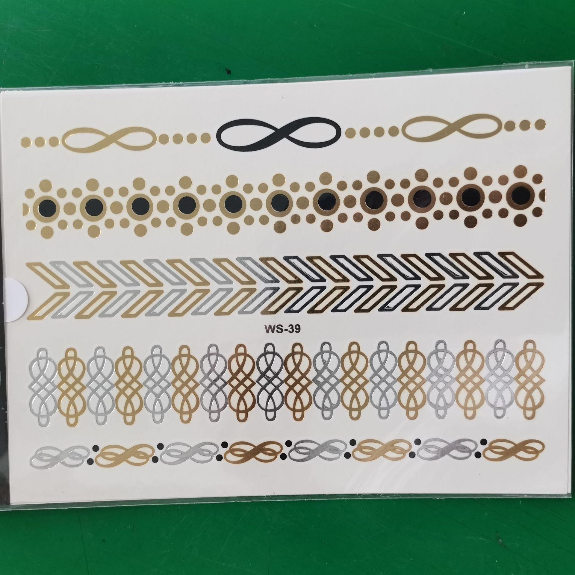 Pegatinas de tatuaje europeas y americanas, pegatinas corporales de oro y plata, pegatinas de tatuaje de forma geométrica de metal, pegatinas de flores en línea para el brazo, liquidación