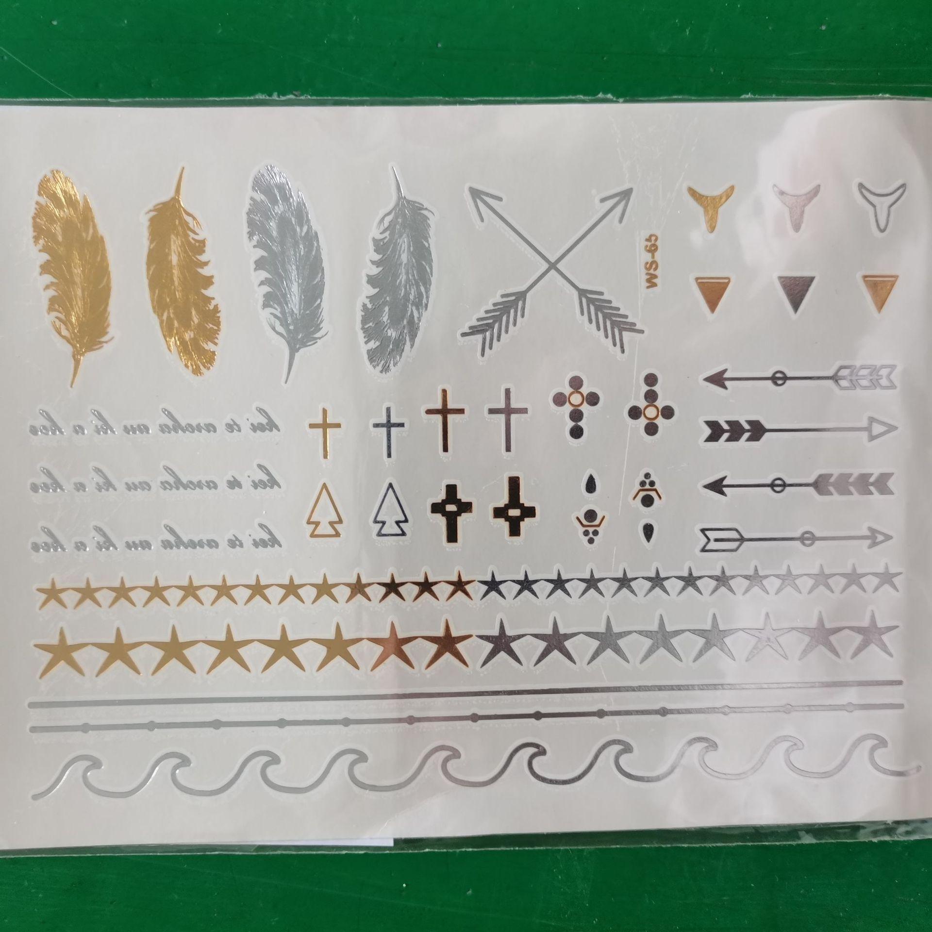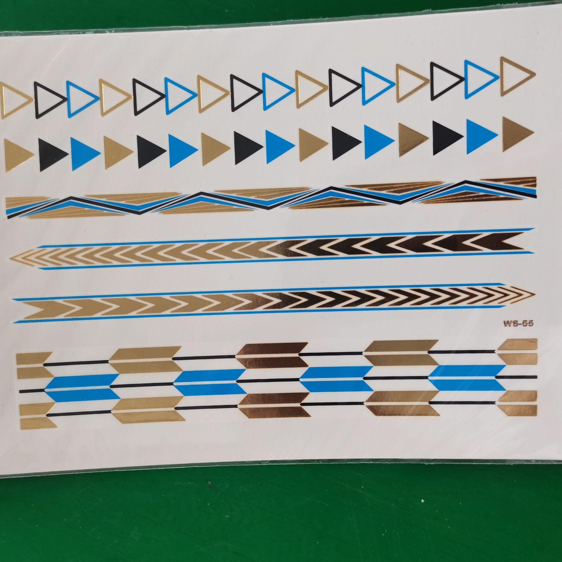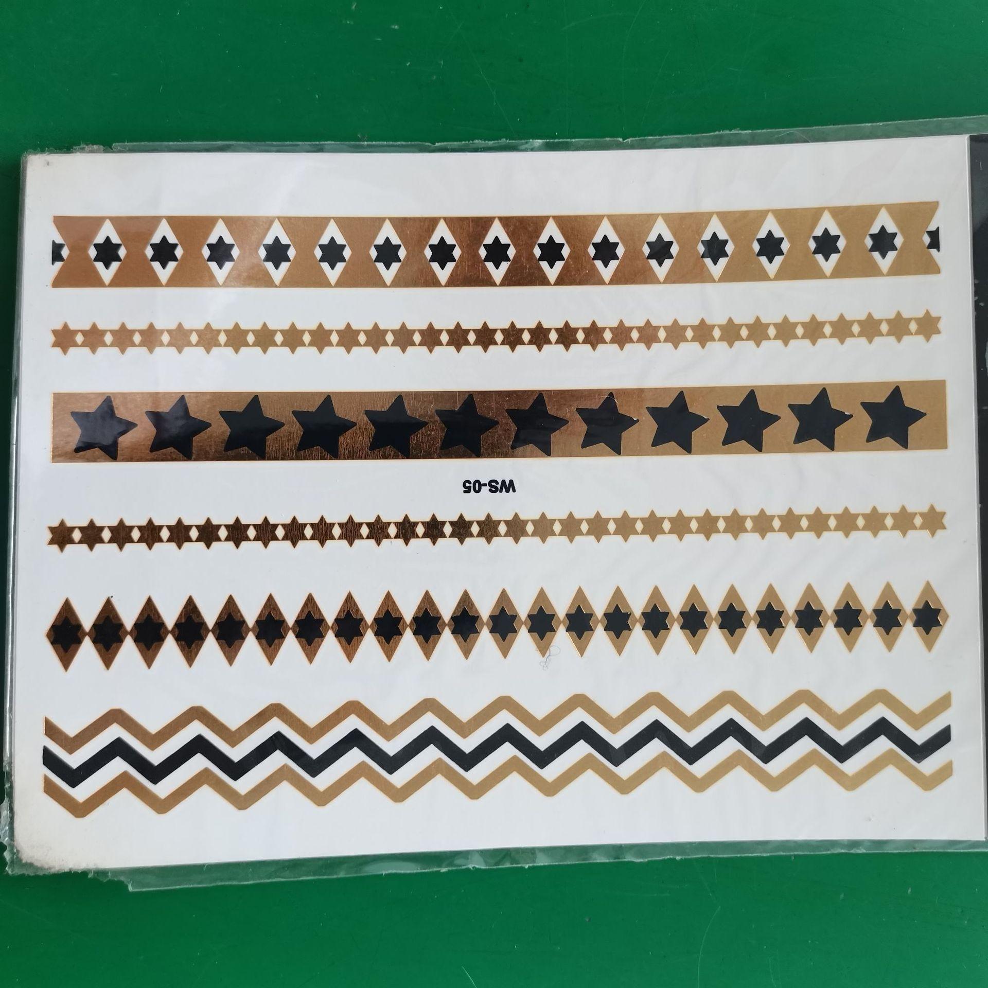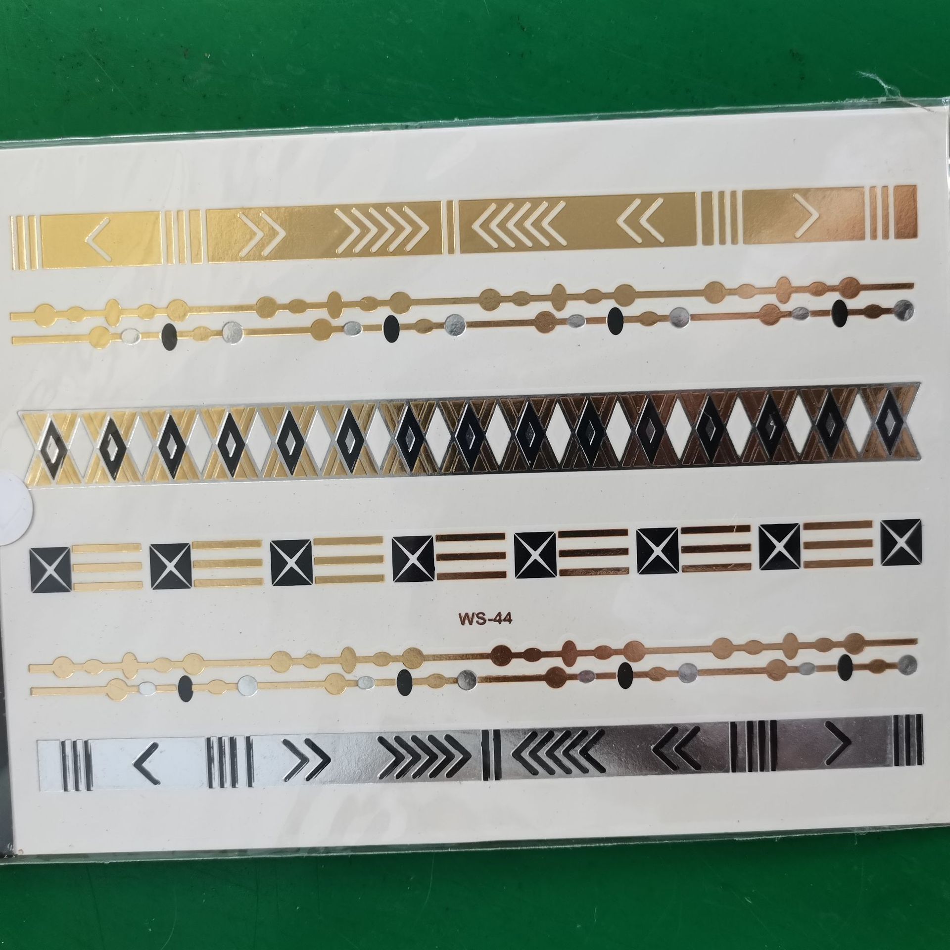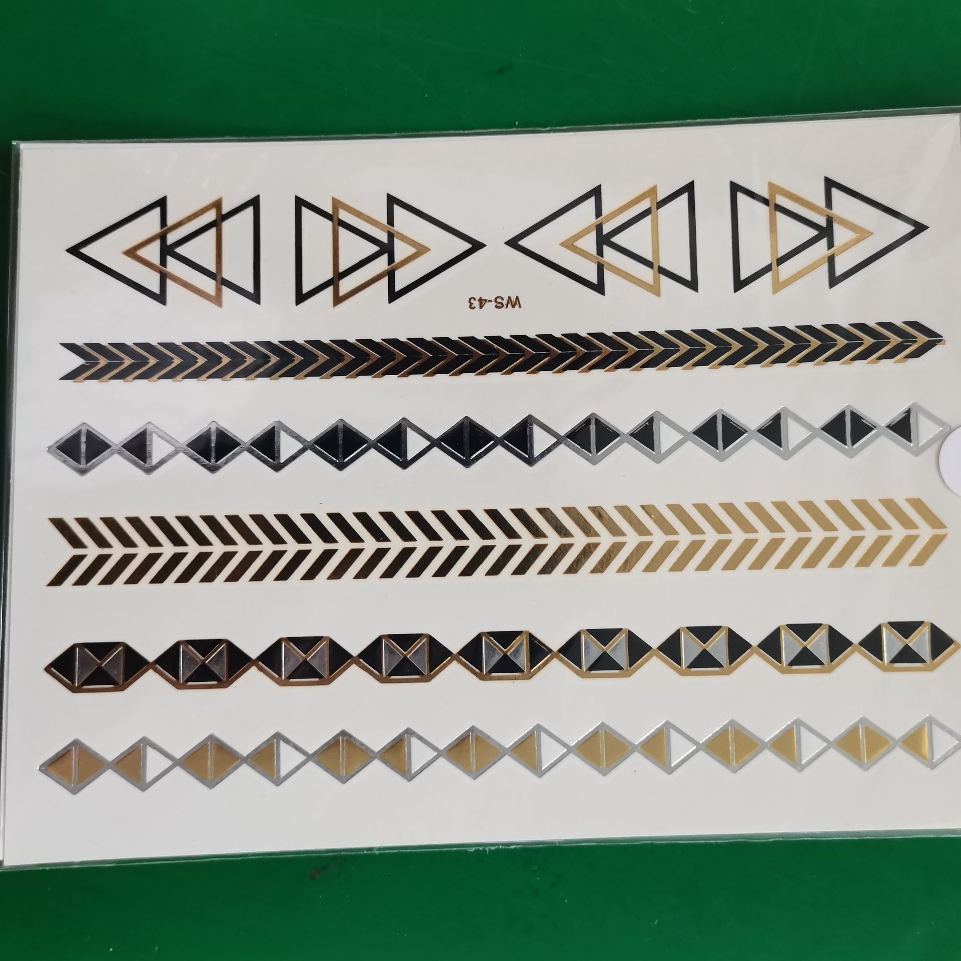 Pegatinas de tatuaje europeas y americanas, pegatinas corporales de oro y plata, pegatinas de tatuaje de forma geométrica de metal, pegatinas de flores en línea para el brazo, liquidación