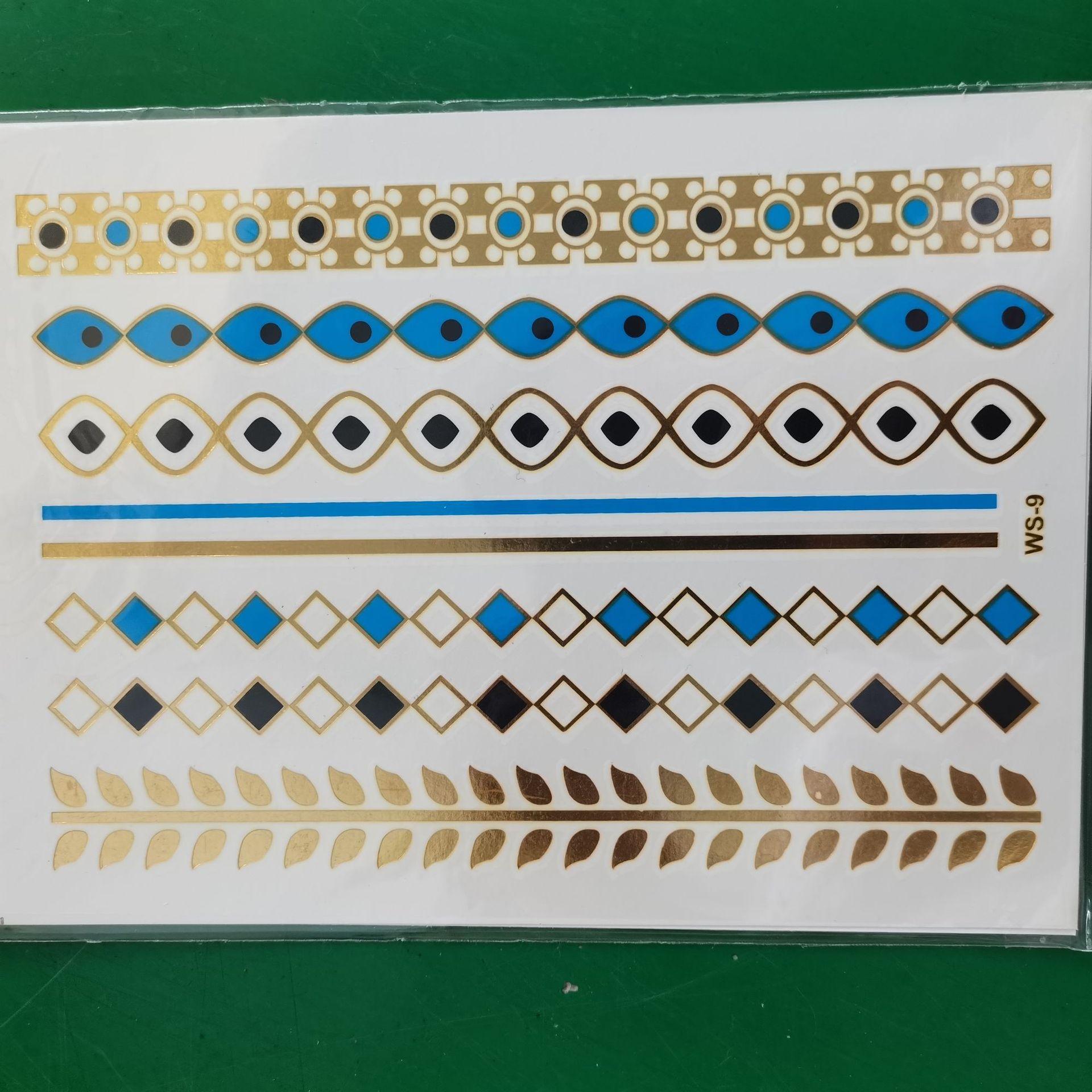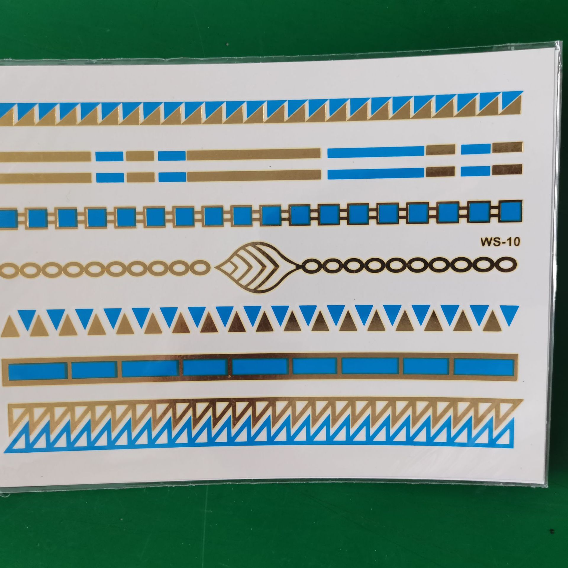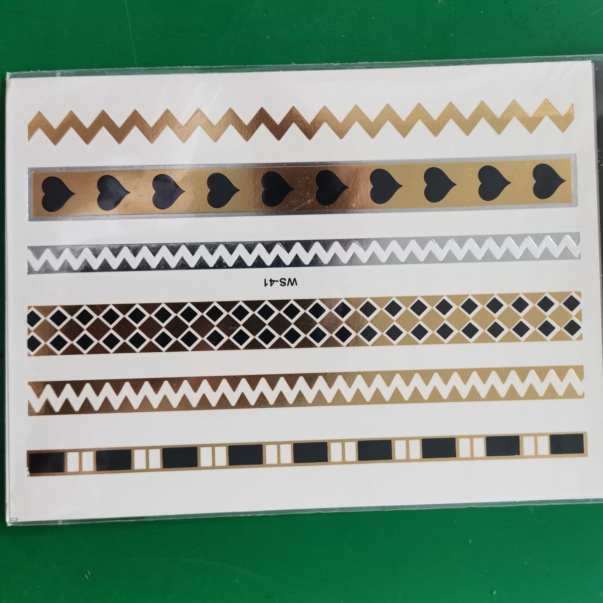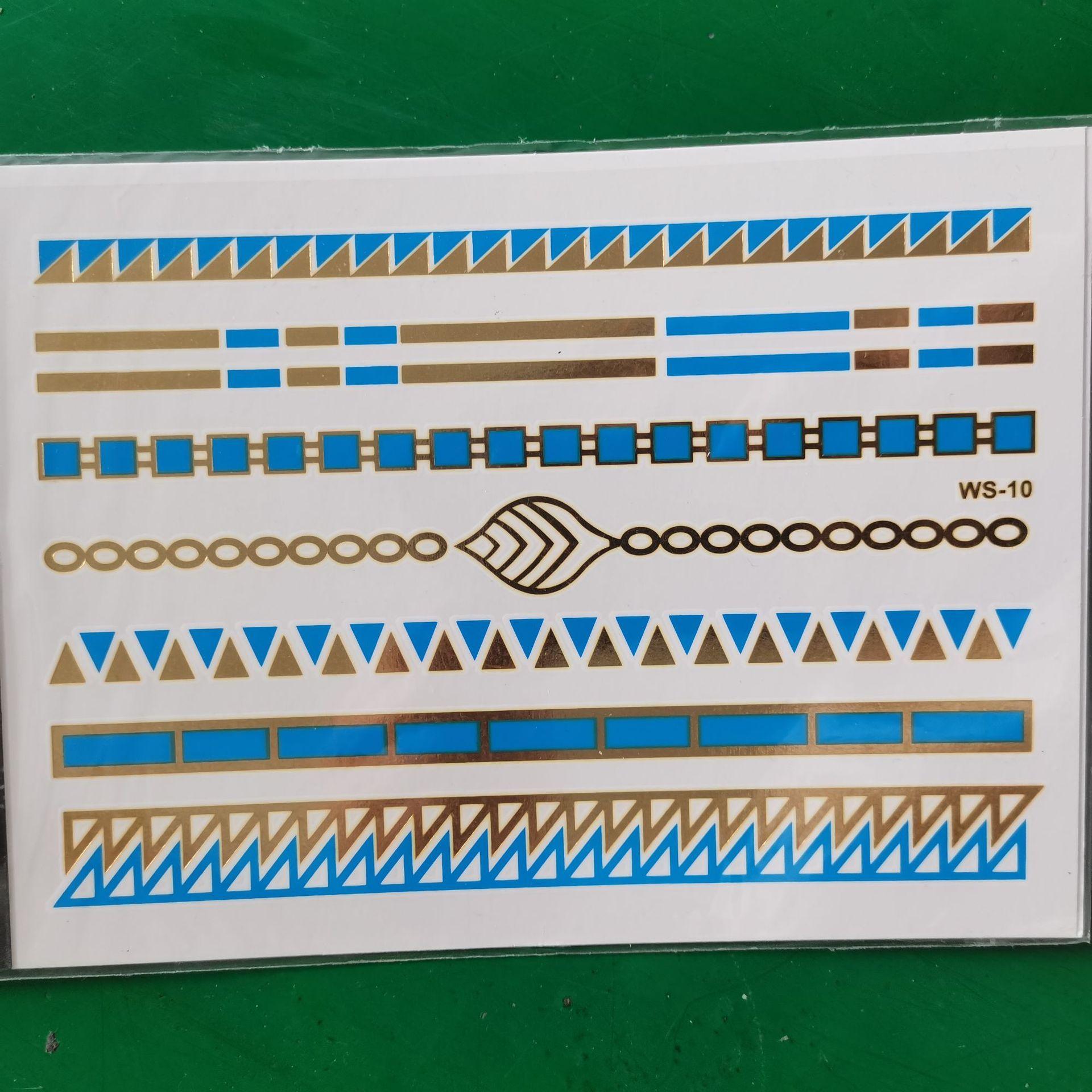 Pegatinas de tatuaje europeas y americanas, pegatinas corporales de oro y plata, pegatinas de tatuaje de forma geométrica de metal, pegatinas de flores en línea para el brazo, liquidación